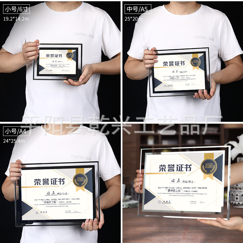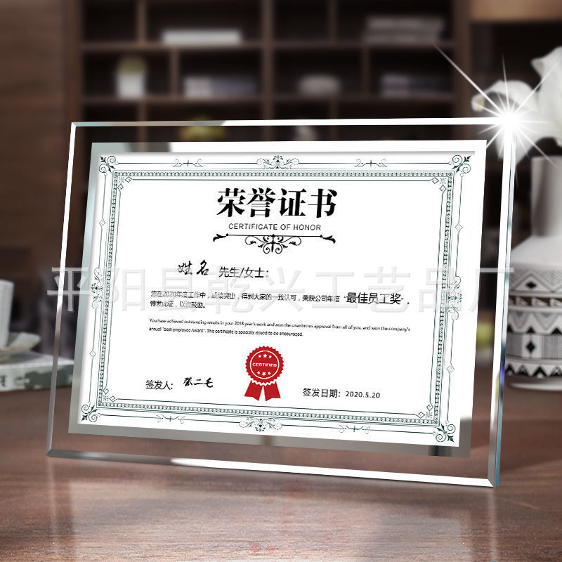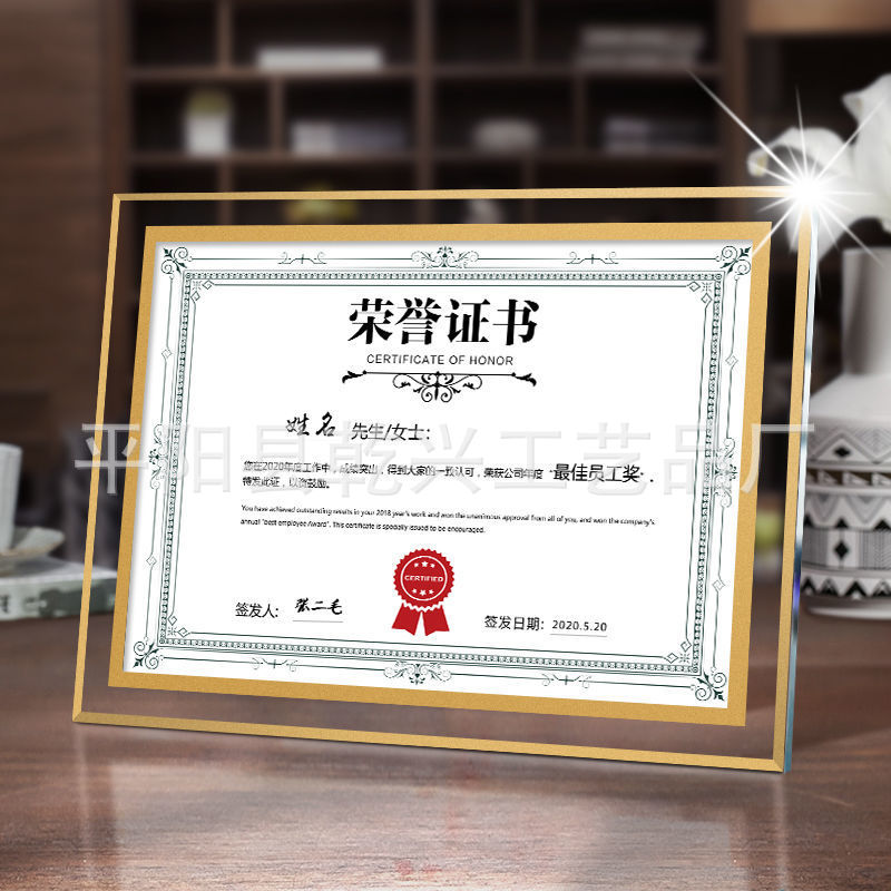 创意水晶玻璃授权牌定制经销商荣誉证书打印奖牌金箔牌匾定做照片