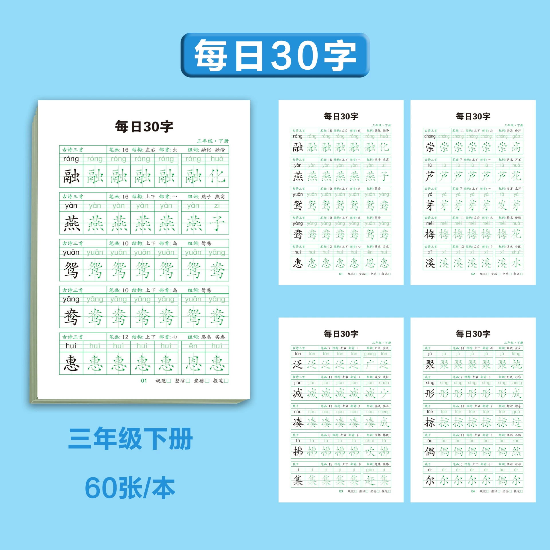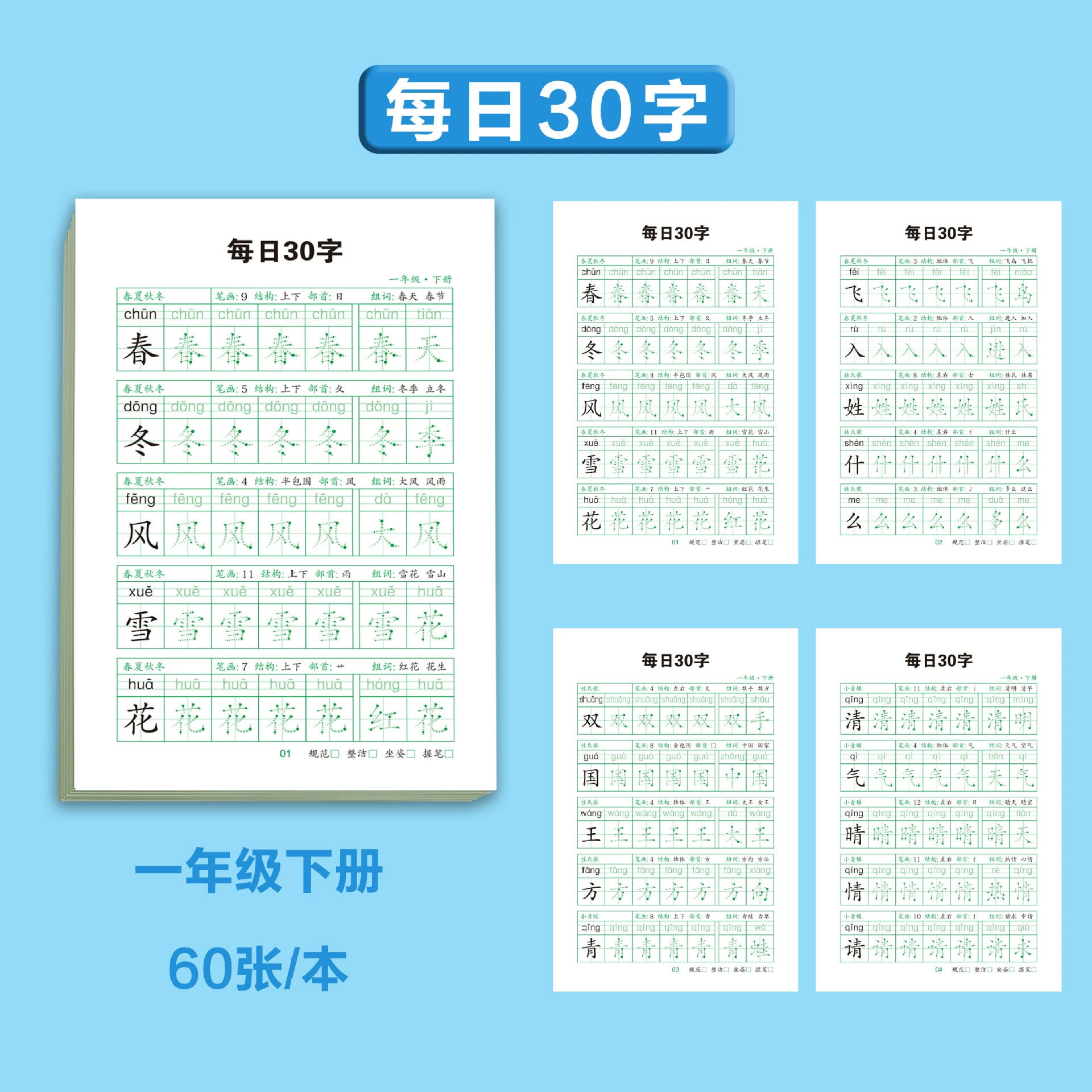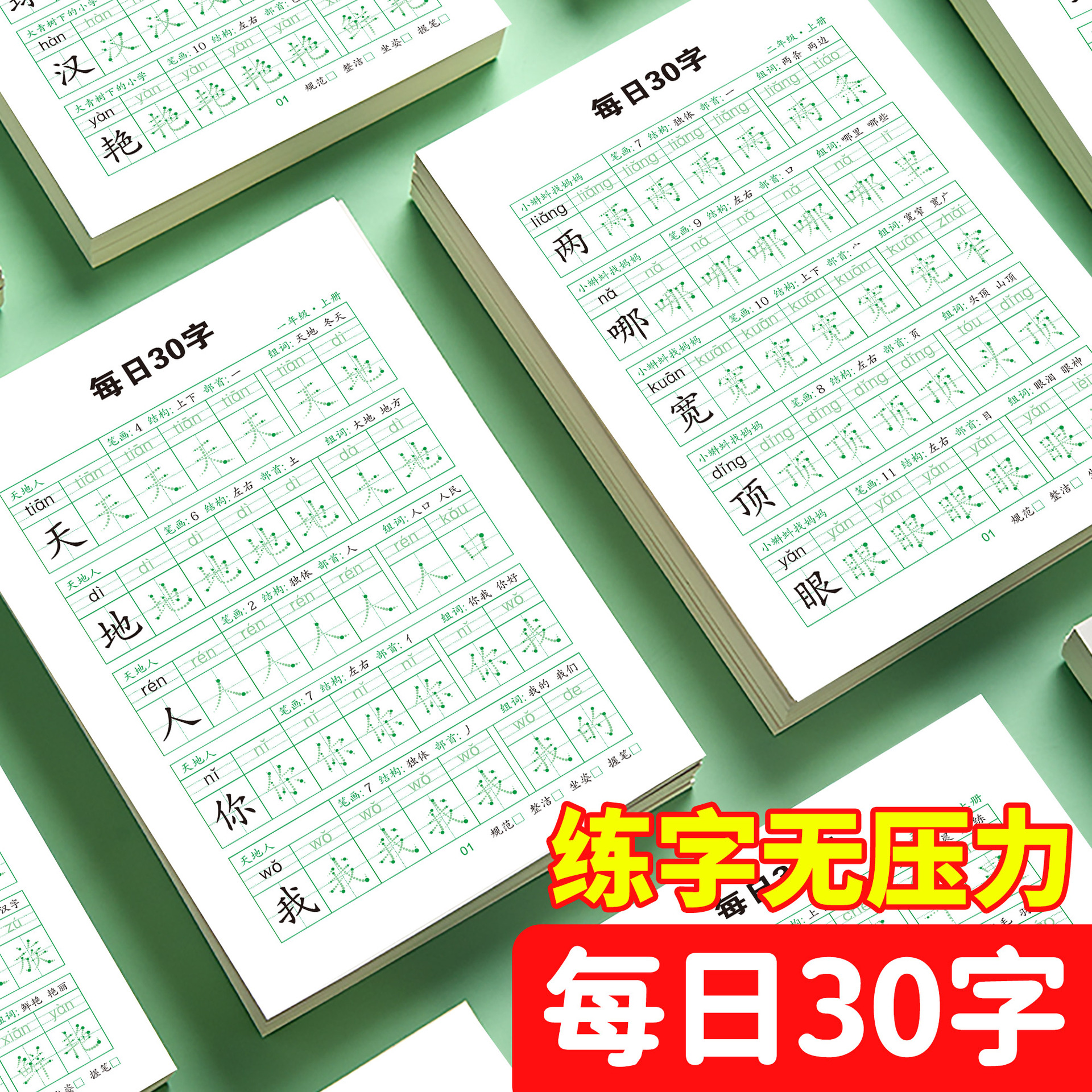 每日30字小学生练字帖1-6年级上下册语文课本同步硬笔点阵练字本