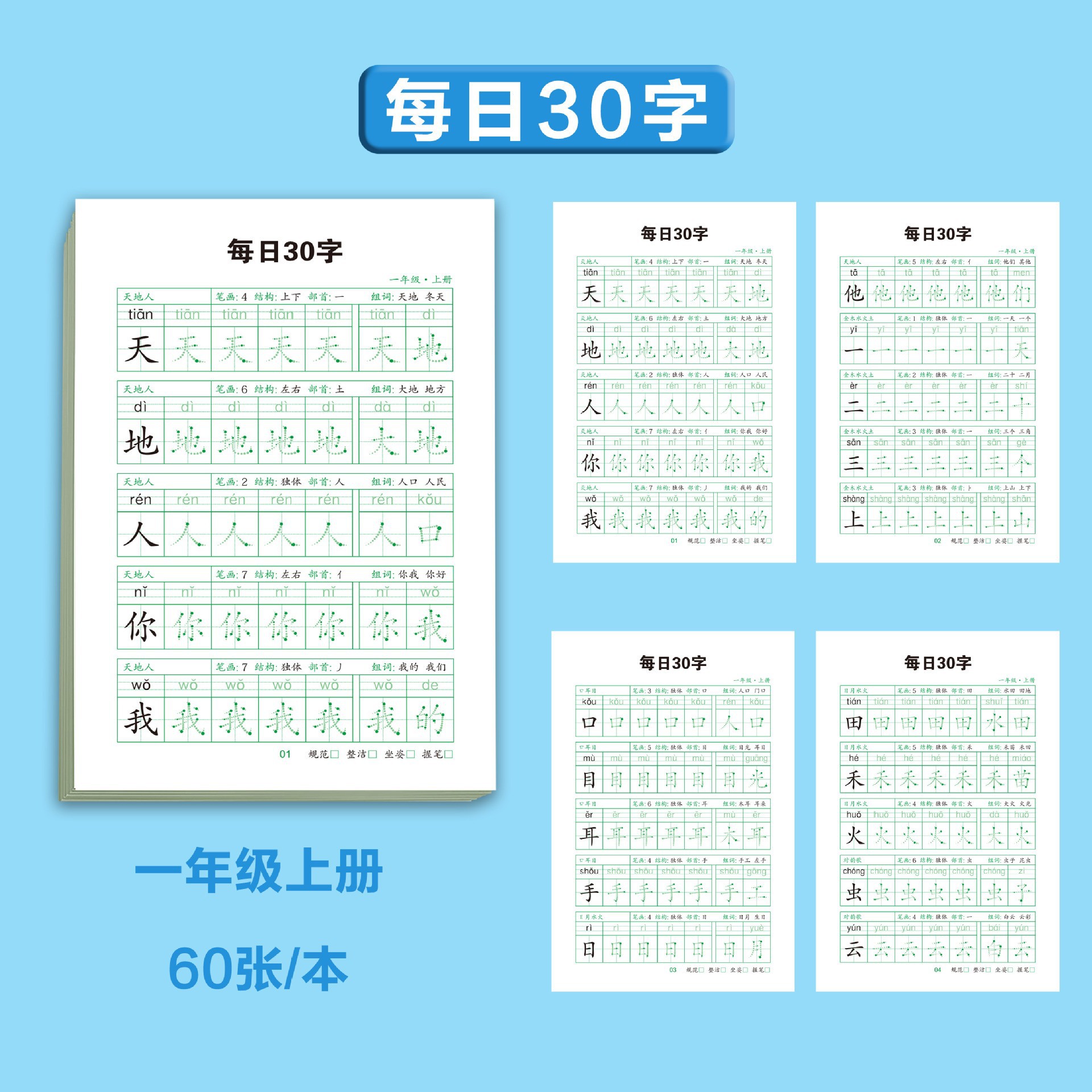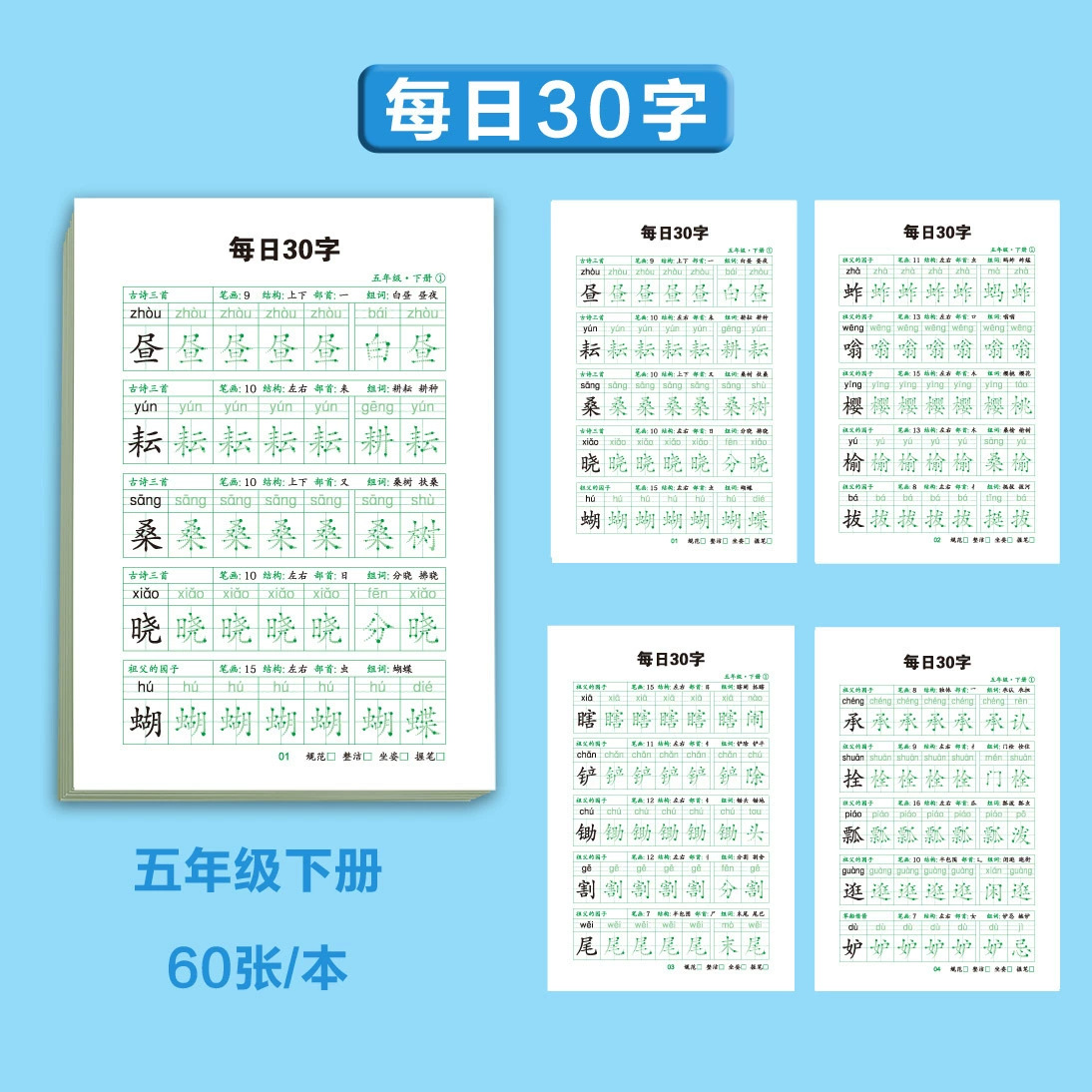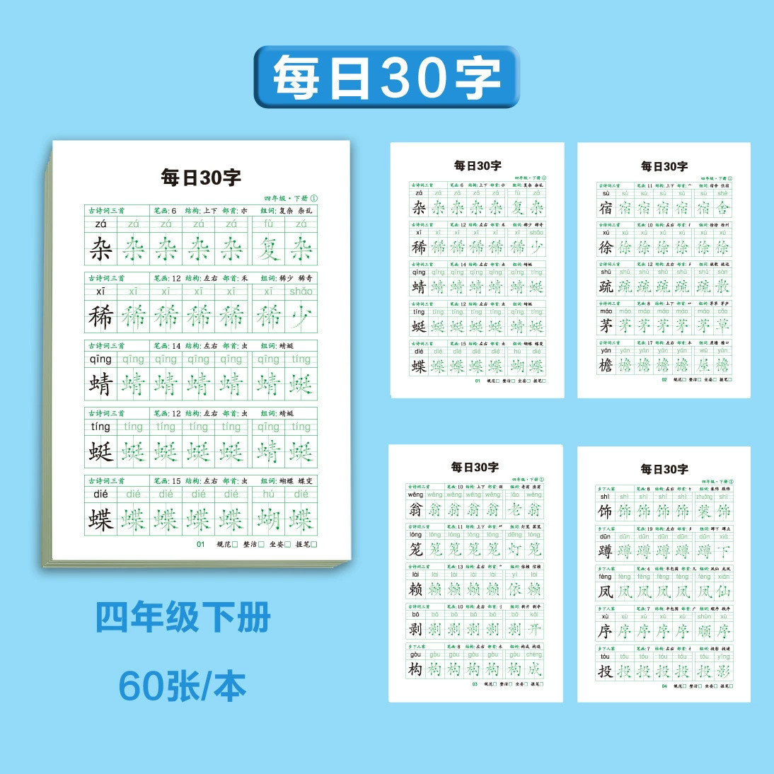 每日30字小学生练字帖1-6年级上下册语文课本同步硬笔点阵练字本