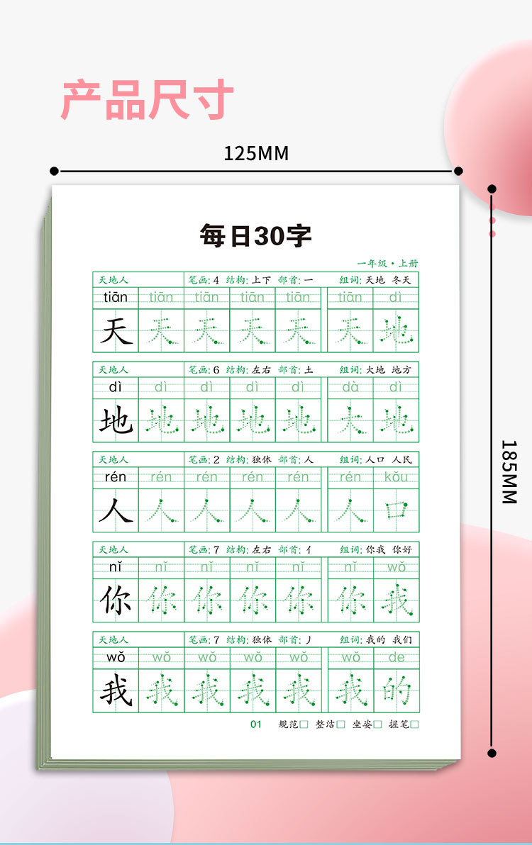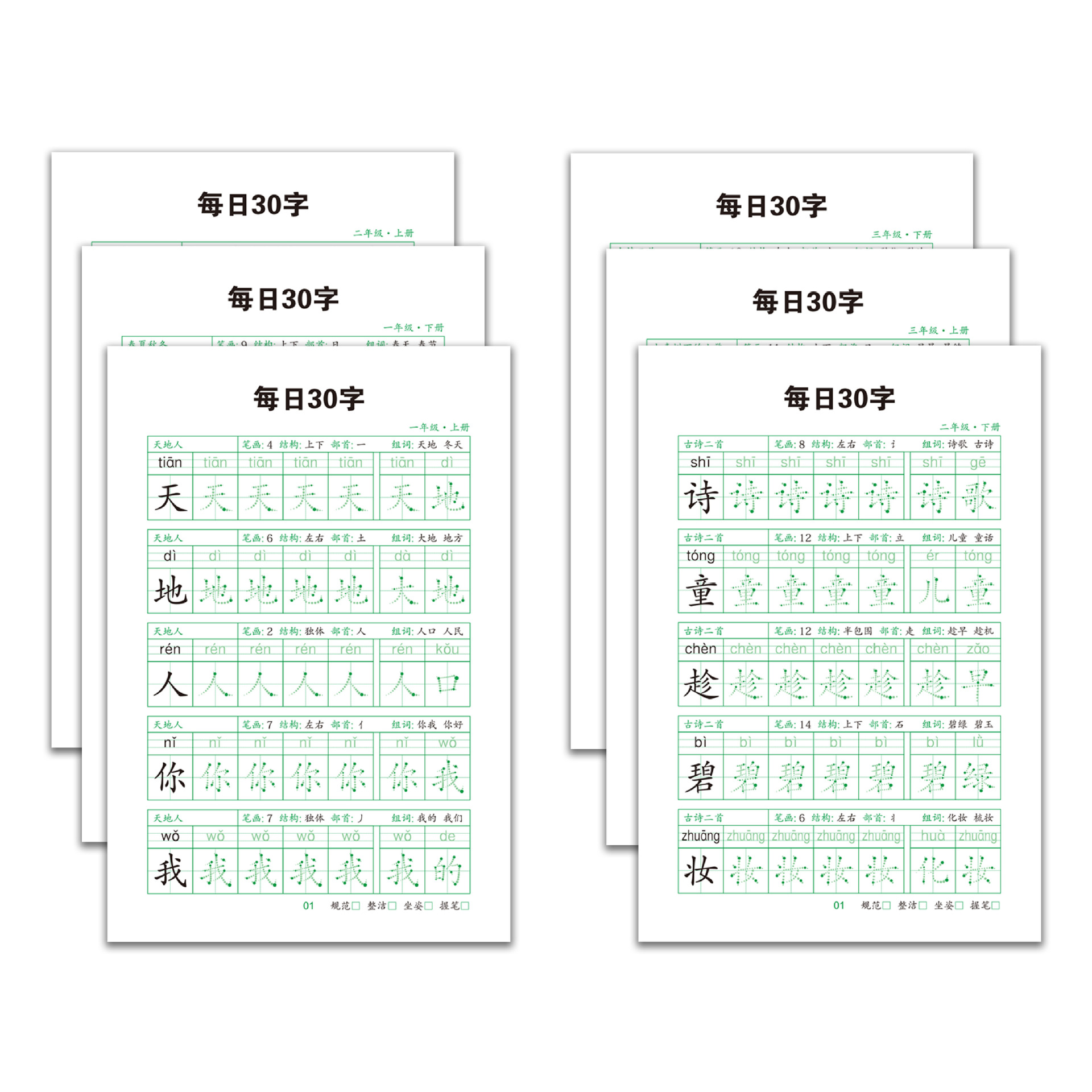 30 words per day pupils‘ copybook grade 1-6 first and second volumes chinese textbook synchronization hard-tipped pen dot matrix copybook