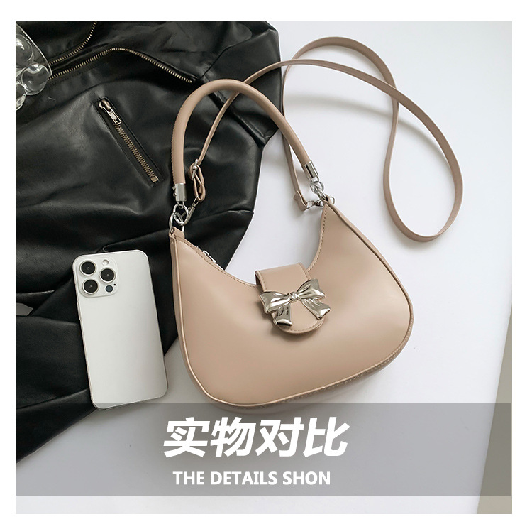 法式小众时尚女包2024新款腋下包甜美纯色蝴蝶结手提女包斜跨包