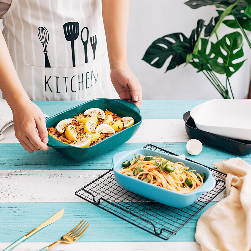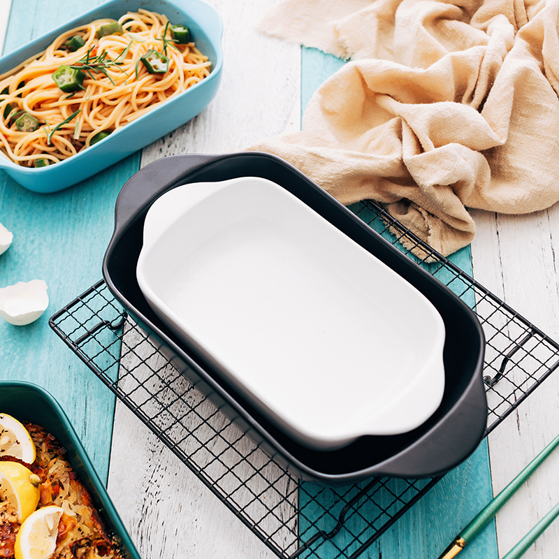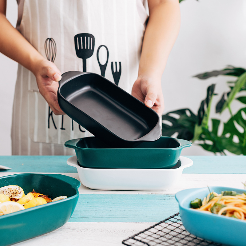 蒂范北欧哑光陶瓷烤盘双耳长方形焗饭盘烤炉烘焙碗盘套装厂家批发