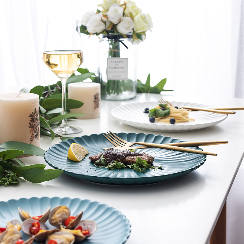蒂范批发陶瓷盘子水果蛋糕盘圆形牛扒西餐盘家用餐厅陶瓷餐具跨境