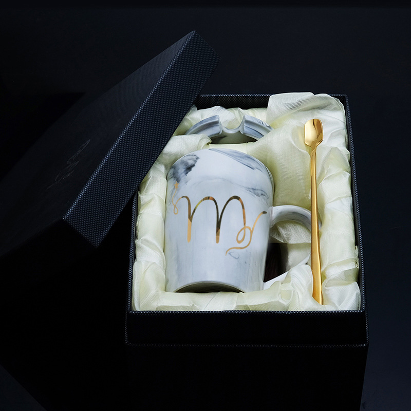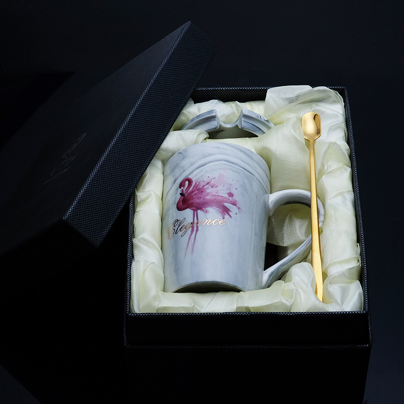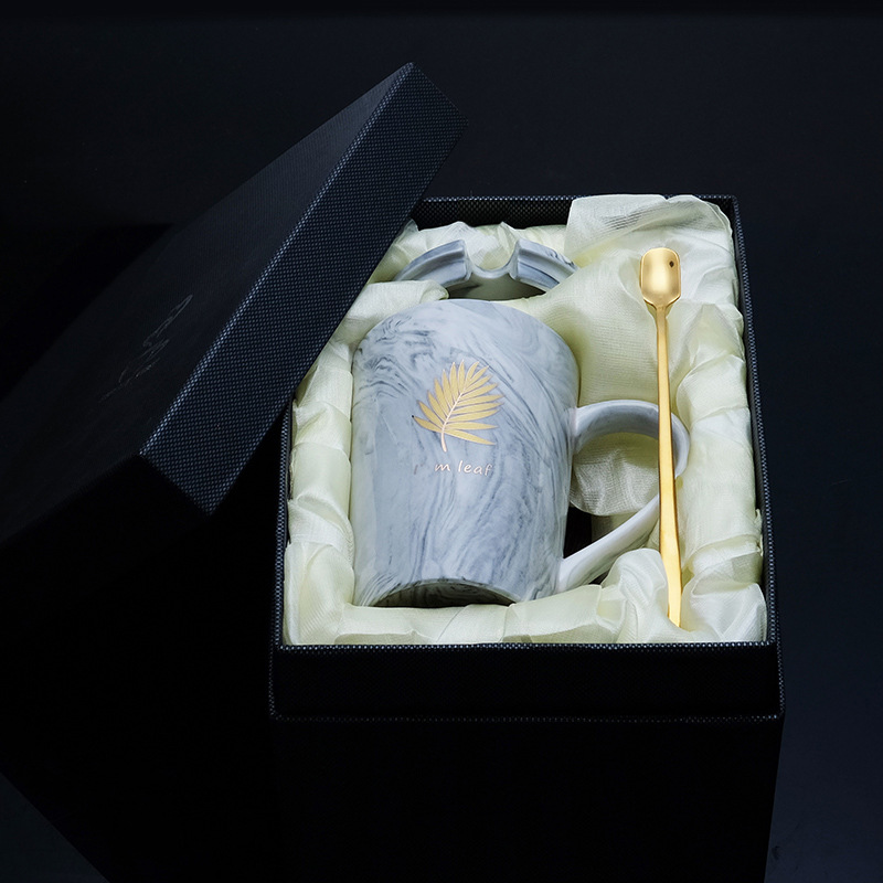 创意欧式12安士石纹陶瓷杯马克杯礼盒装跨境咖啡杯礼品批发伴手礼