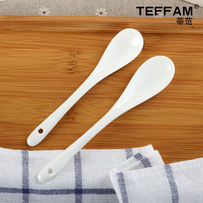 纯白咖啡搅拌勺家用勺 韩式雪糕勺子 ZAKKA骨瓷长柄陶瓷小勺子