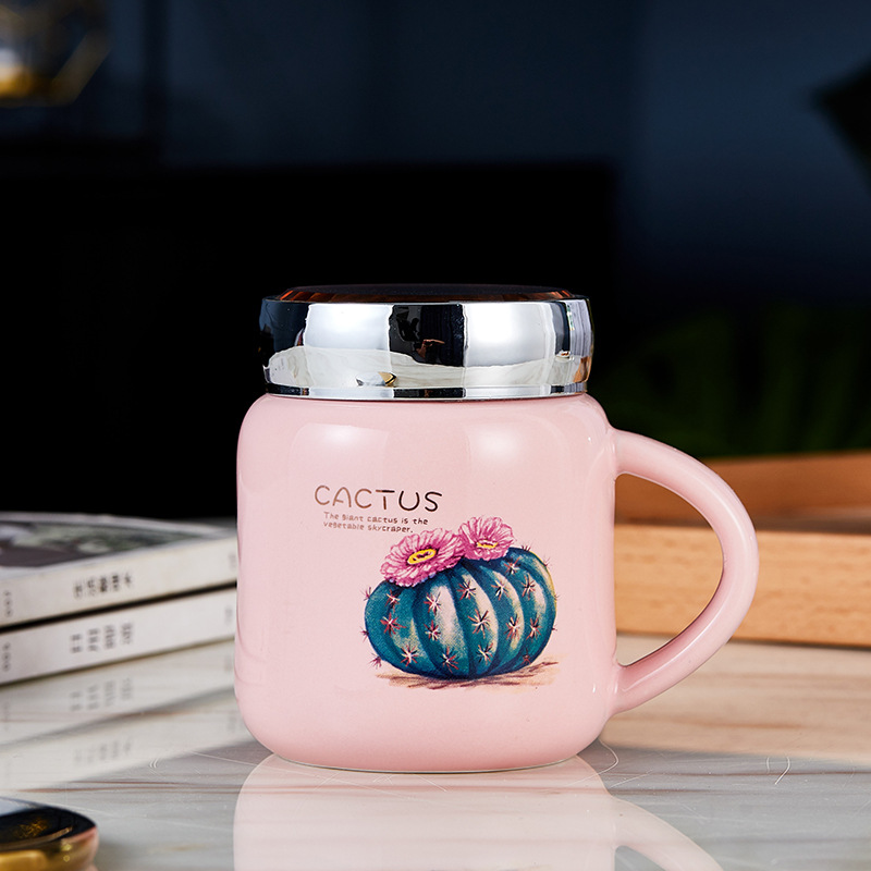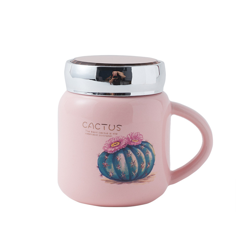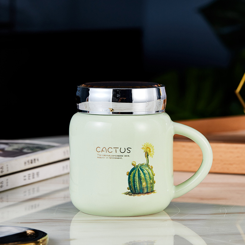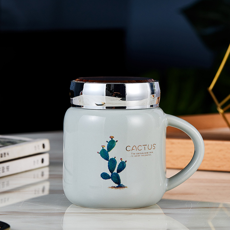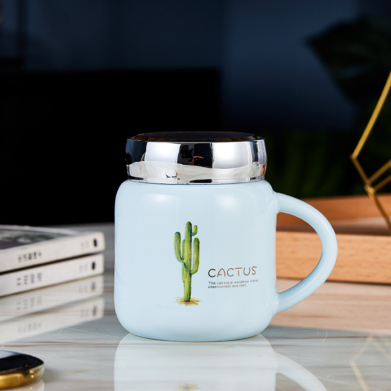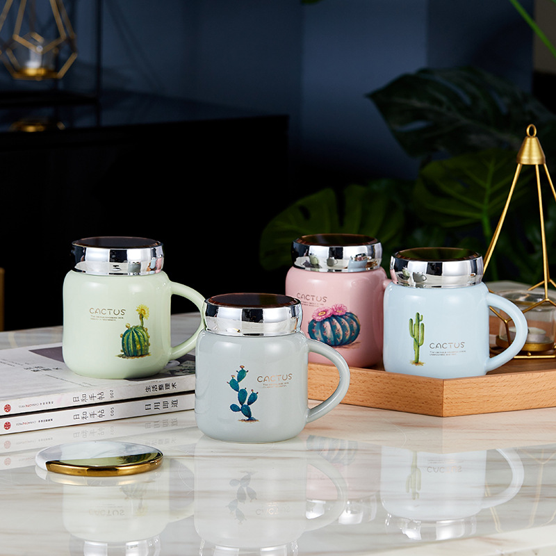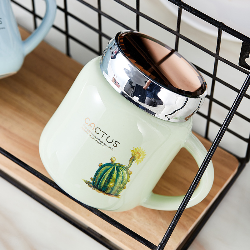 蒂范陶瓷杯镜面创意马克杯带盖杯子大容量咖啡杯学生情侣杯伴手礼