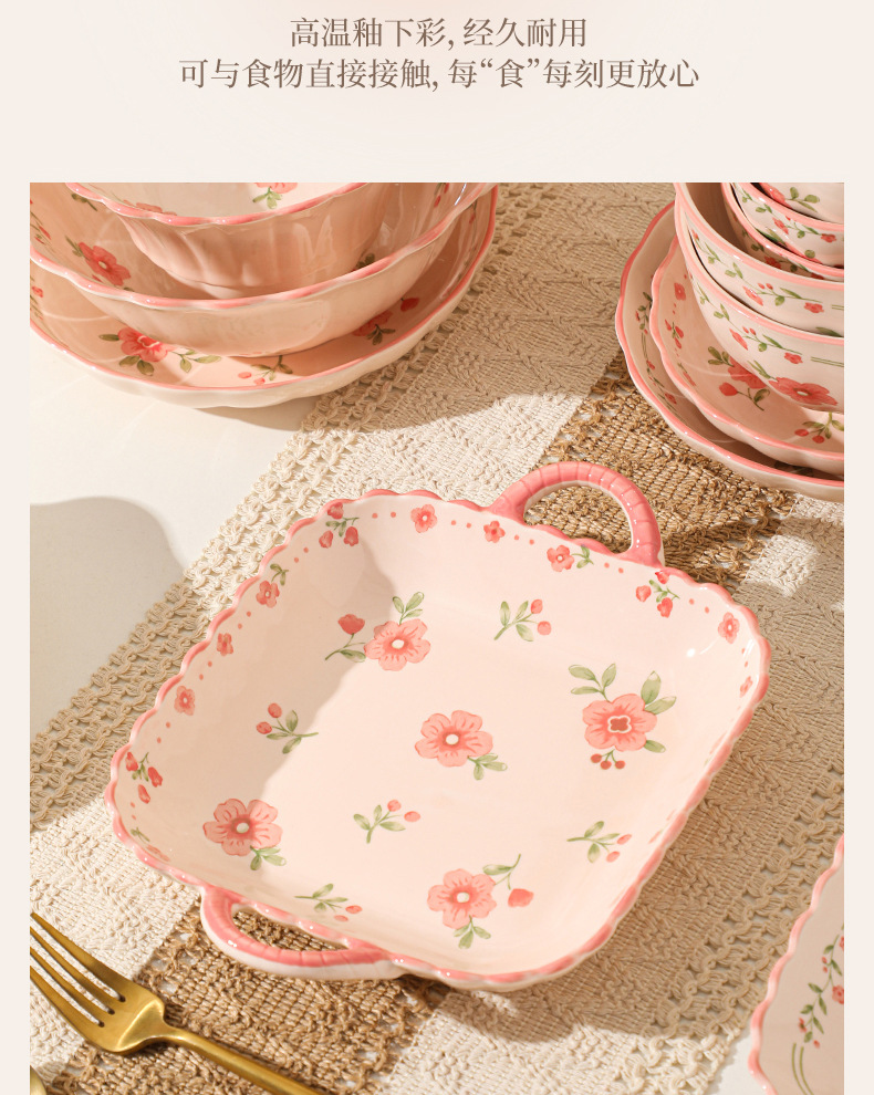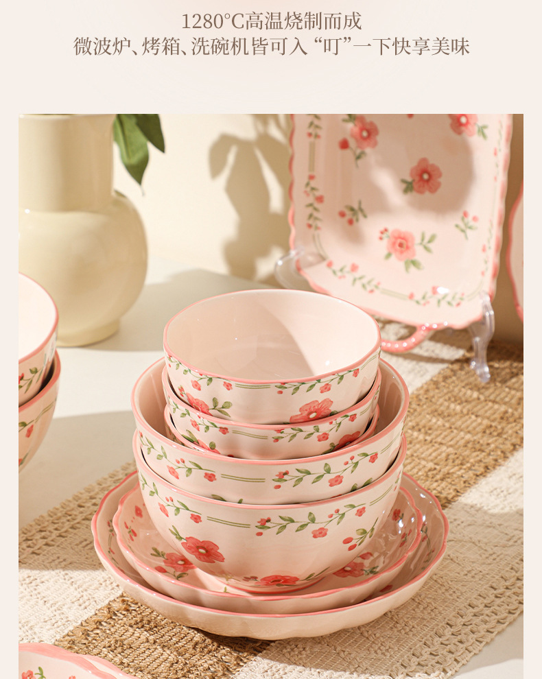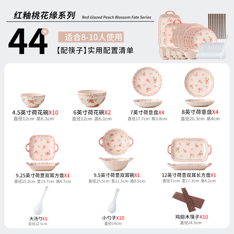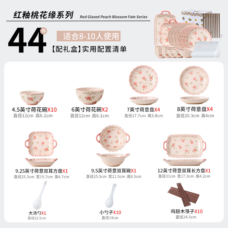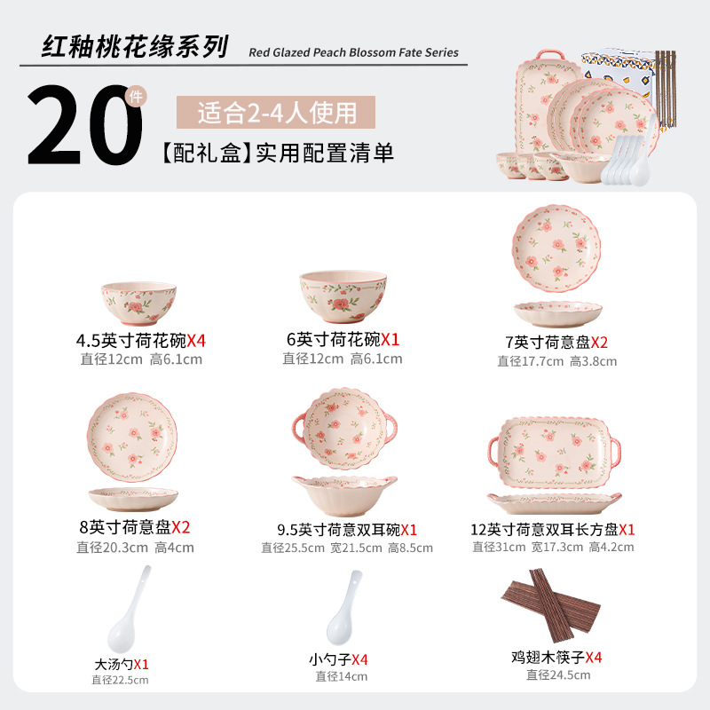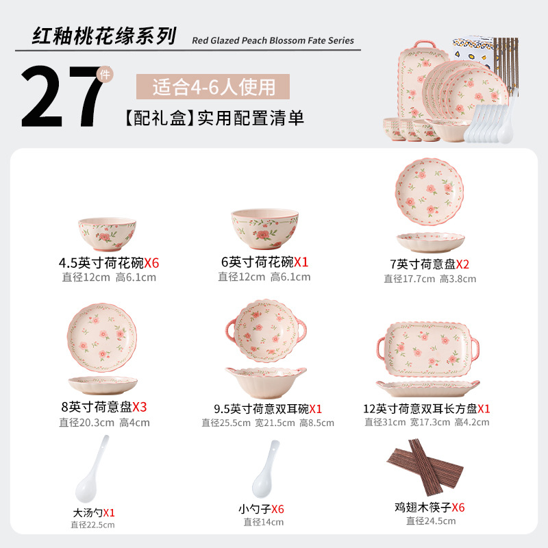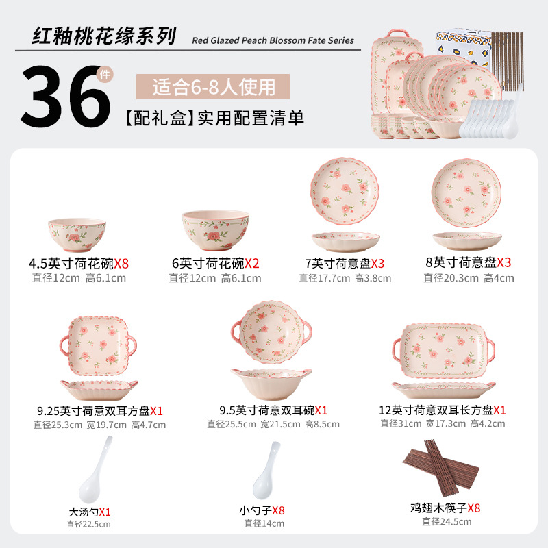 高颜值红釉陶瓷餐具家用陶瓷碗汤碗鱼盘结婚乔迁送礼喜庆餐具套装