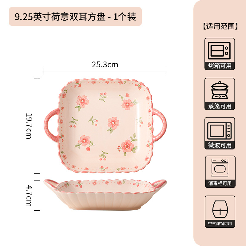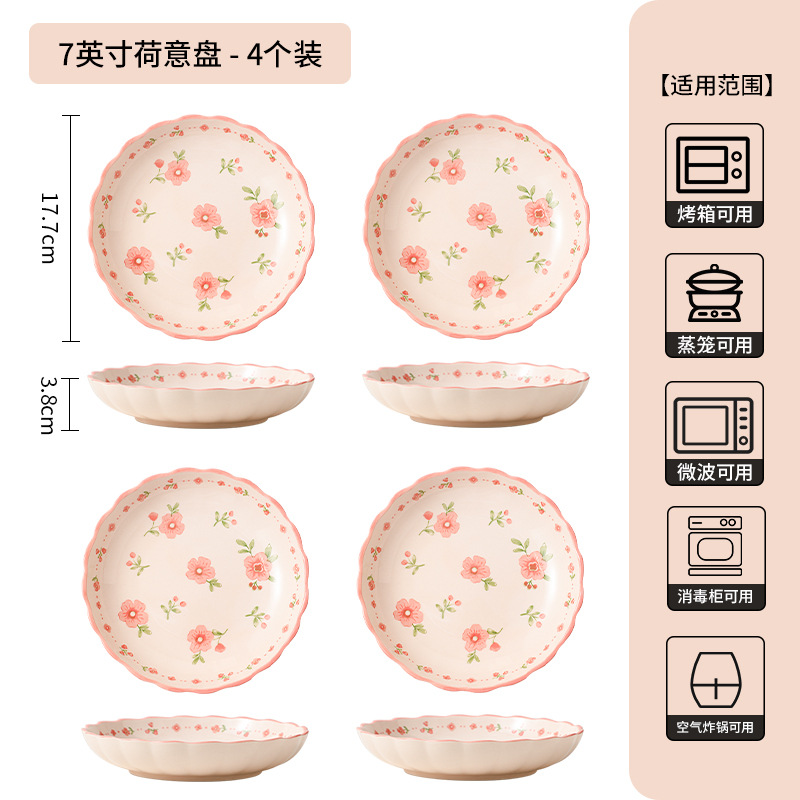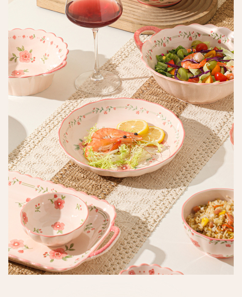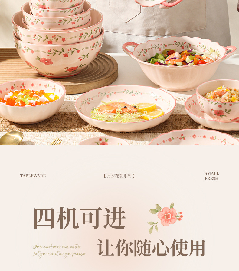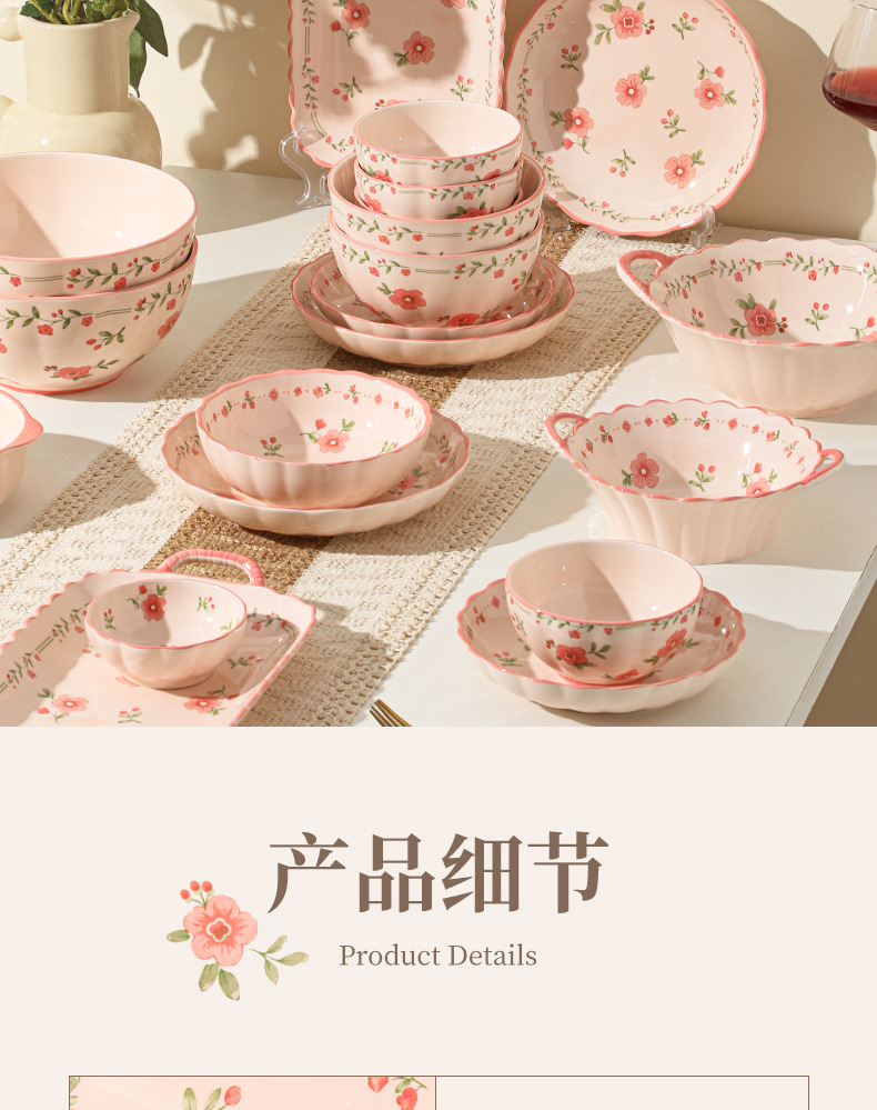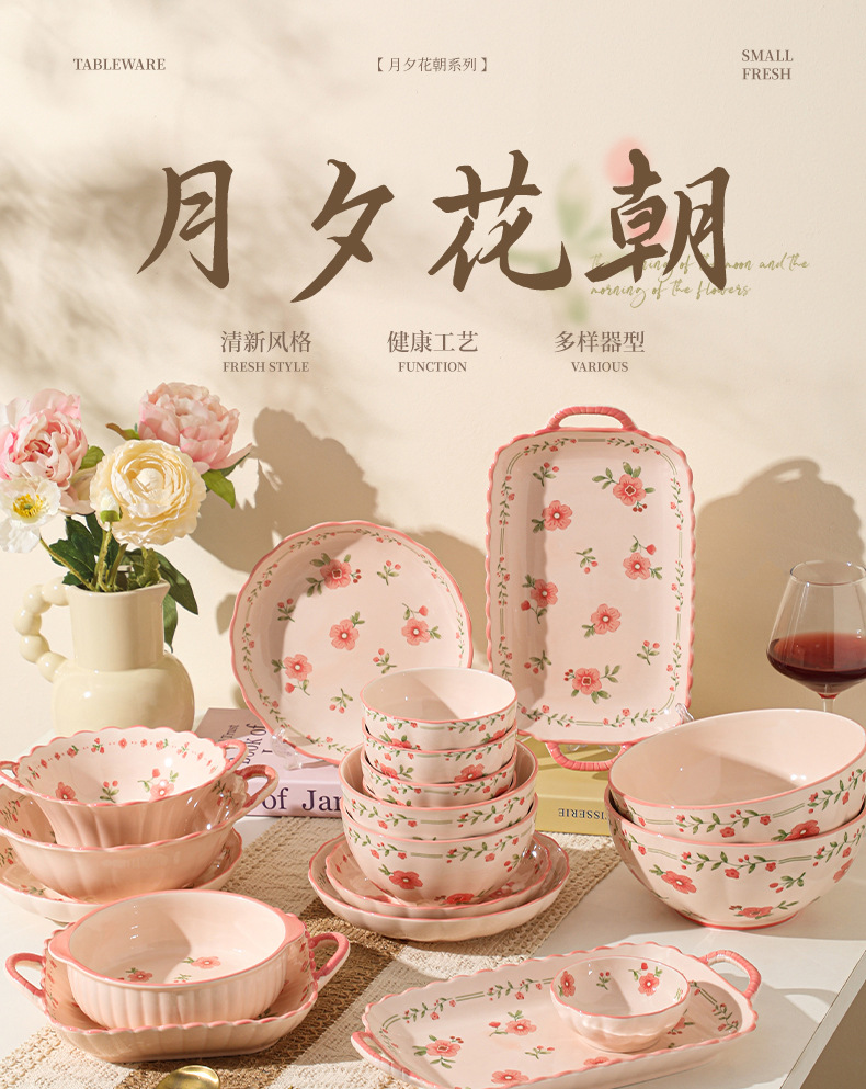 高颜值红釉陶瓷餐具家用陶瓷碗汤碗鱼盘结婚乔迁送礼喜庆餐具套装