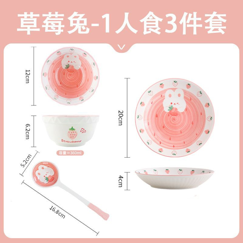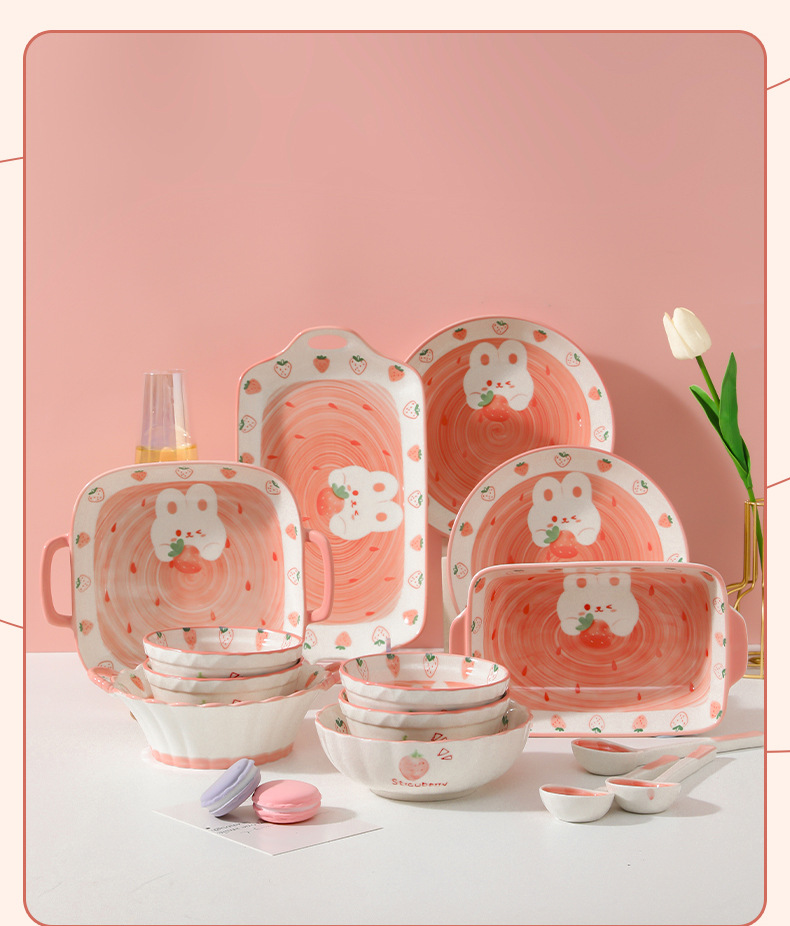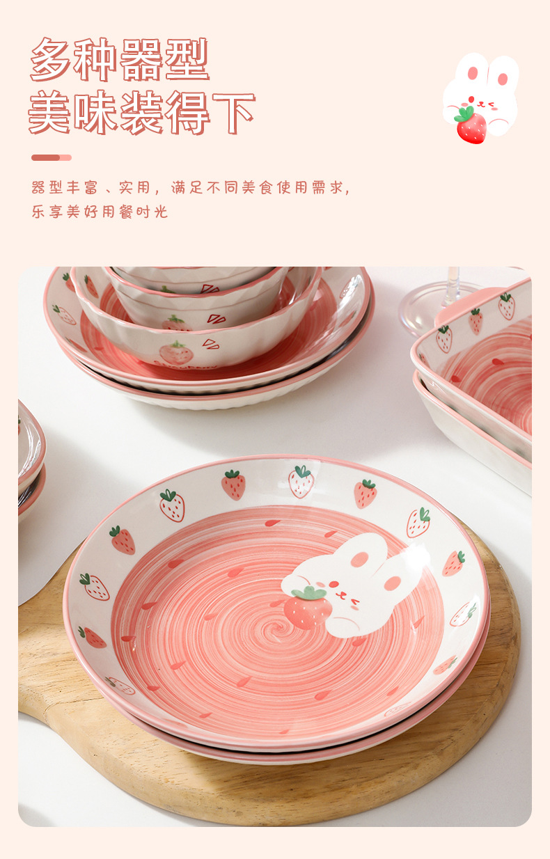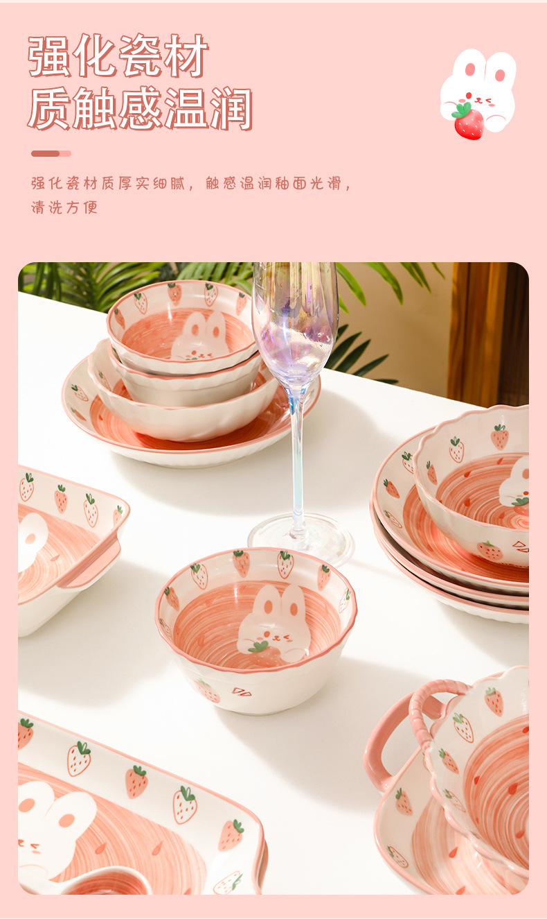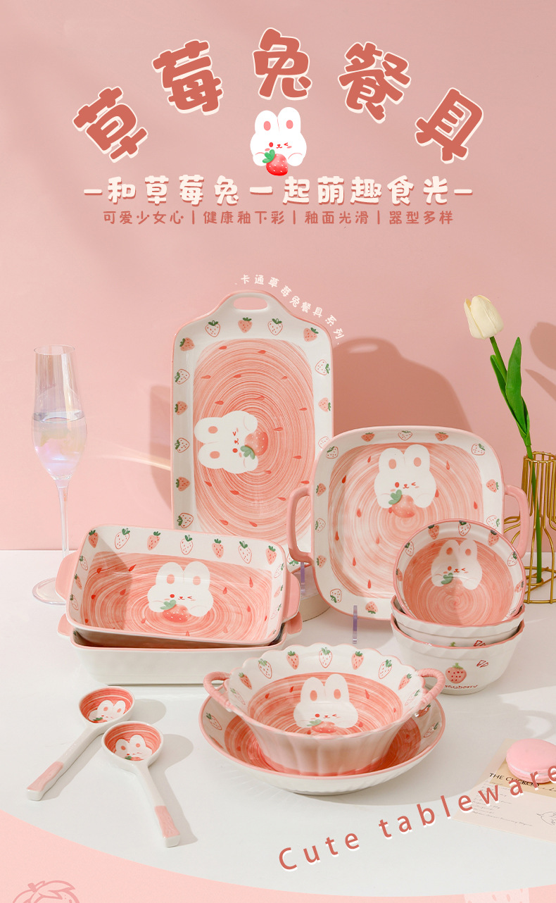 清新萌趣ins风釉下彩陶瓷餐具套装 盘子批发家用儿童碗沙拉碗鱼盘