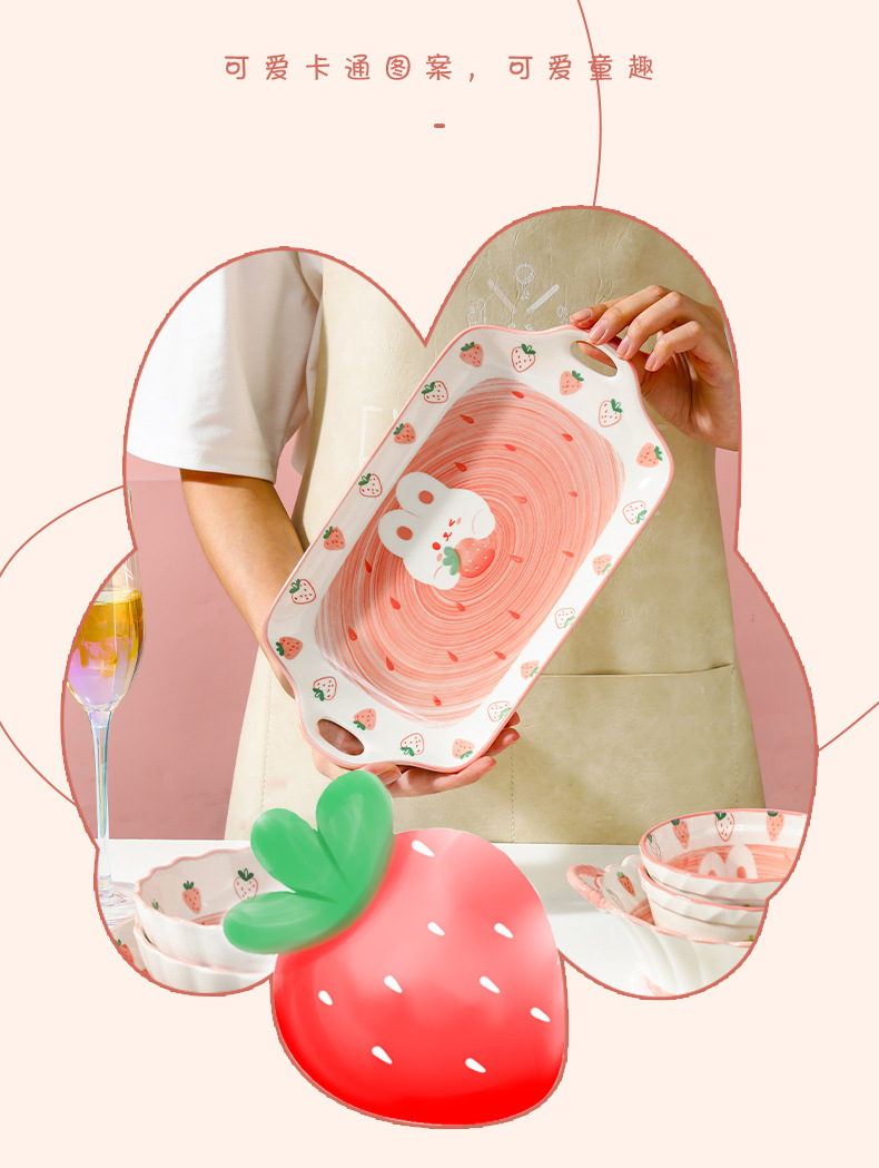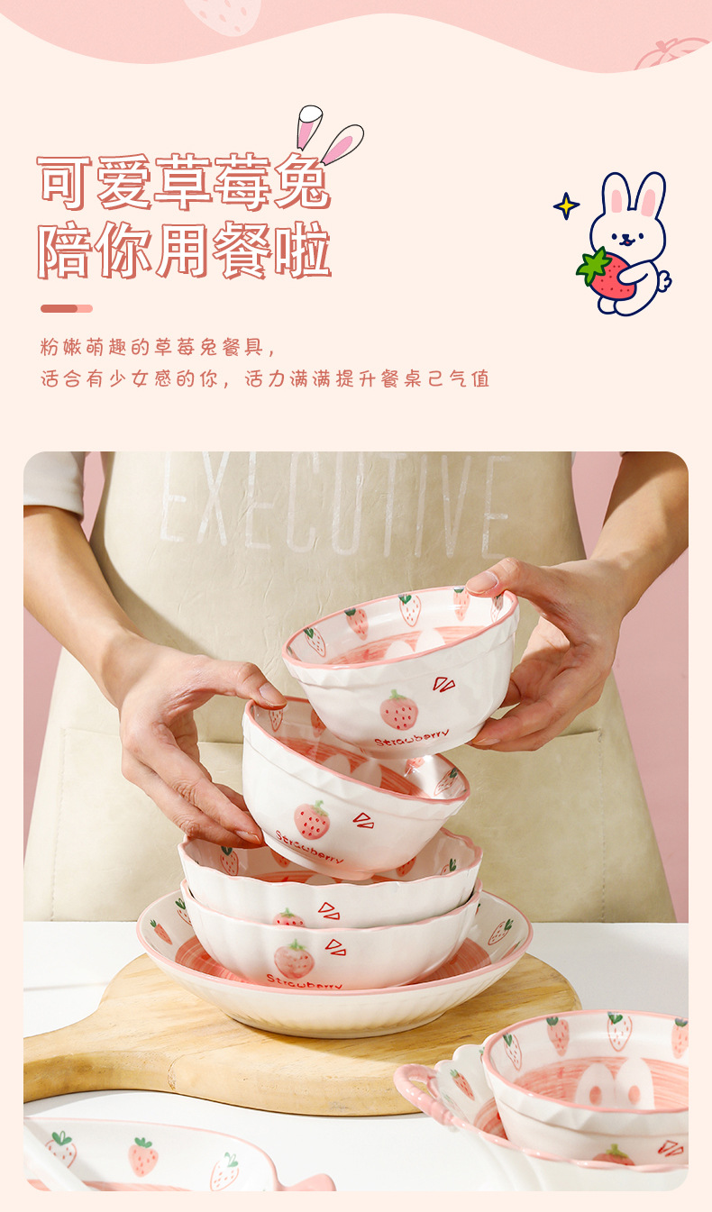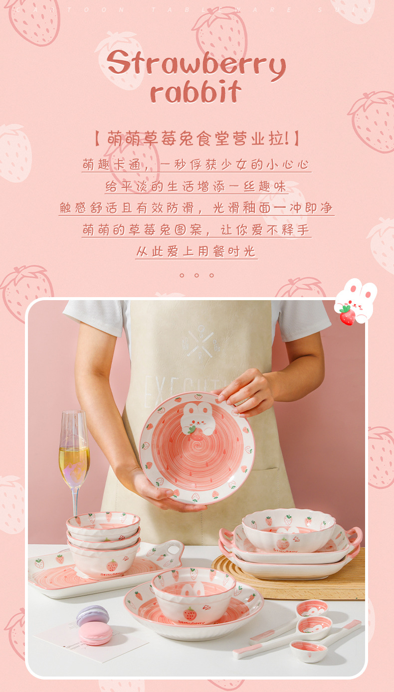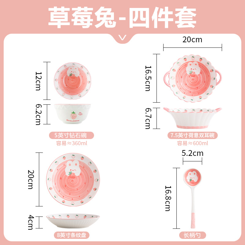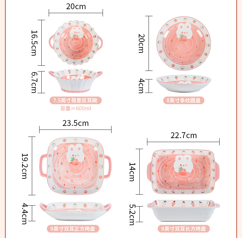 清新萌趣ins风釉下彩陶瓷餐具套装 盘子批发家用儿童碗沙拉碗鱼盘