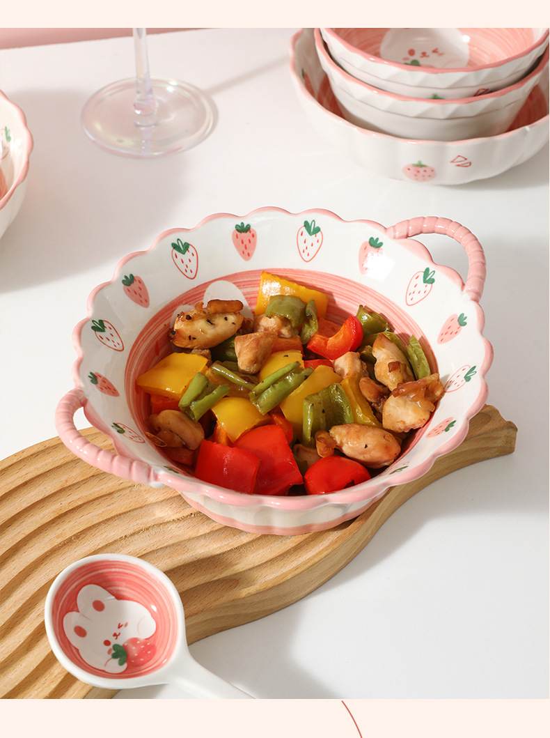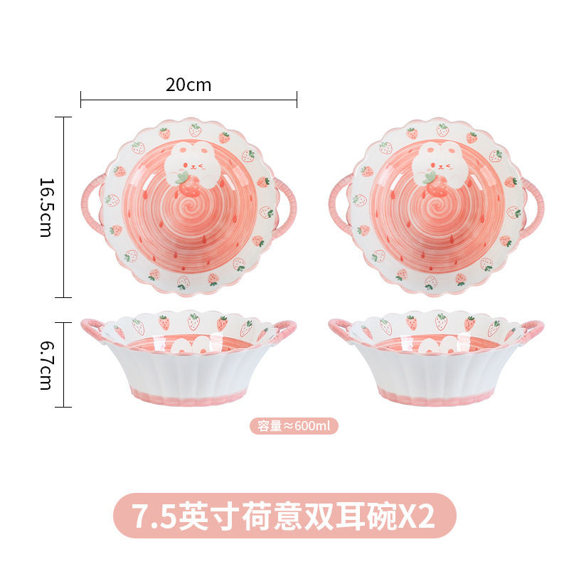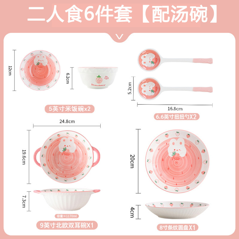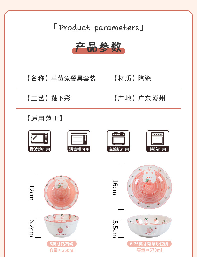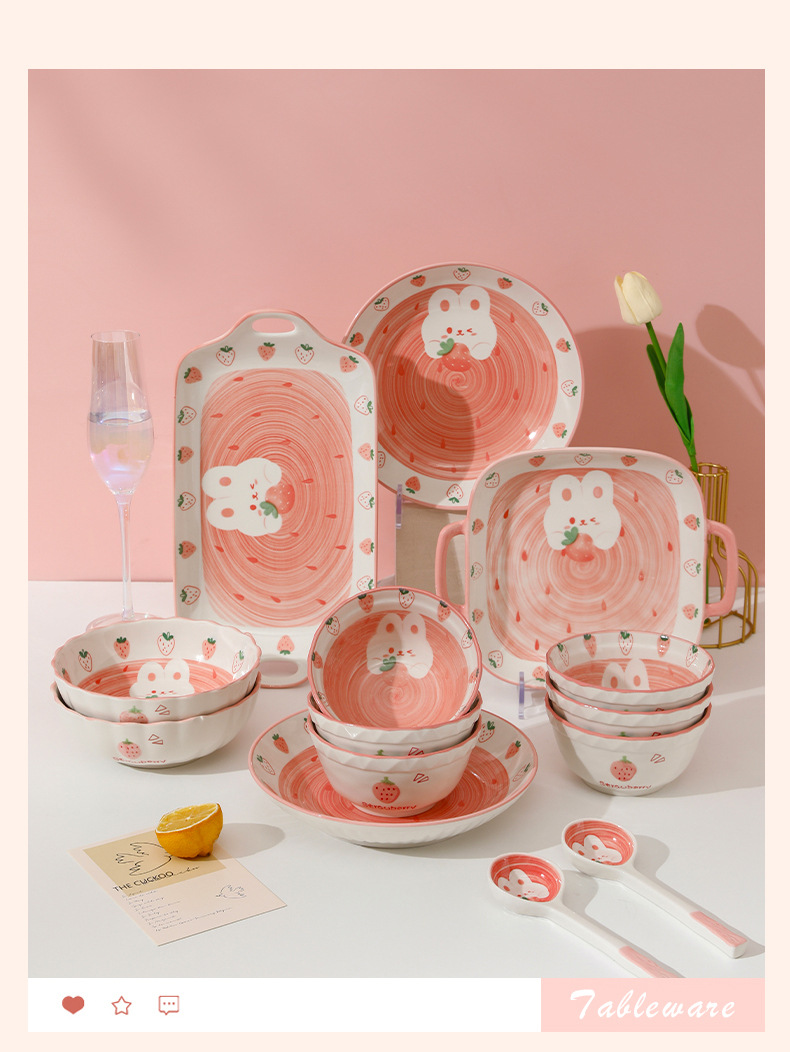 清新萌趣ins风釉下彩陶瓷餐具套装 盘子批发家用儿童碗沙拉碗鱼盘