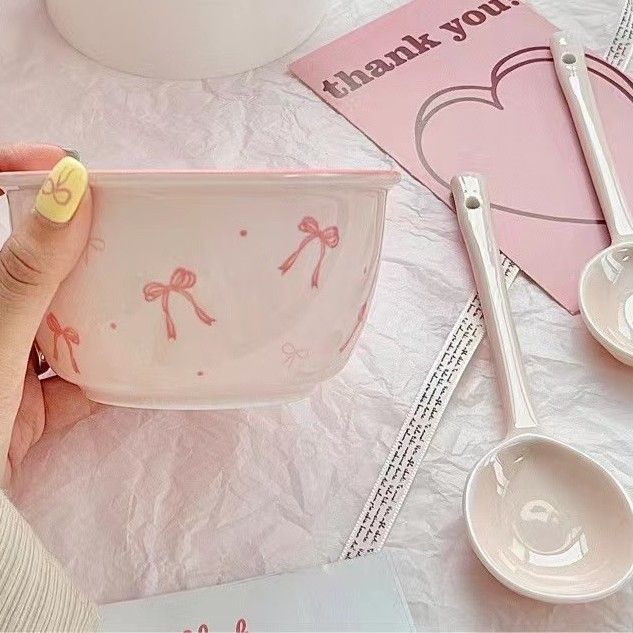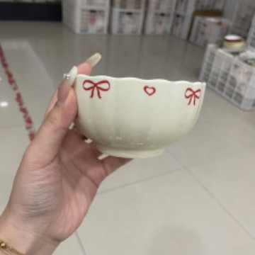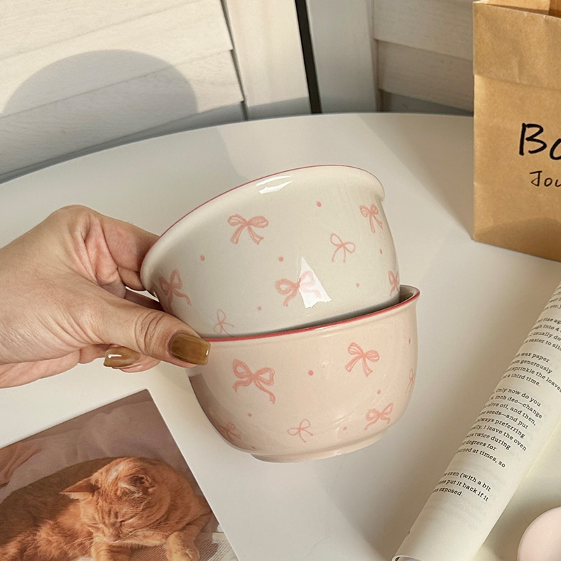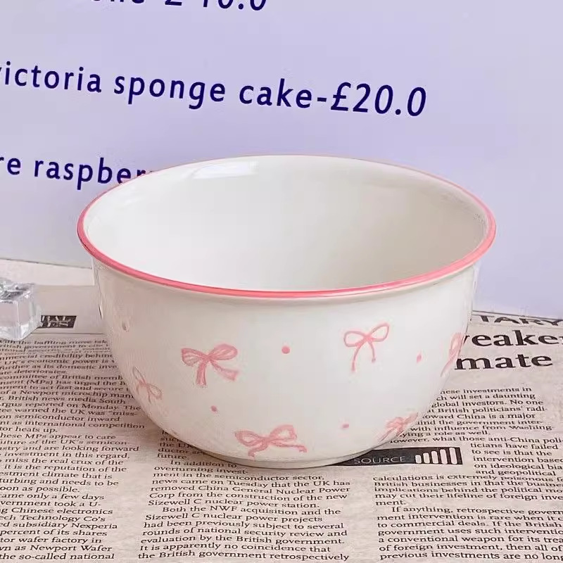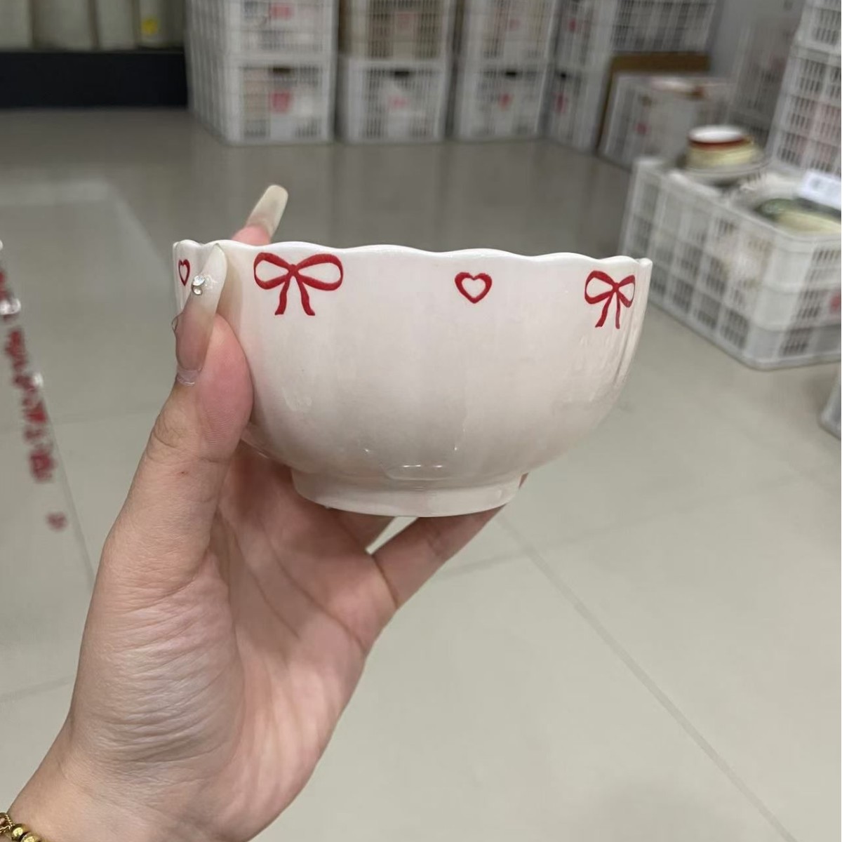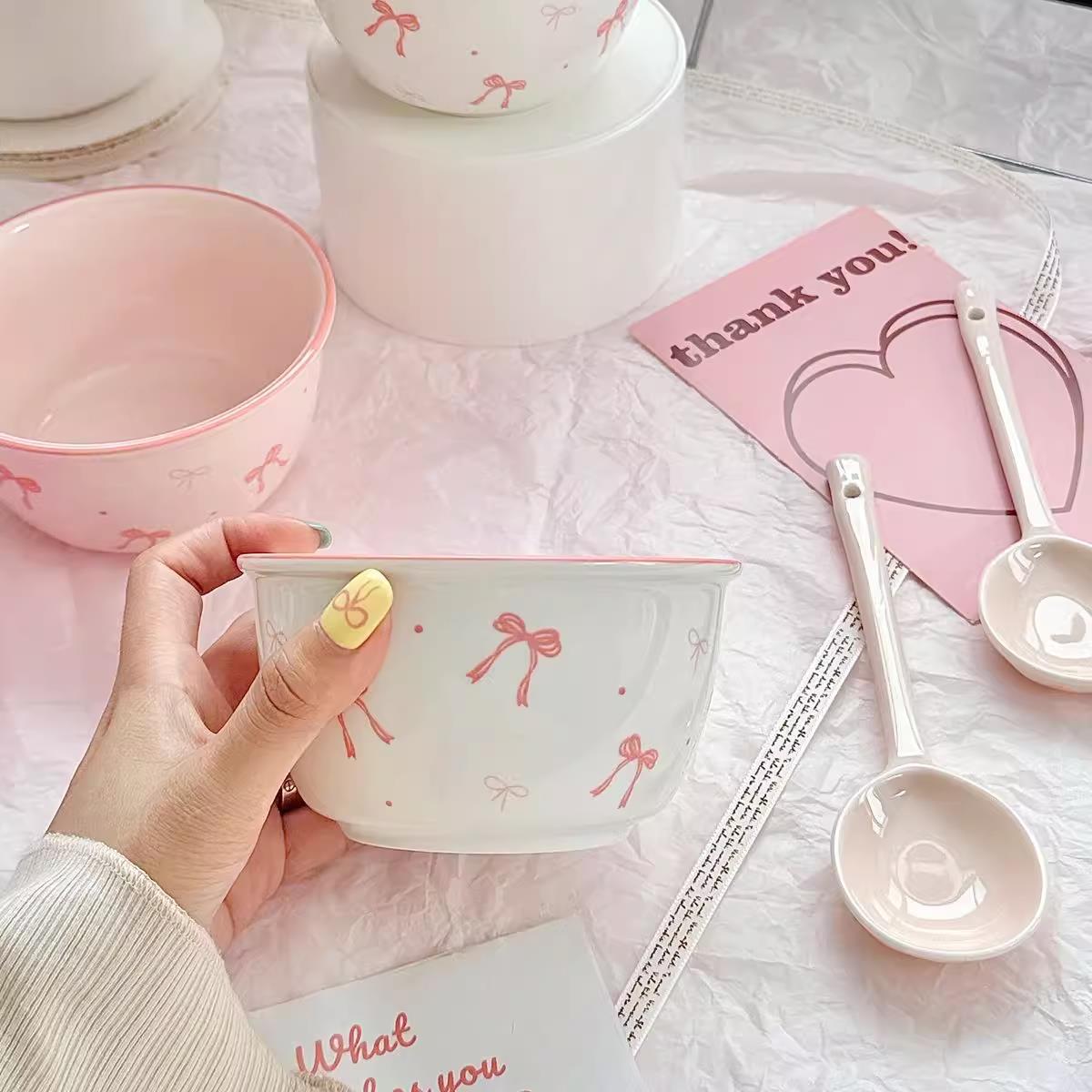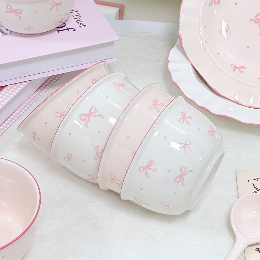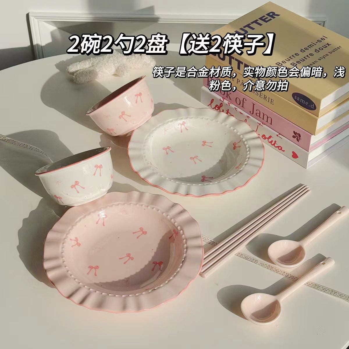 碗ins蝴蝶结碗碟套装饭碗家用陶瓷碗餐具高颜值米饭碗网红草帽盘