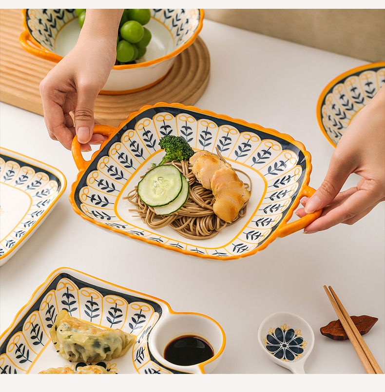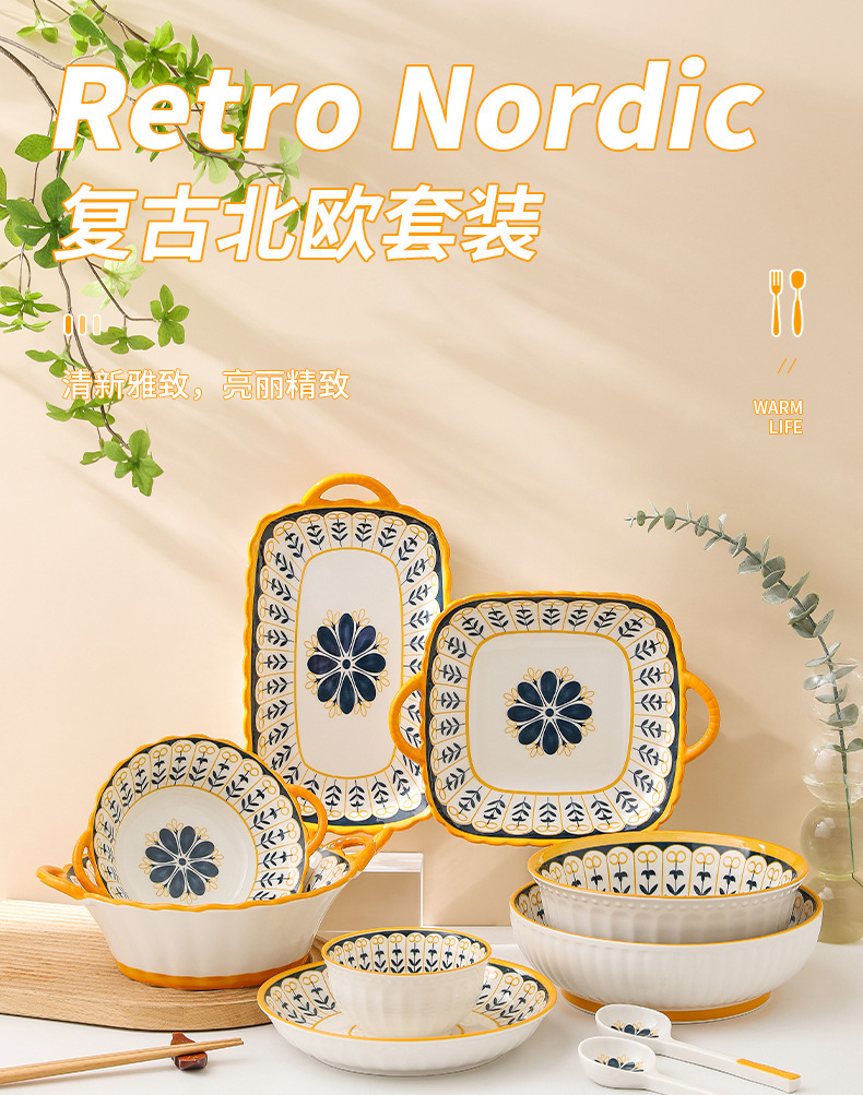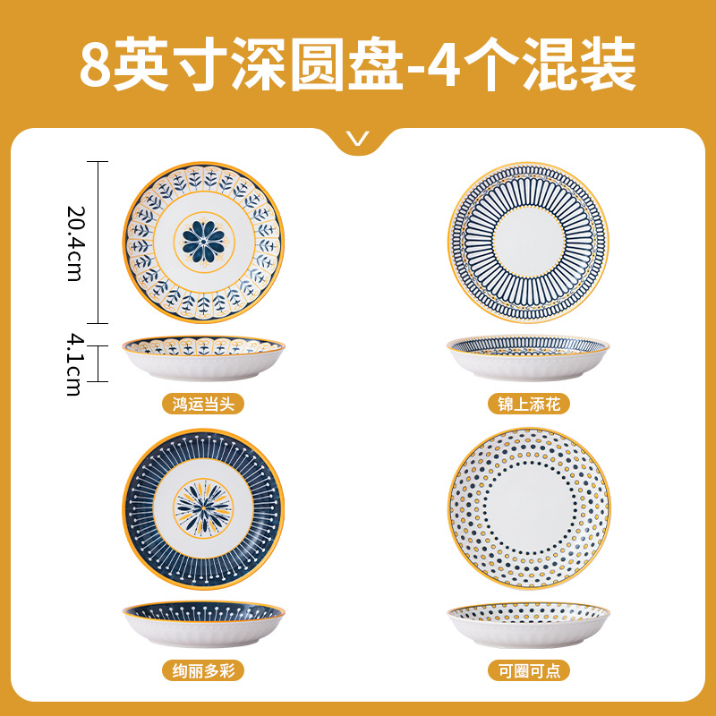 日式高颜值碗碟套装盘子碟子陶瓷碗汤碗饺子盘米饭碗家用陶瓷餐具