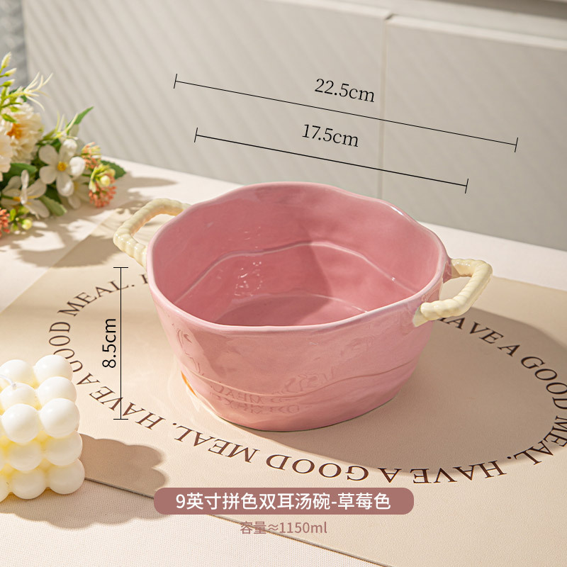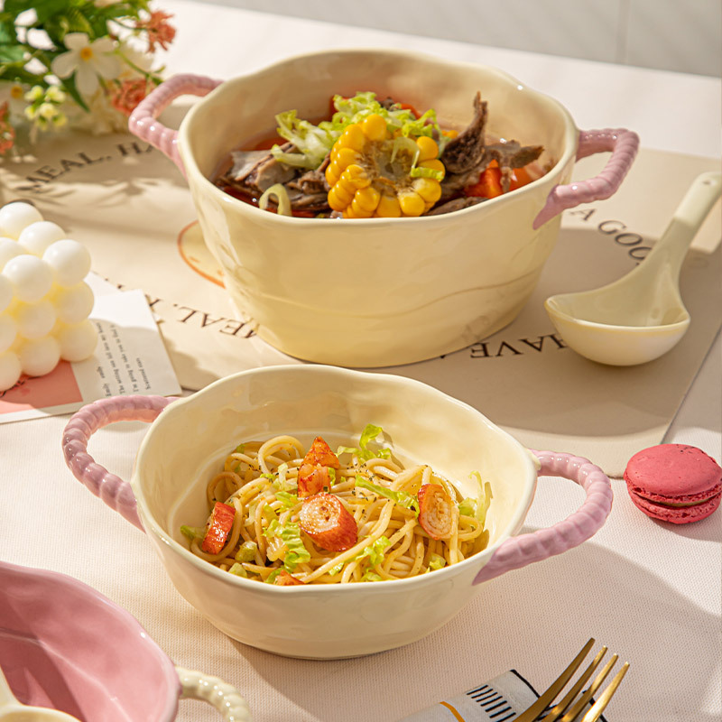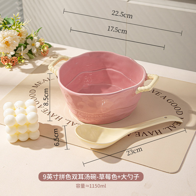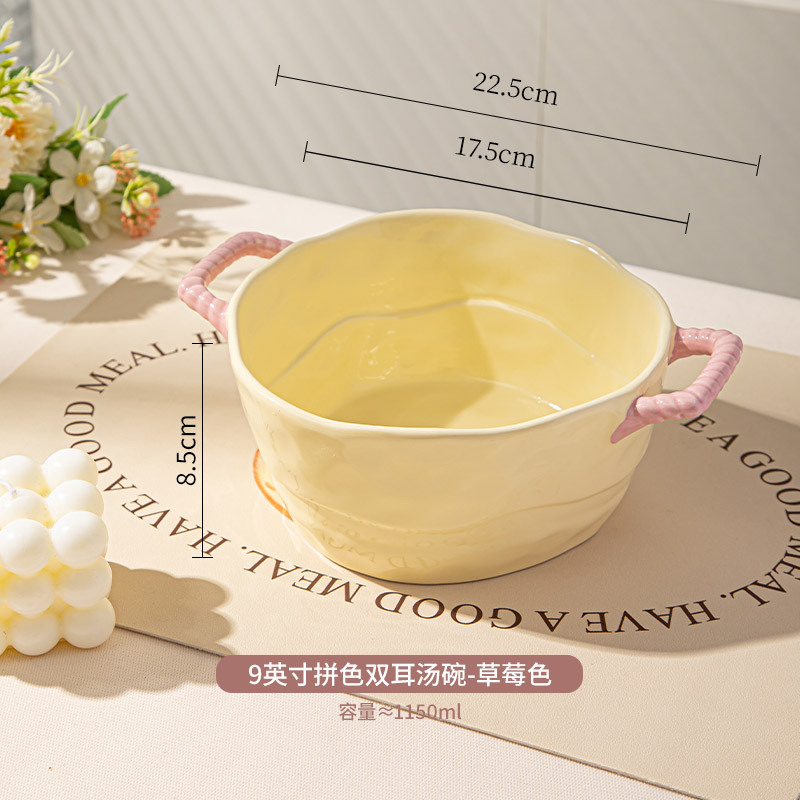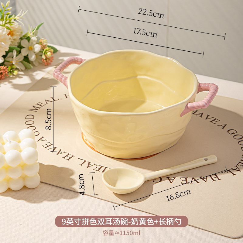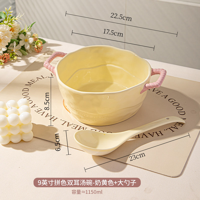 ins风高颜值双耳汤碗家用批发汤碗餐厅酒店甜品碗沙拉碗泡面碗
