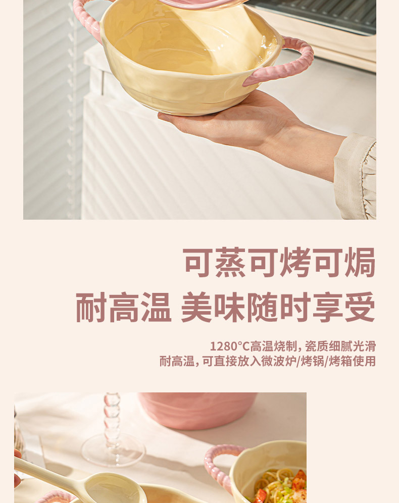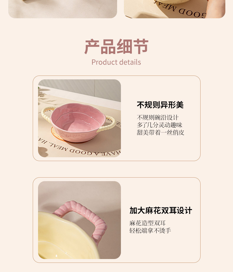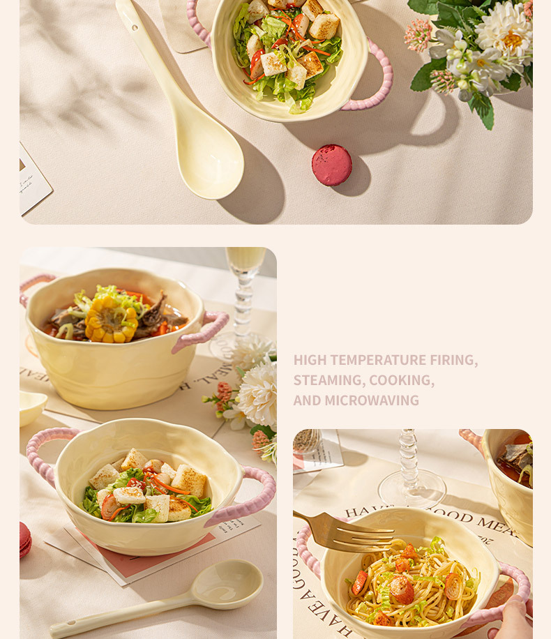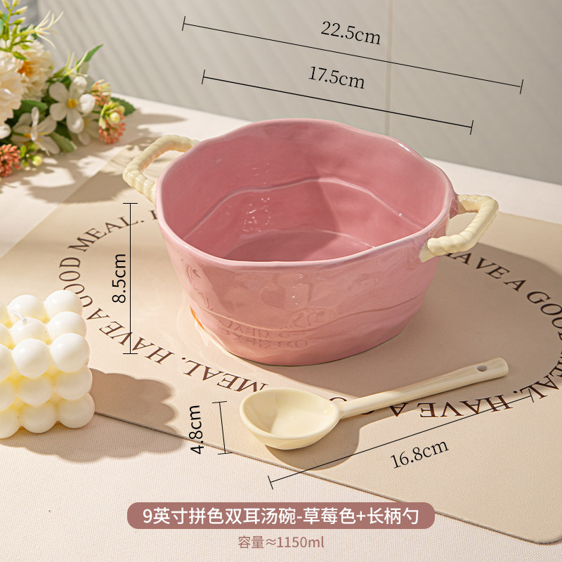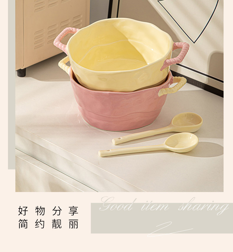 ins风高颜值双耳汤碗家用批发汤碗餐厅酒店甜品碗沙拉碗泡面碗