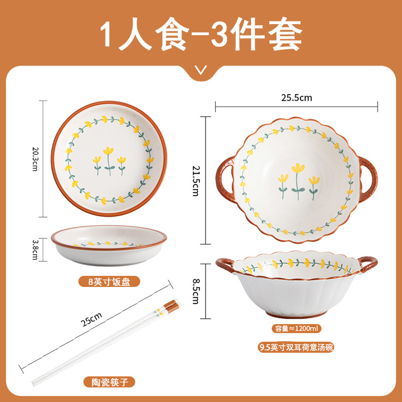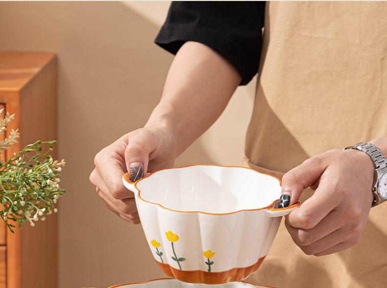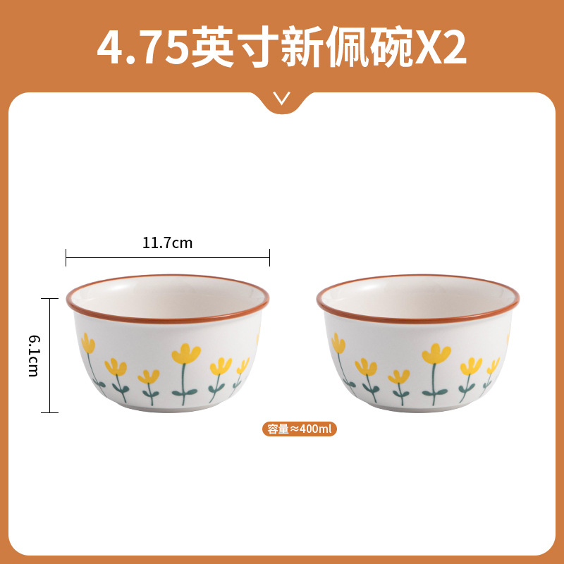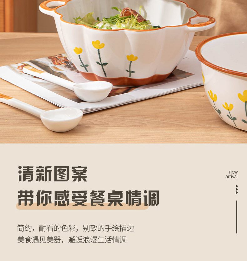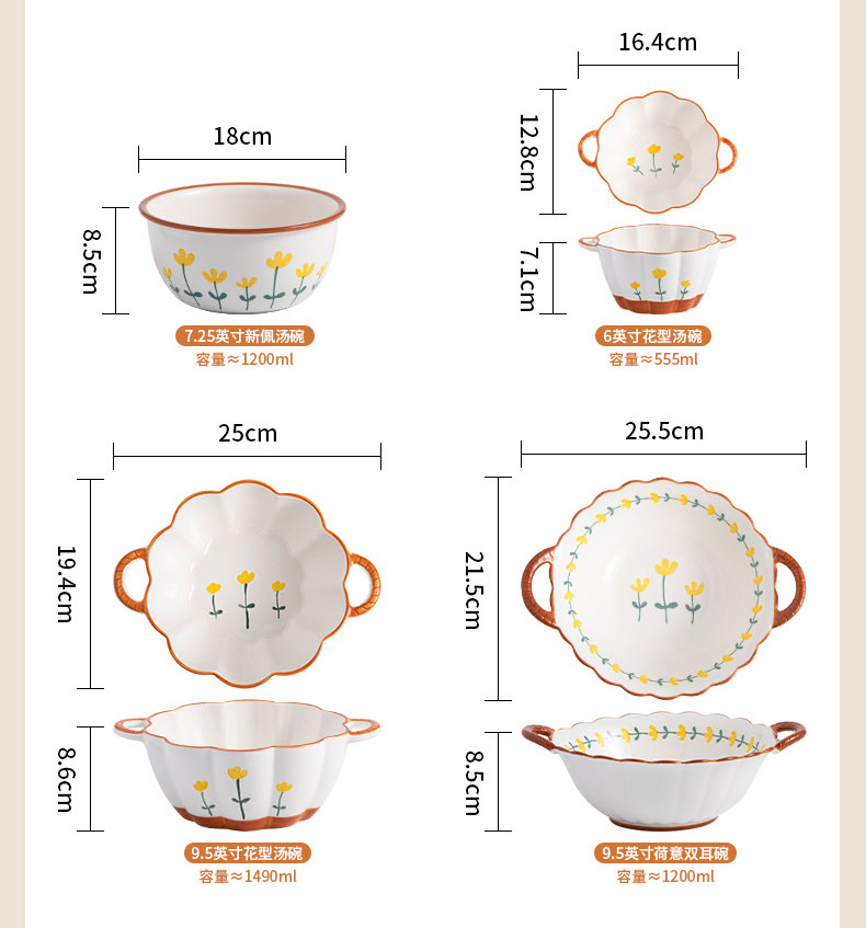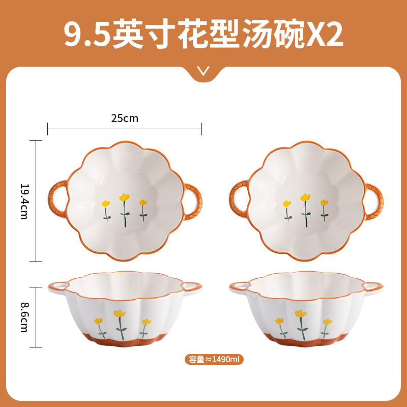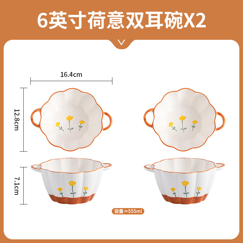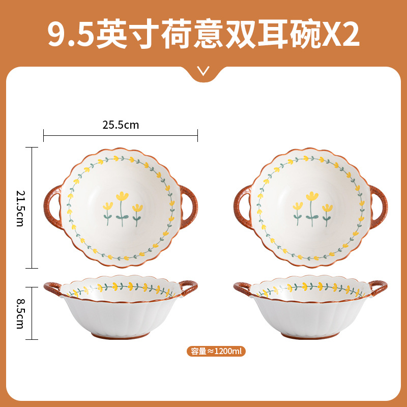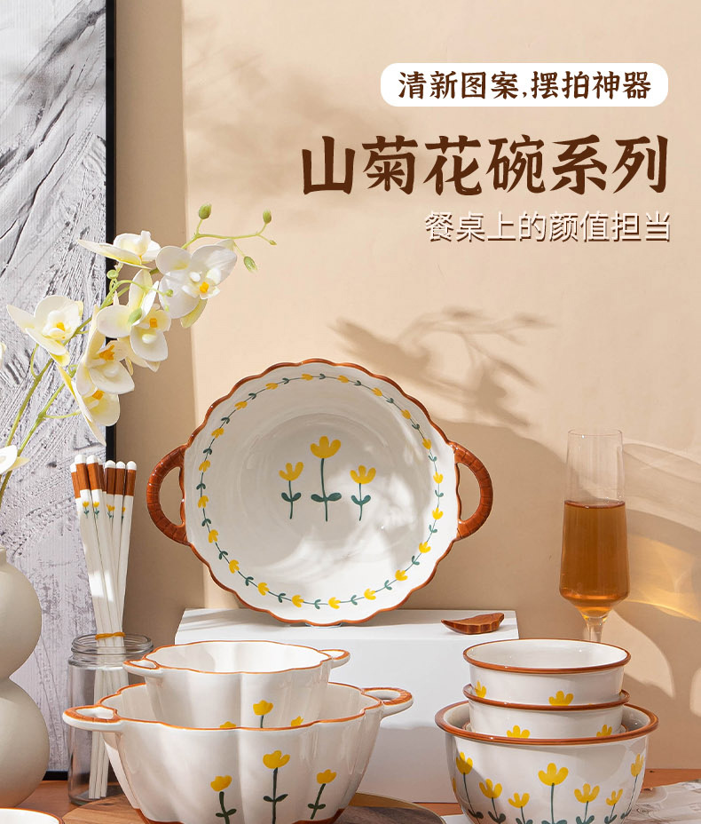 碗ins高颜值碗筷套装家用批发釉下彩陶瓷双耳碗米饭碗面碗汤碗