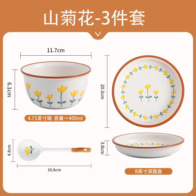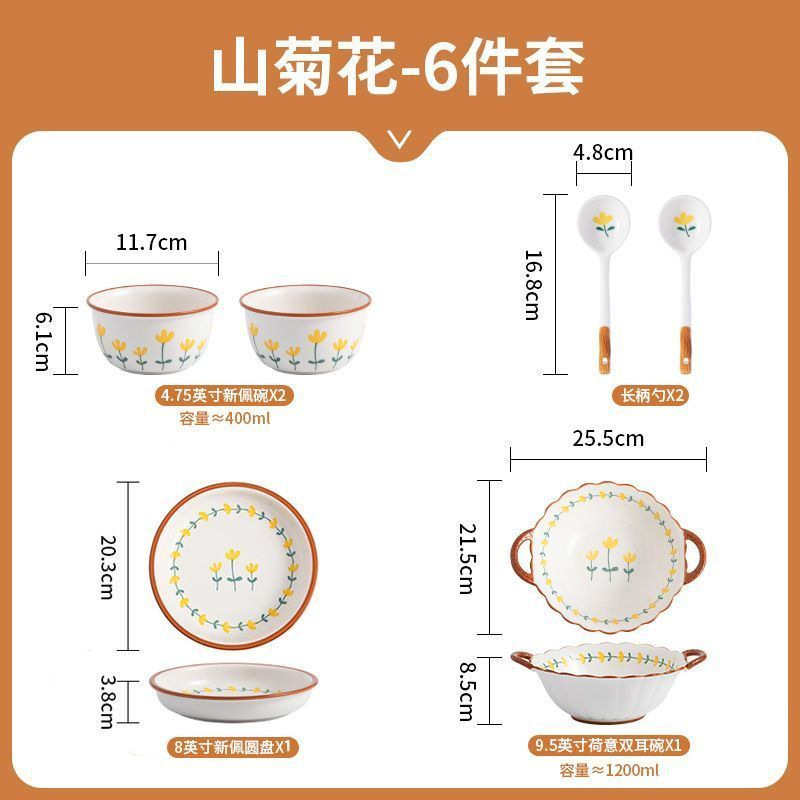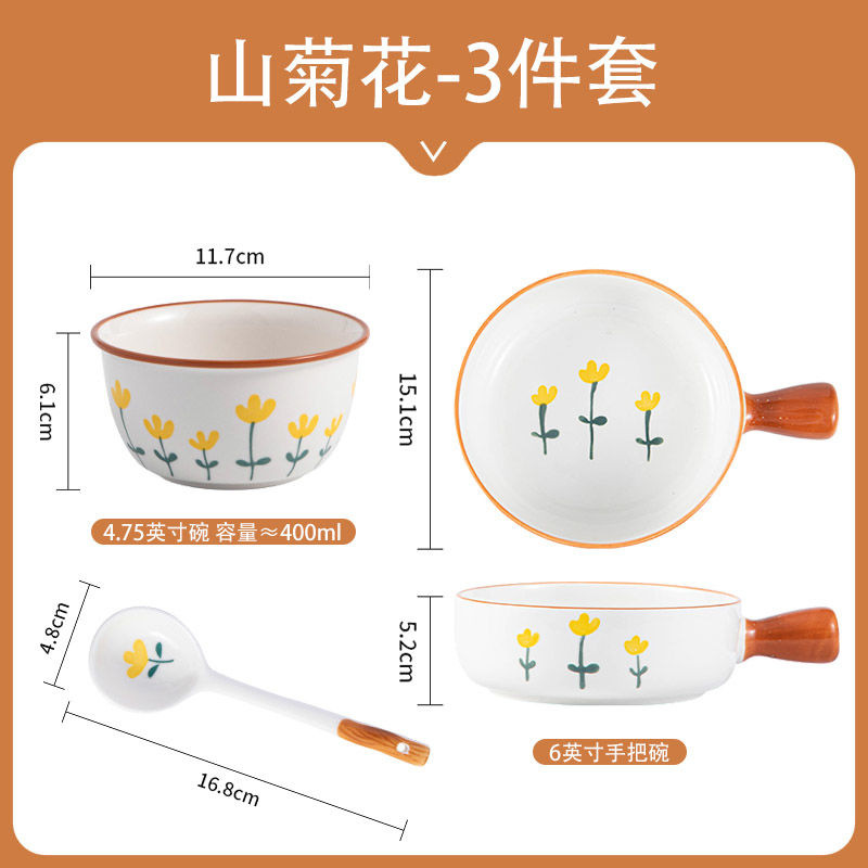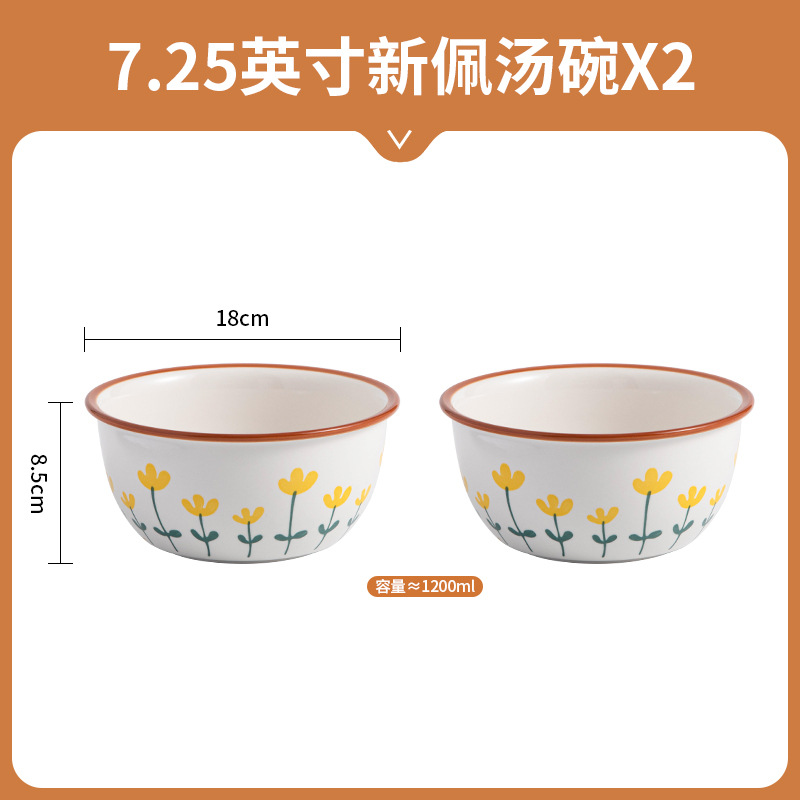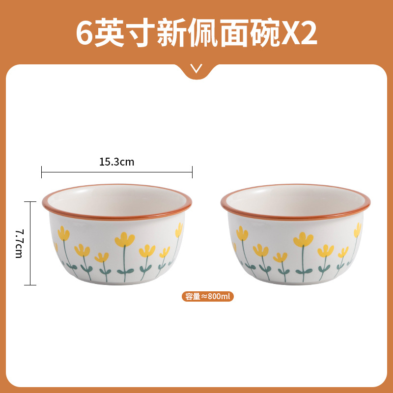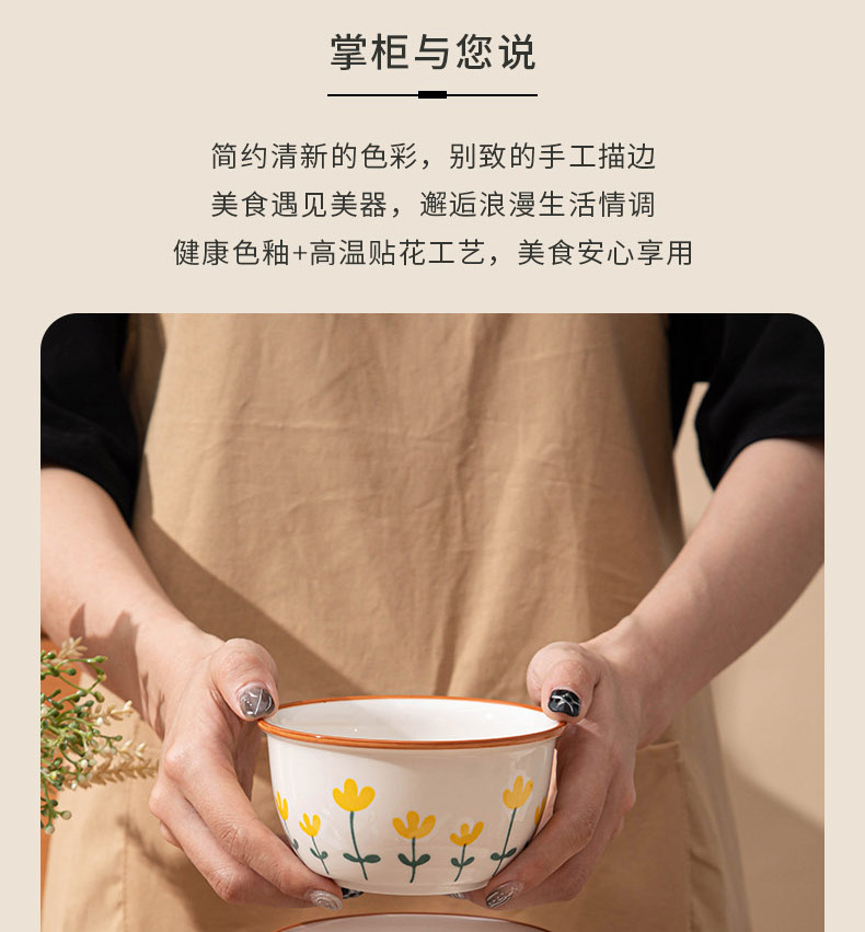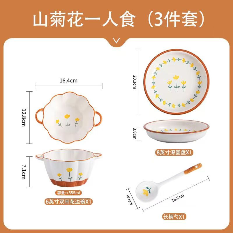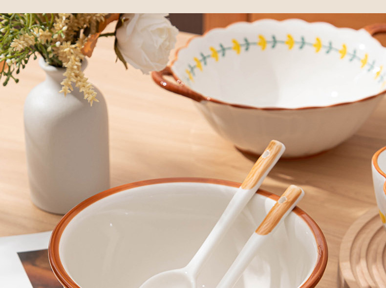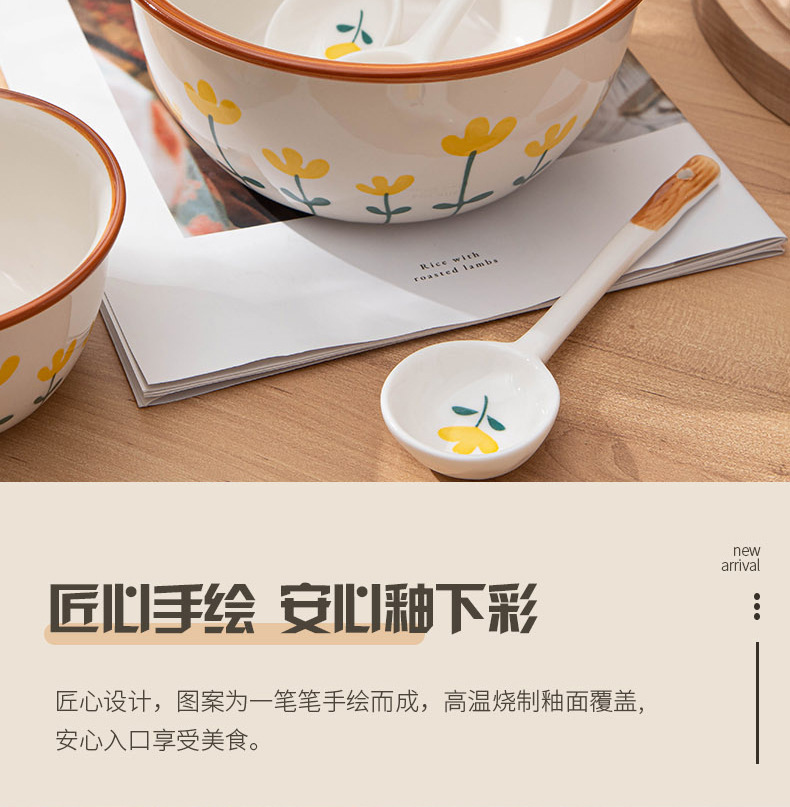 碗ins高颜值碗筷套装家用批发釉下彩陶瓷双耳碗米饭碗面碗汤碗