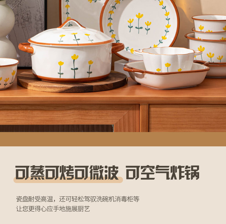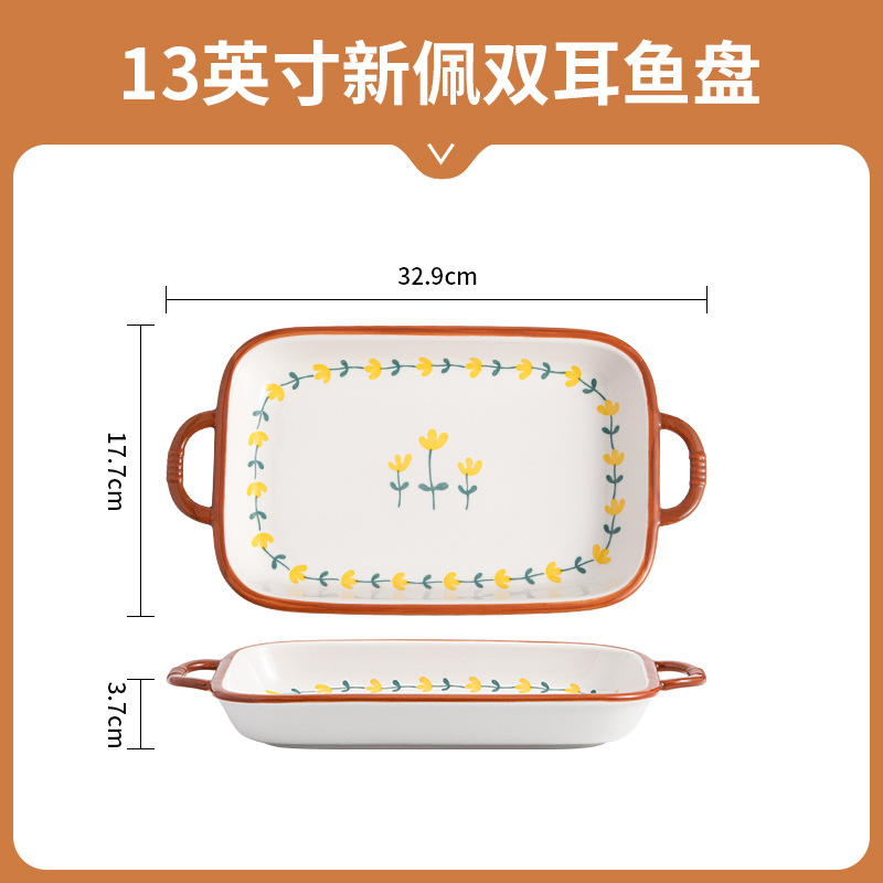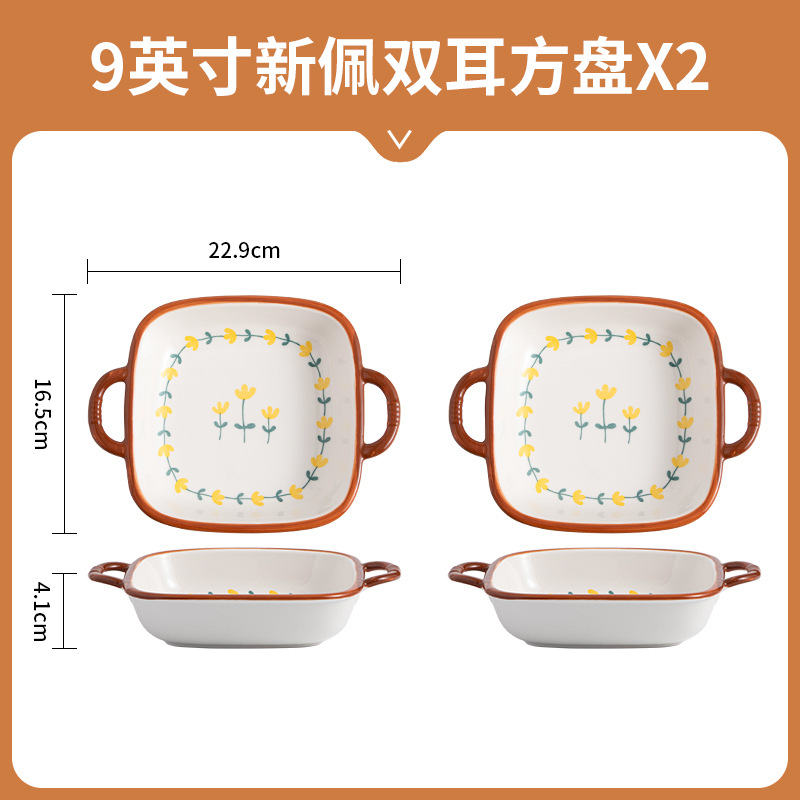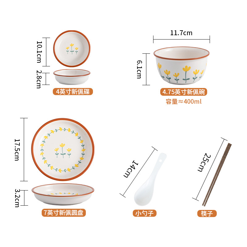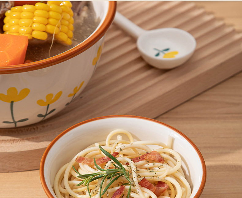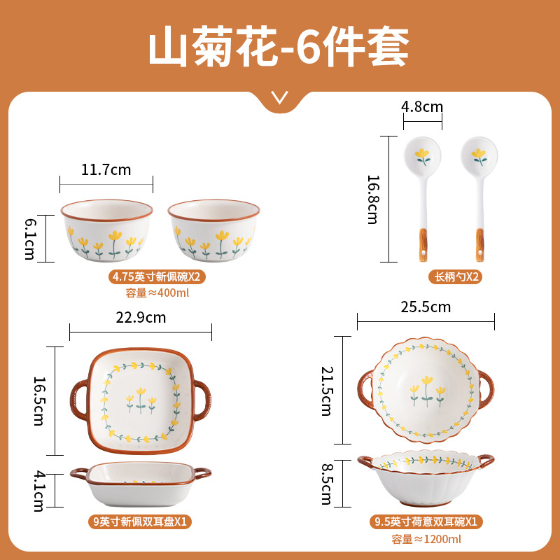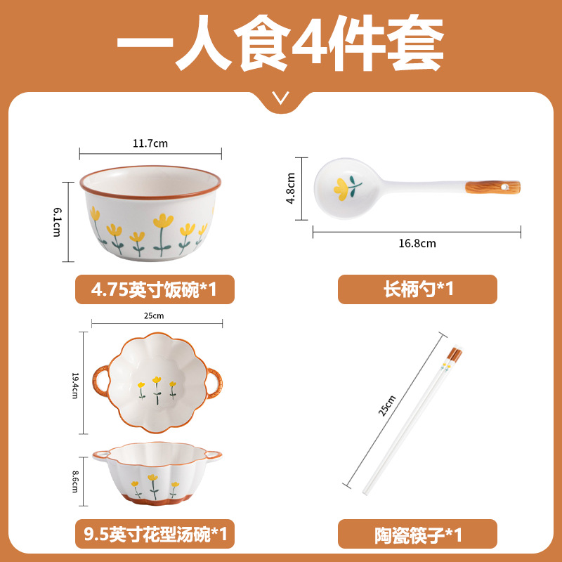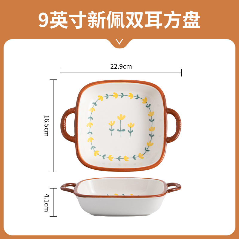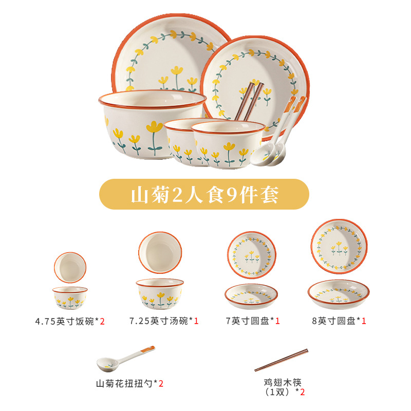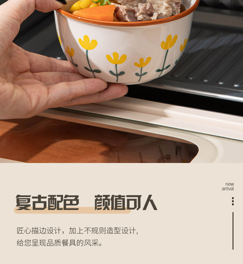 碗ins高颜值碗筷套装家用批发釉下彩陶瓷双耳碗米饭碗面碗汤碗