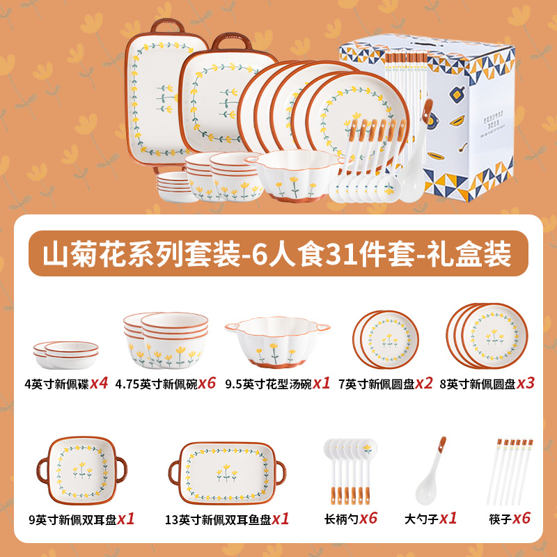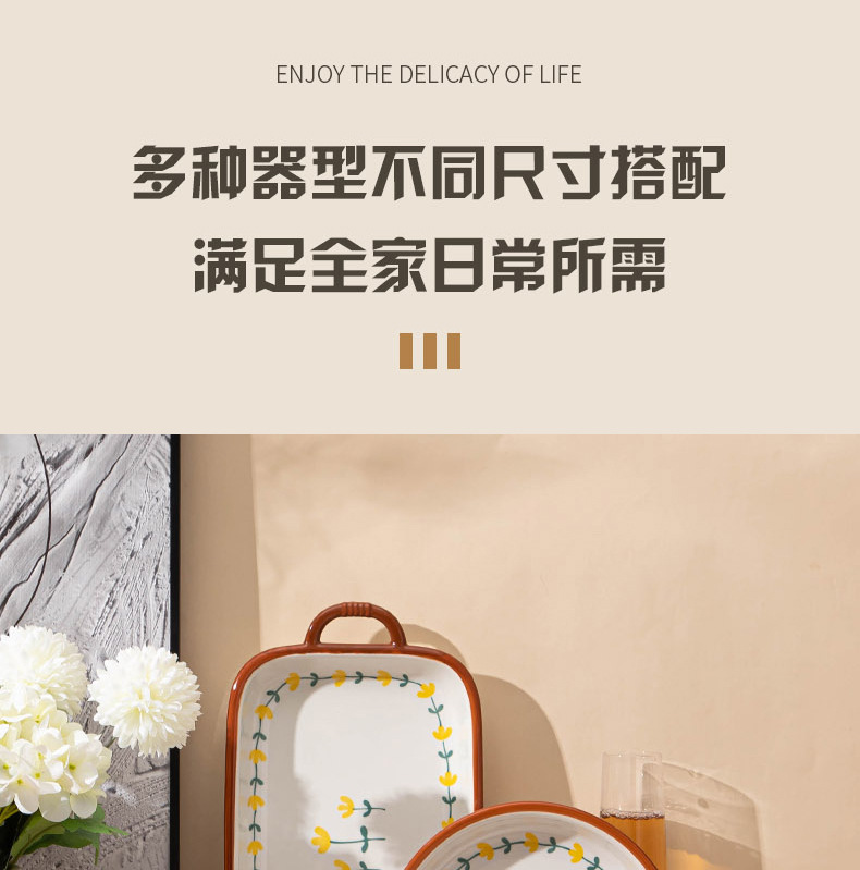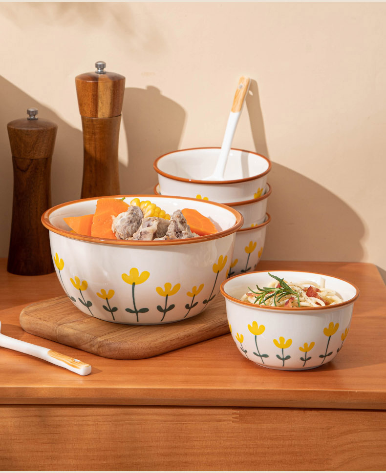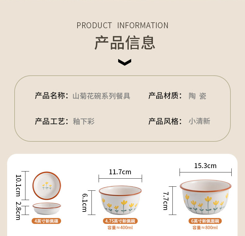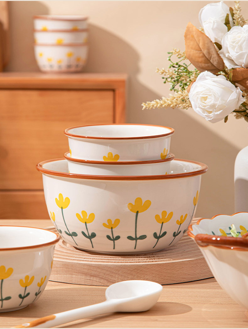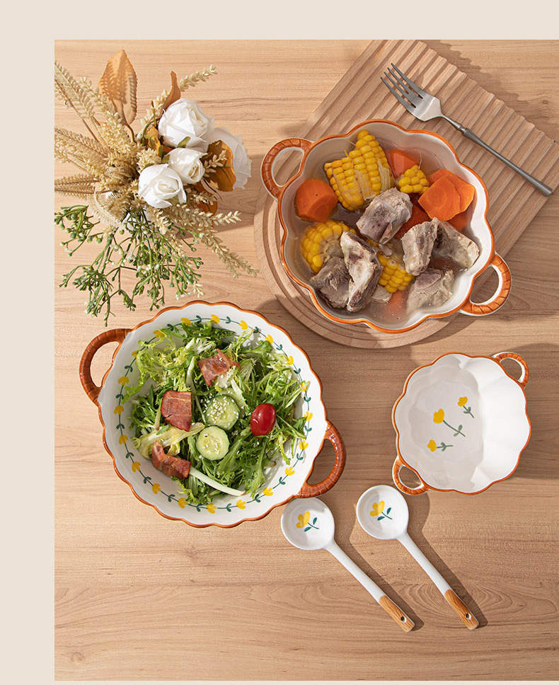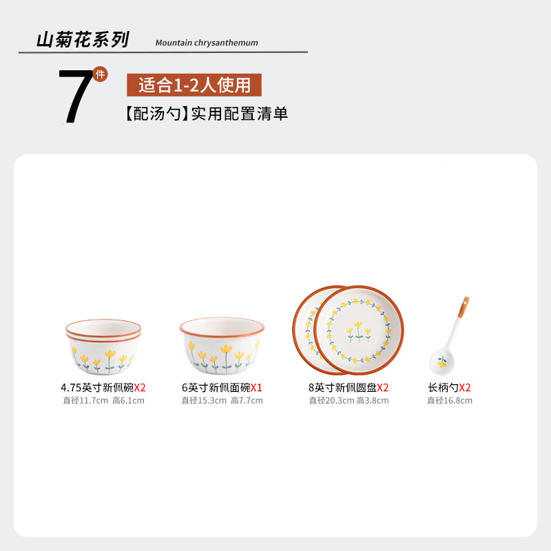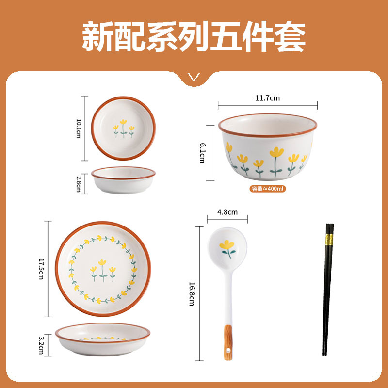 碗ins高颜值碗筷套装家用批发釉下彩陶瓷双耳碗米饭碗面碗汤碗