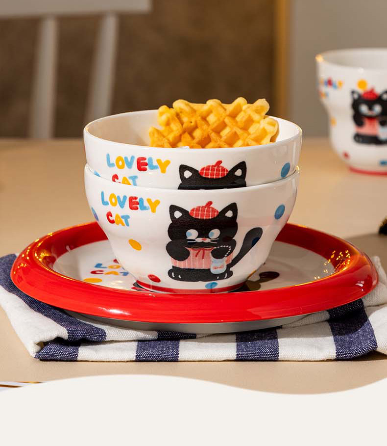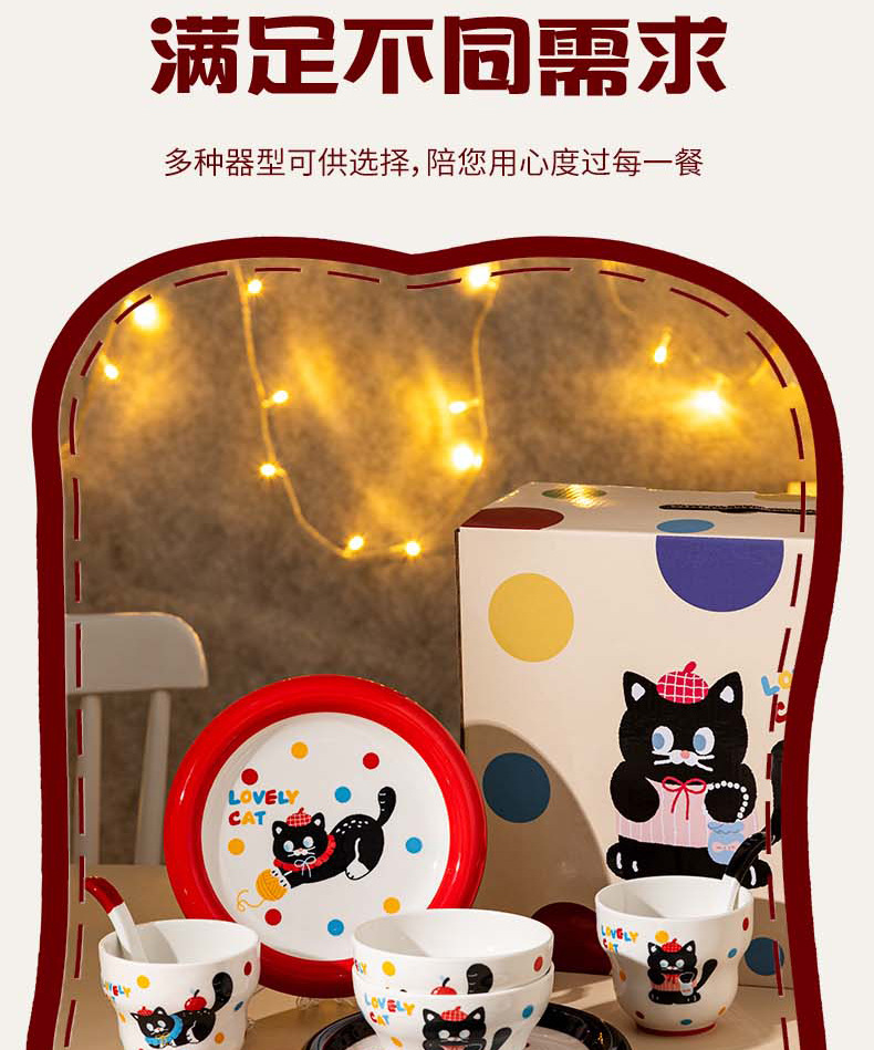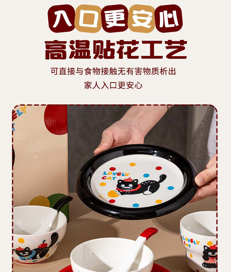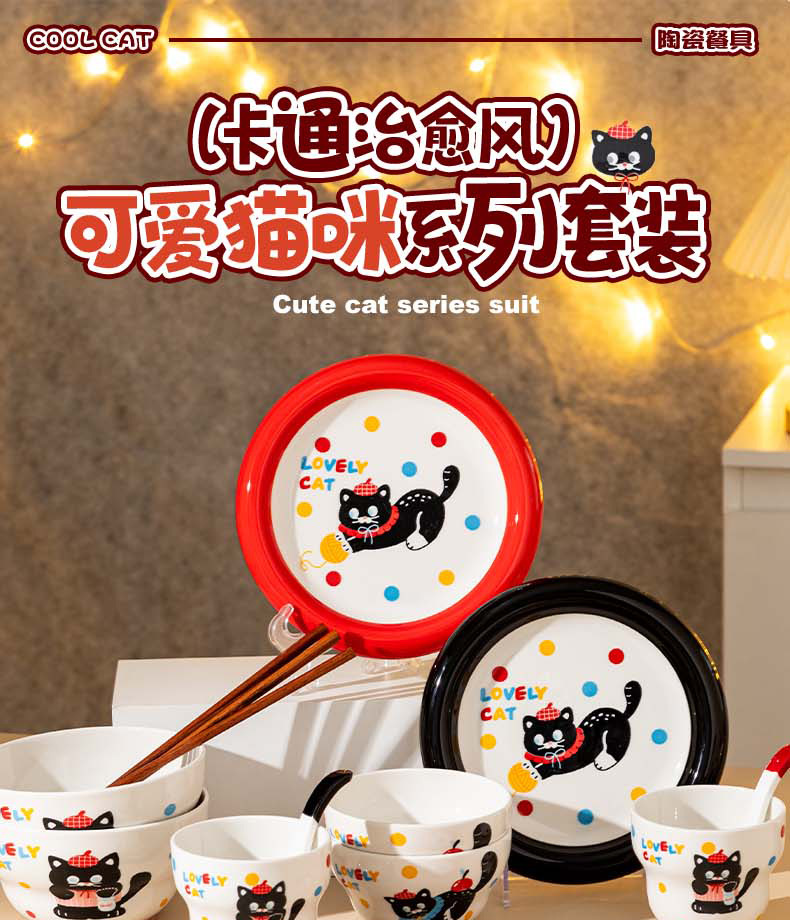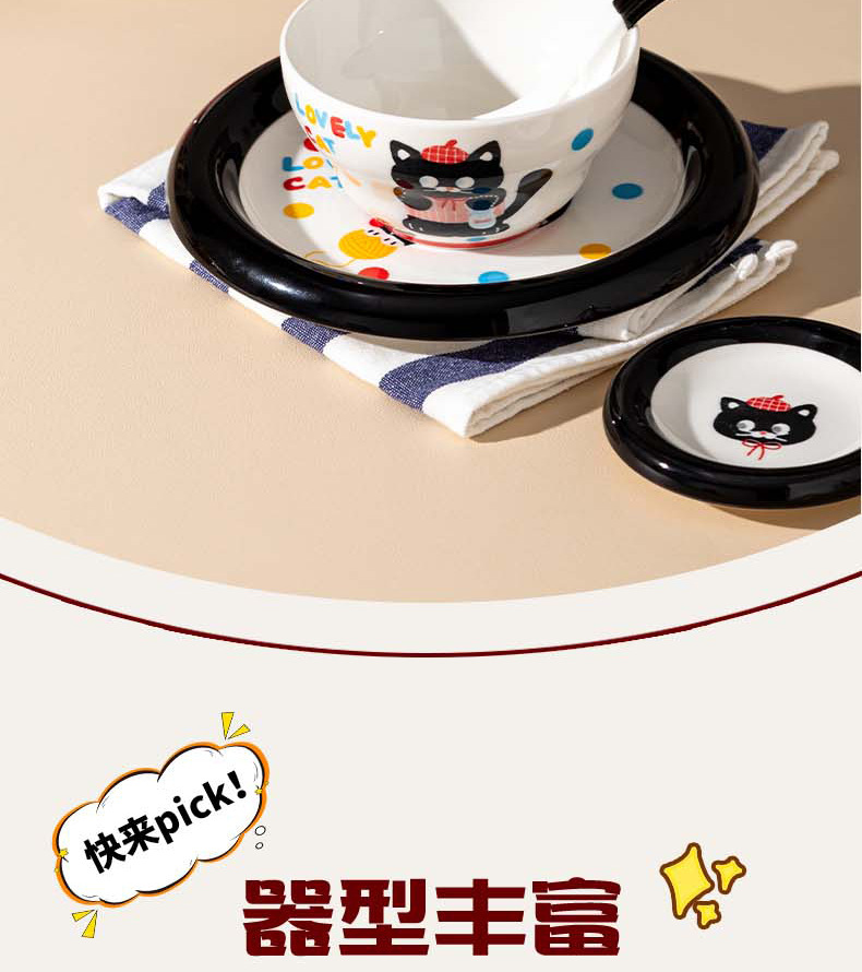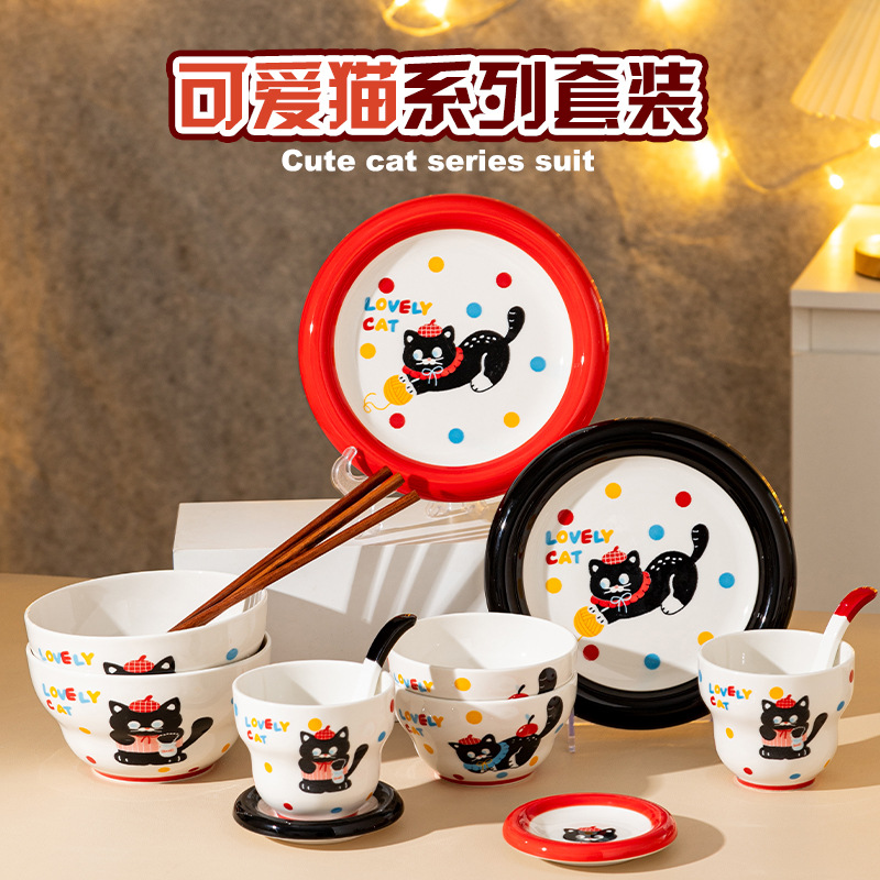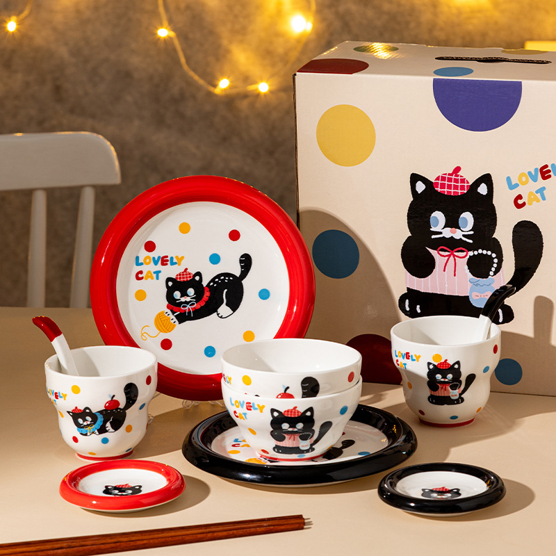 可爱猫咪碗碟套装组合陶瓷碗盘子萌趣高颜值喵星人陶瓷餐具礼盒装