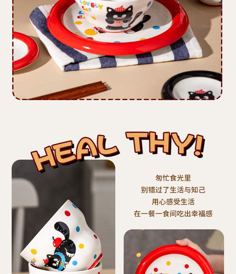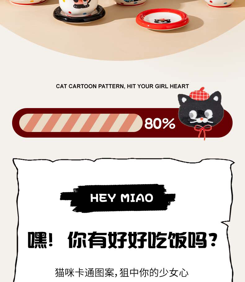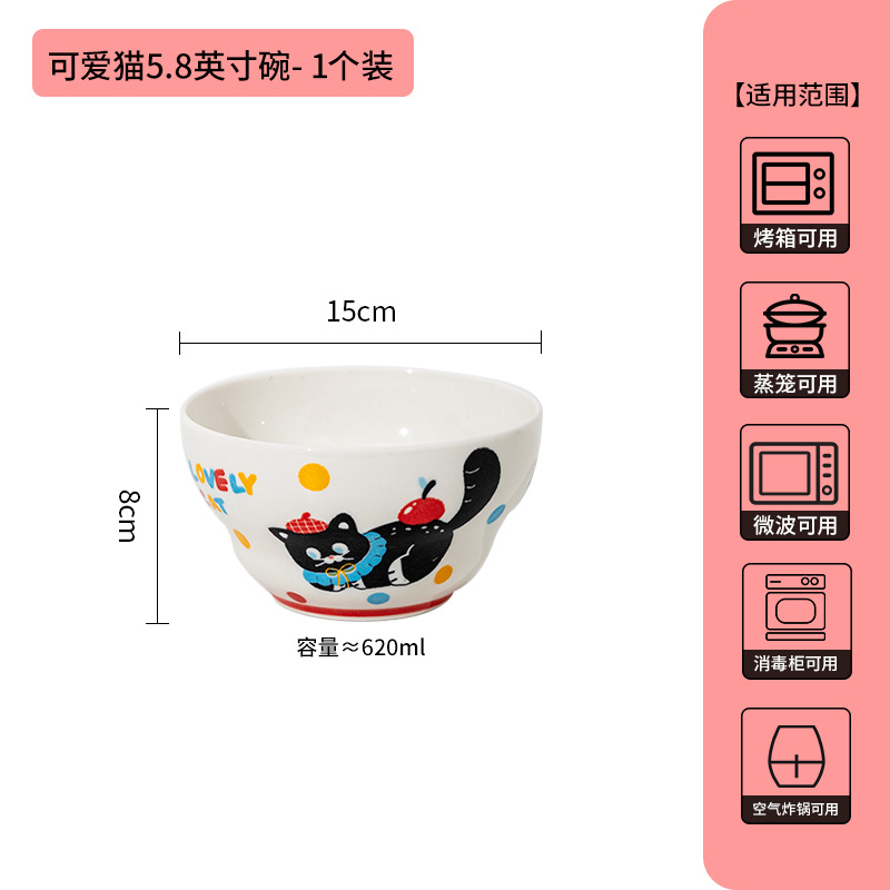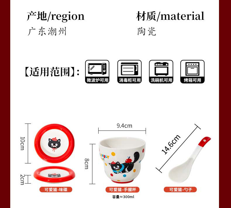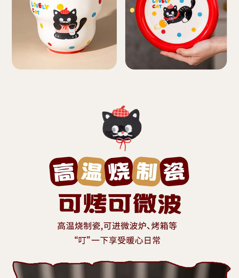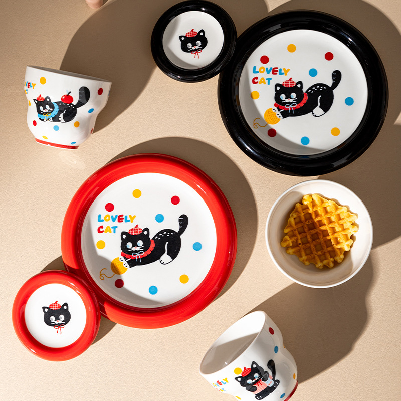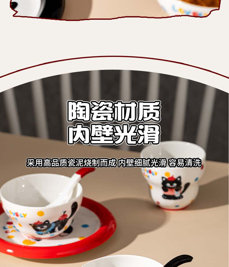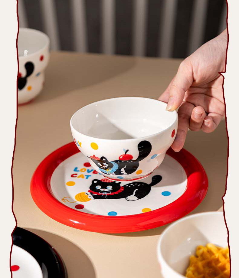 可爱猫咪碗碟套装组合陶瓷碗盘子萌趣高颜值喵星人陶瓷餐具礼盒装