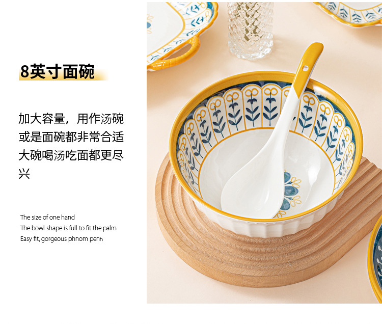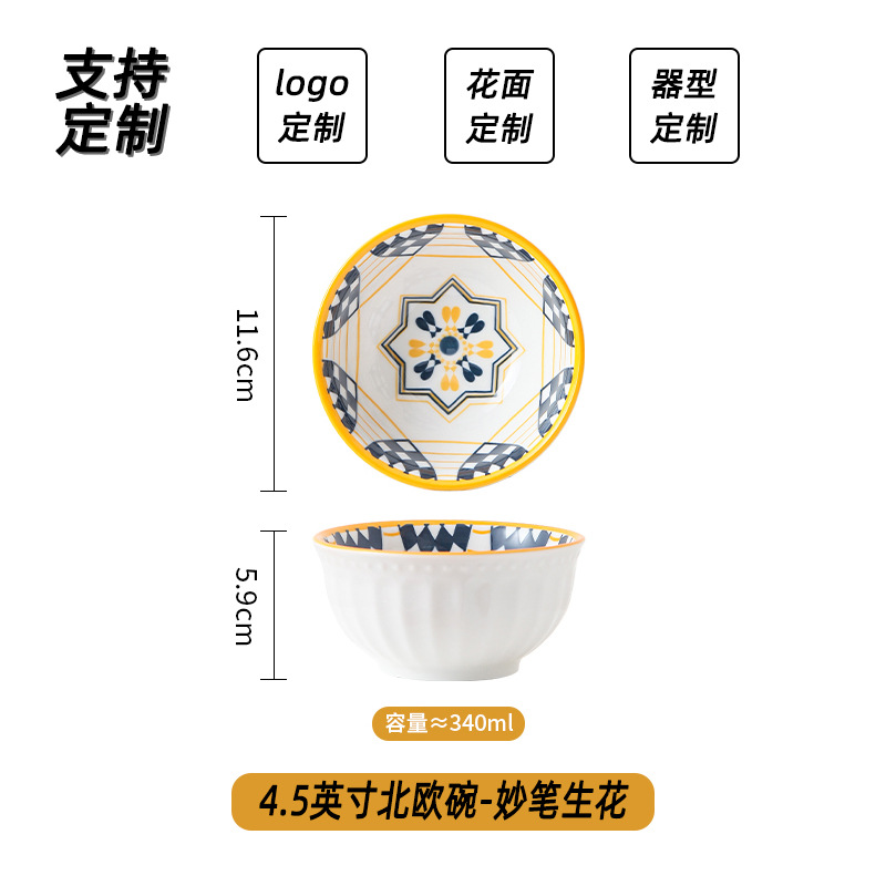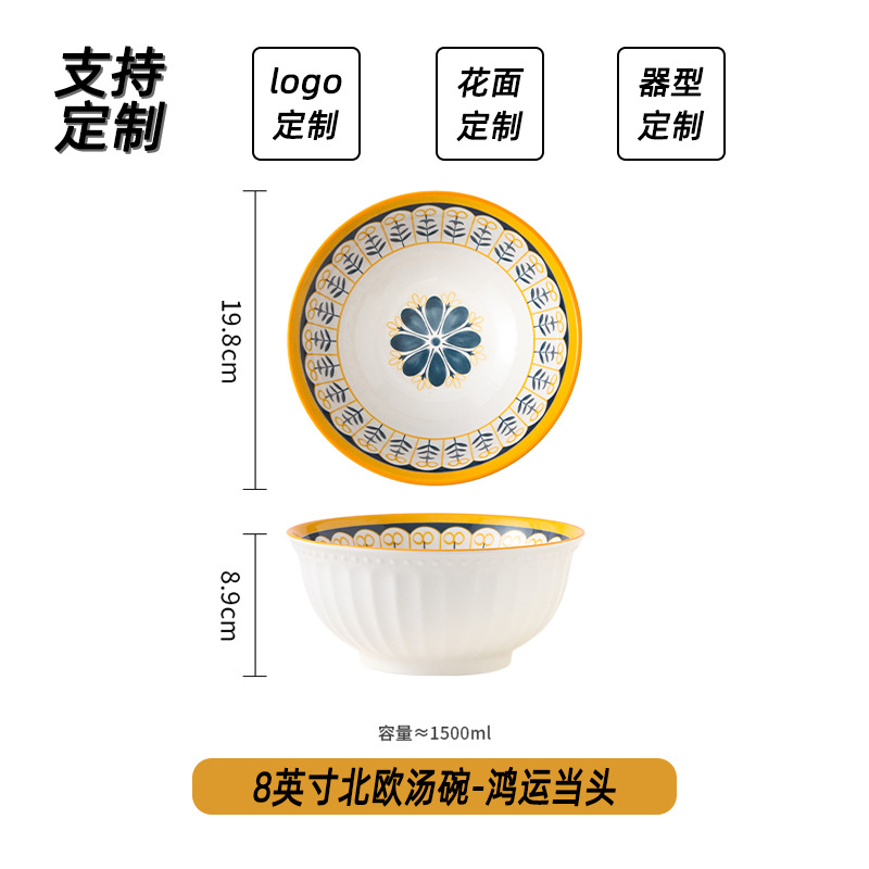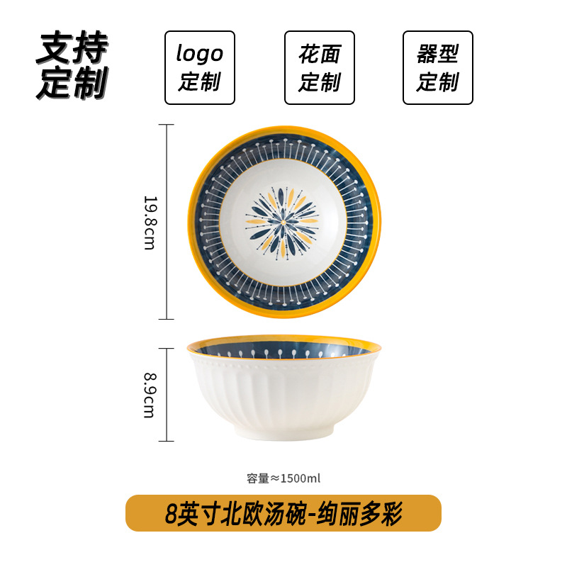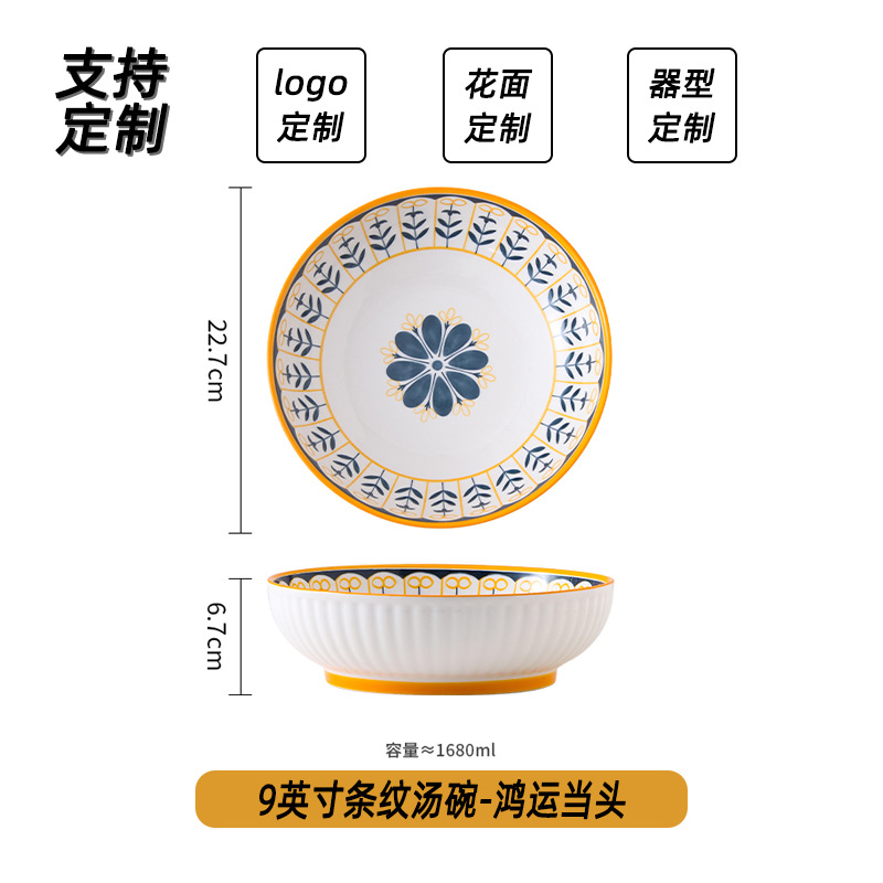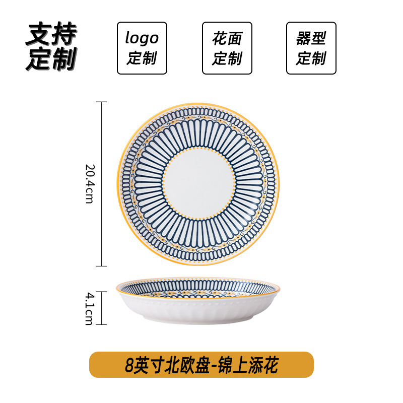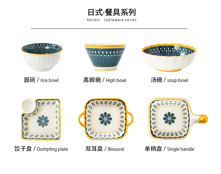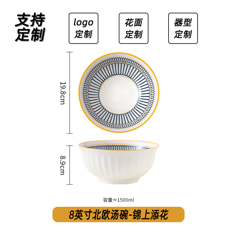 可定制日式北欧风格餐具陶瓷碗碟盘家用釉下彩汤碗饭碗陶瓷碗汤盘