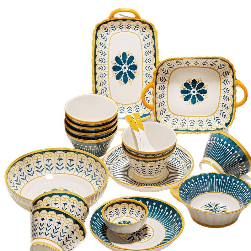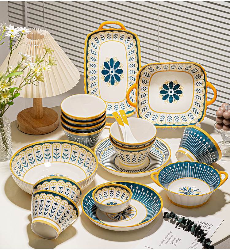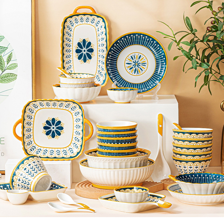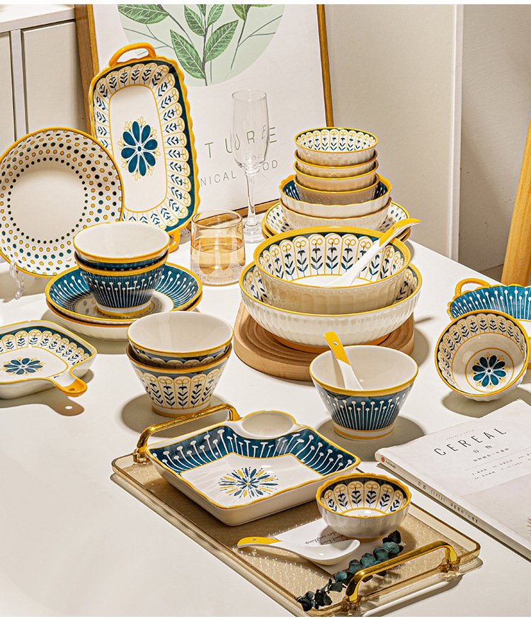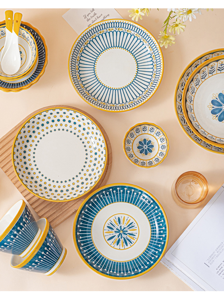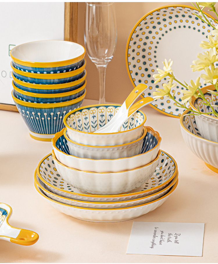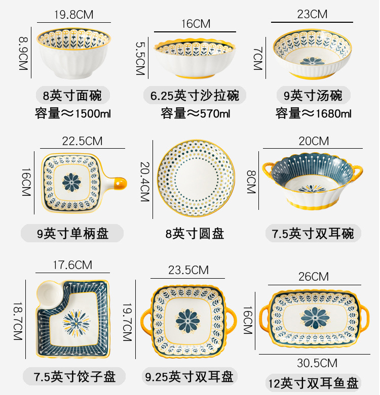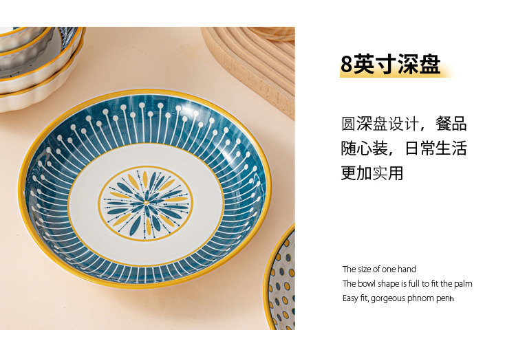 可定制日式北欧风格餐具陶瓷碗碟盘家用釉下彩汤碗饭碗陶瓷碗汤盘