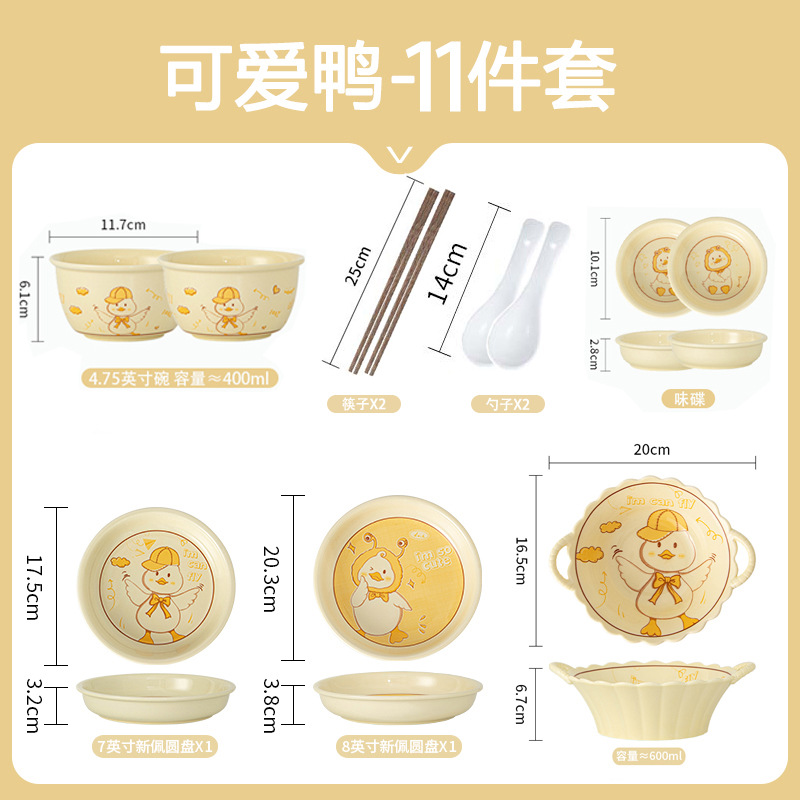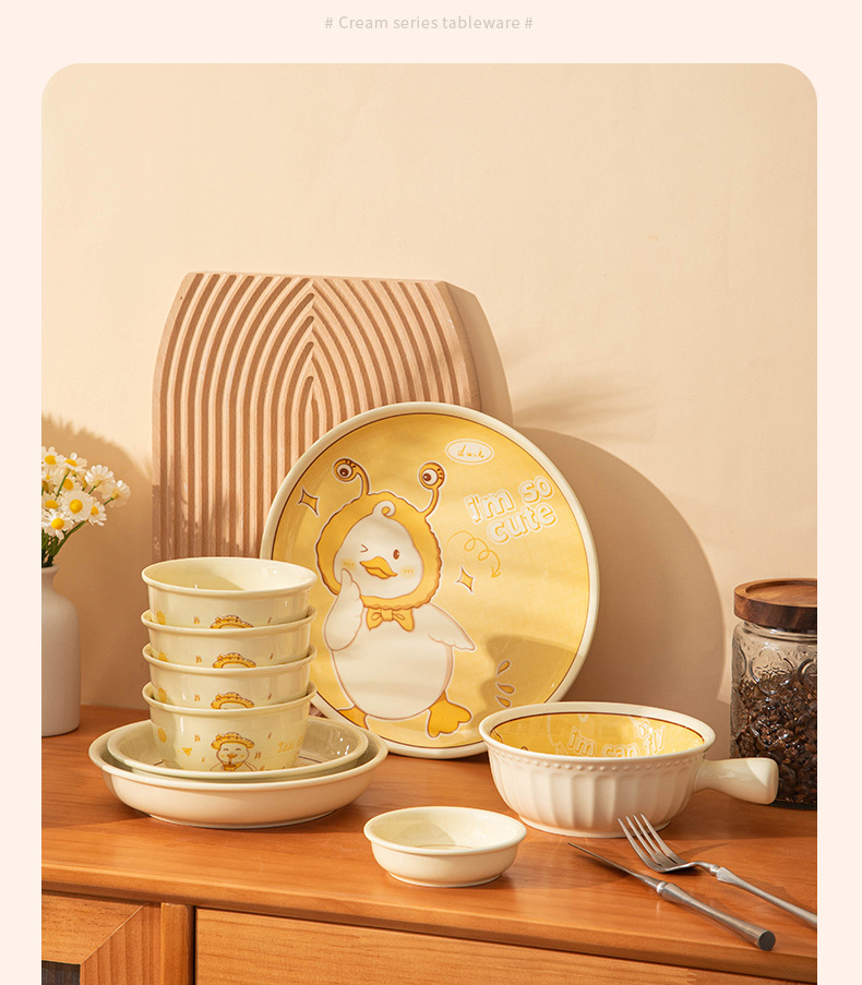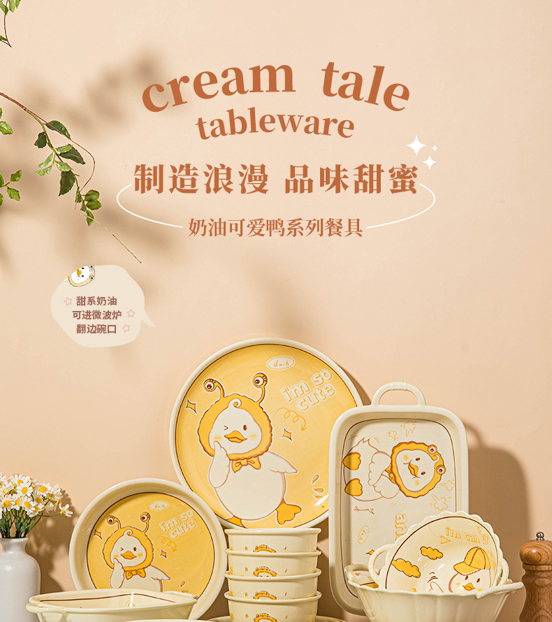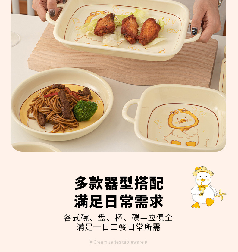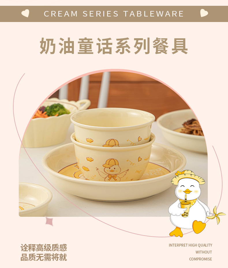 碗ins高颜值可爱鸭奶油风釉下彩陶瓷餐具批发碗具套装碗碟套装