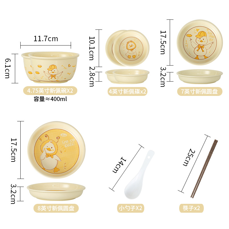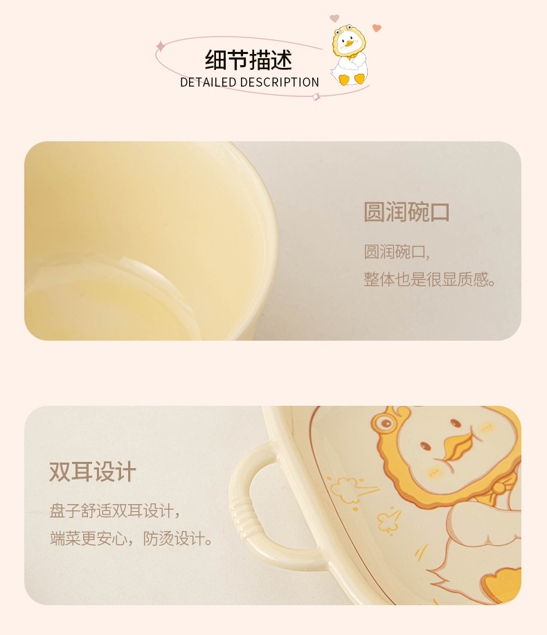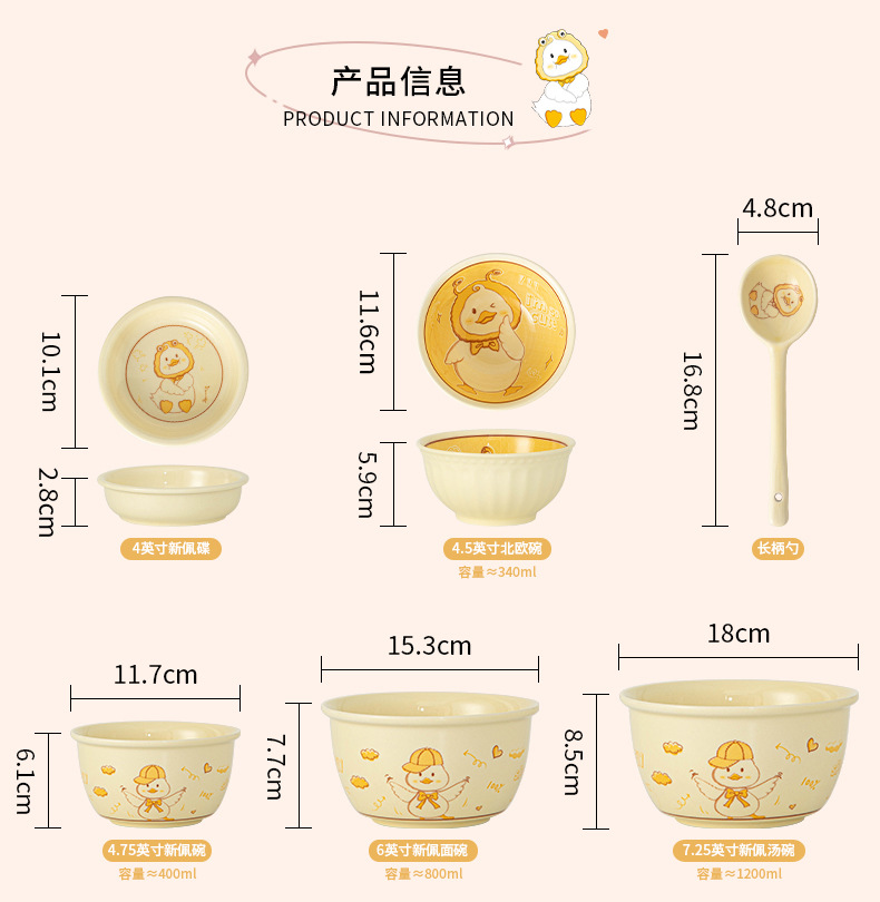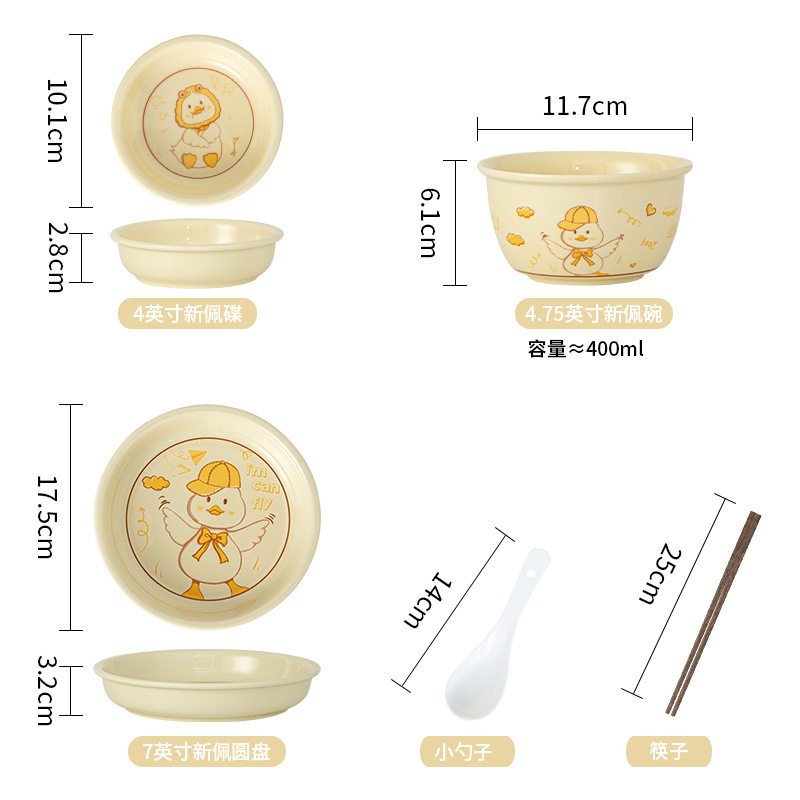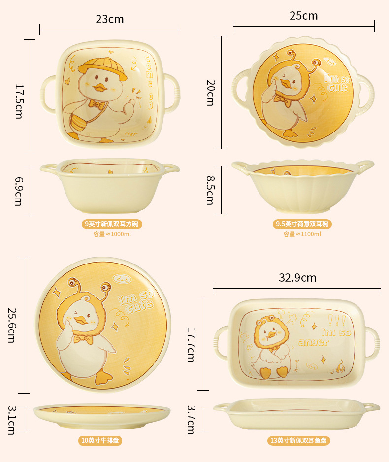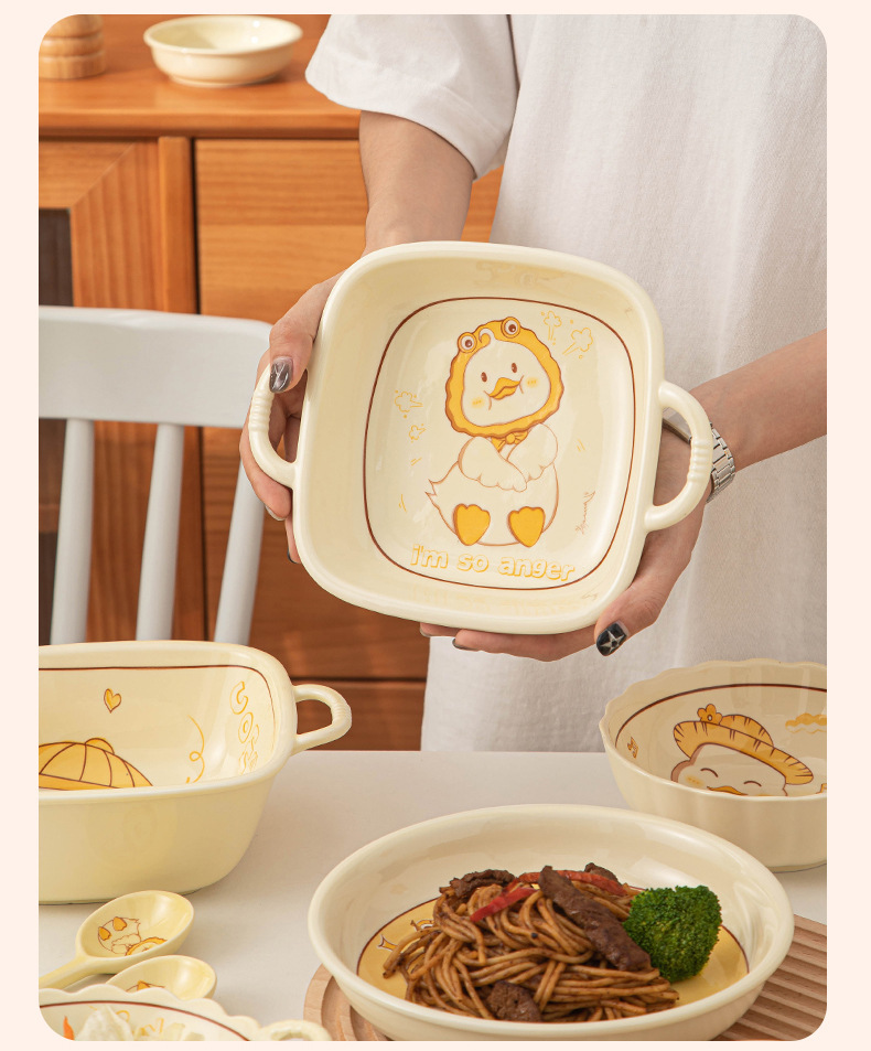 碗ins高颜值可爱鸭奶油风釉下彩陶瓷餐具批发碗具套装碗碟套装