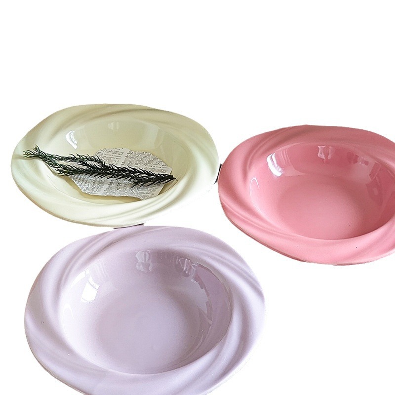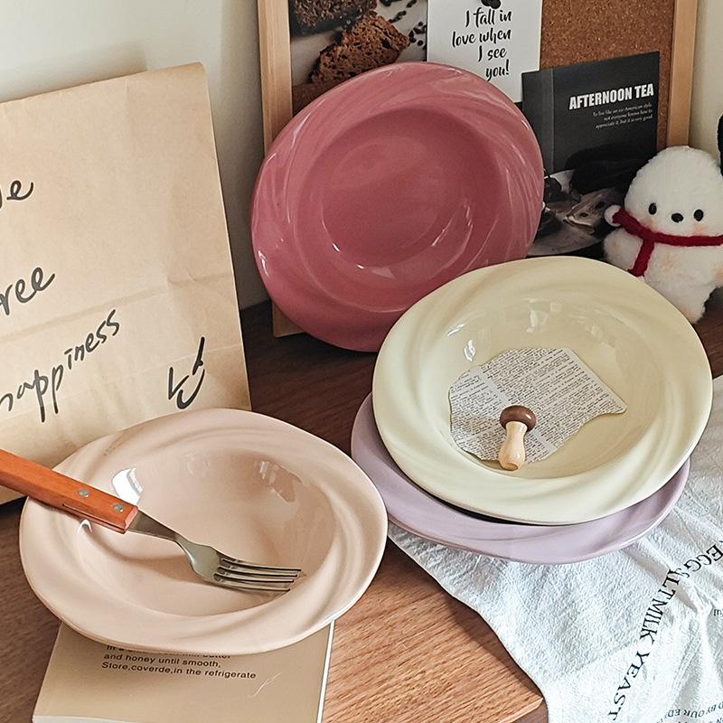 奶油风高颜值陶瓷盘子家用批发 餐厅西餐盘草帽盘菜盘意面盘子