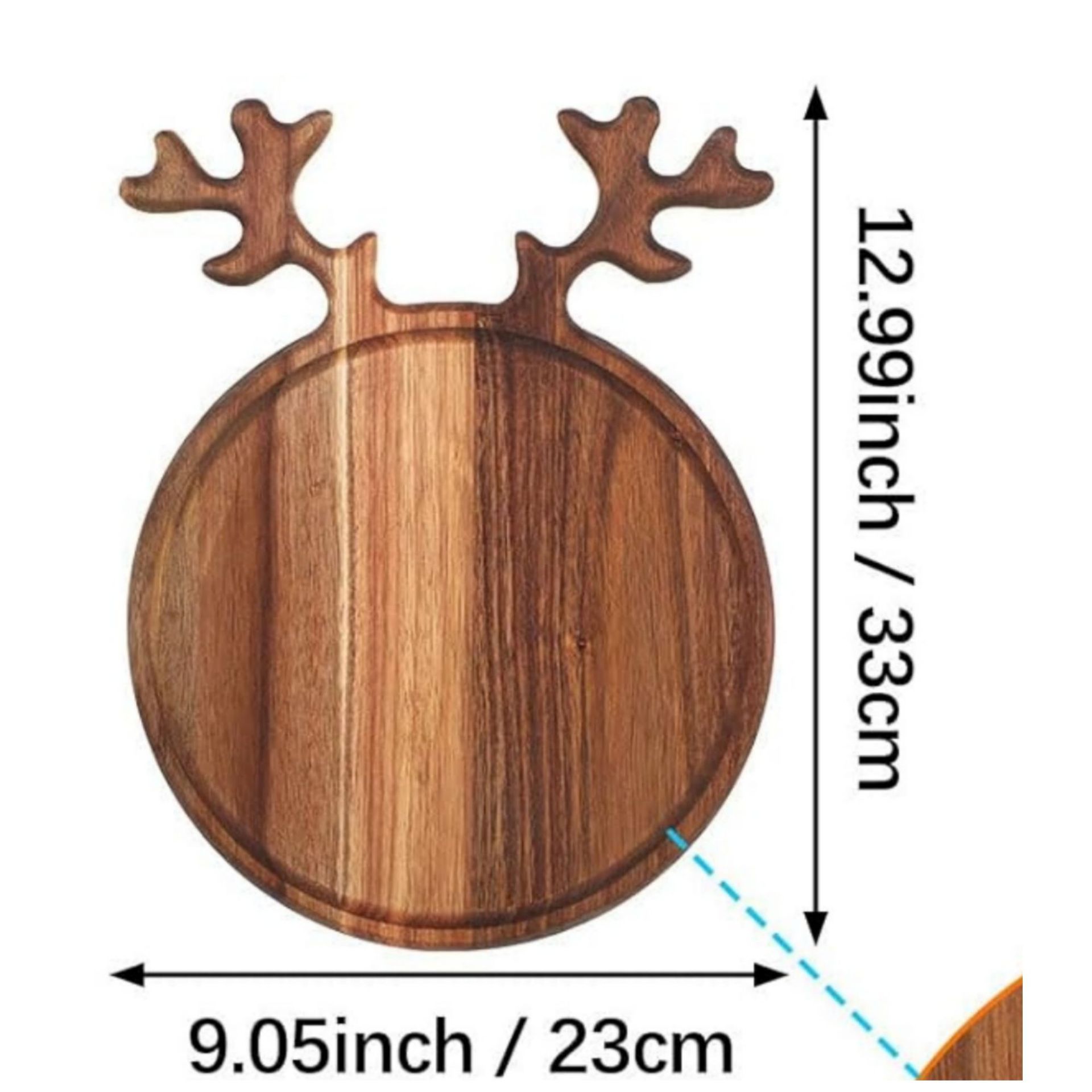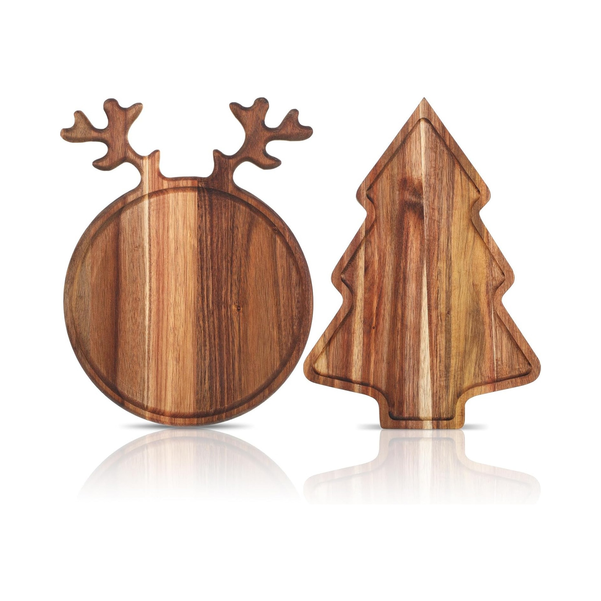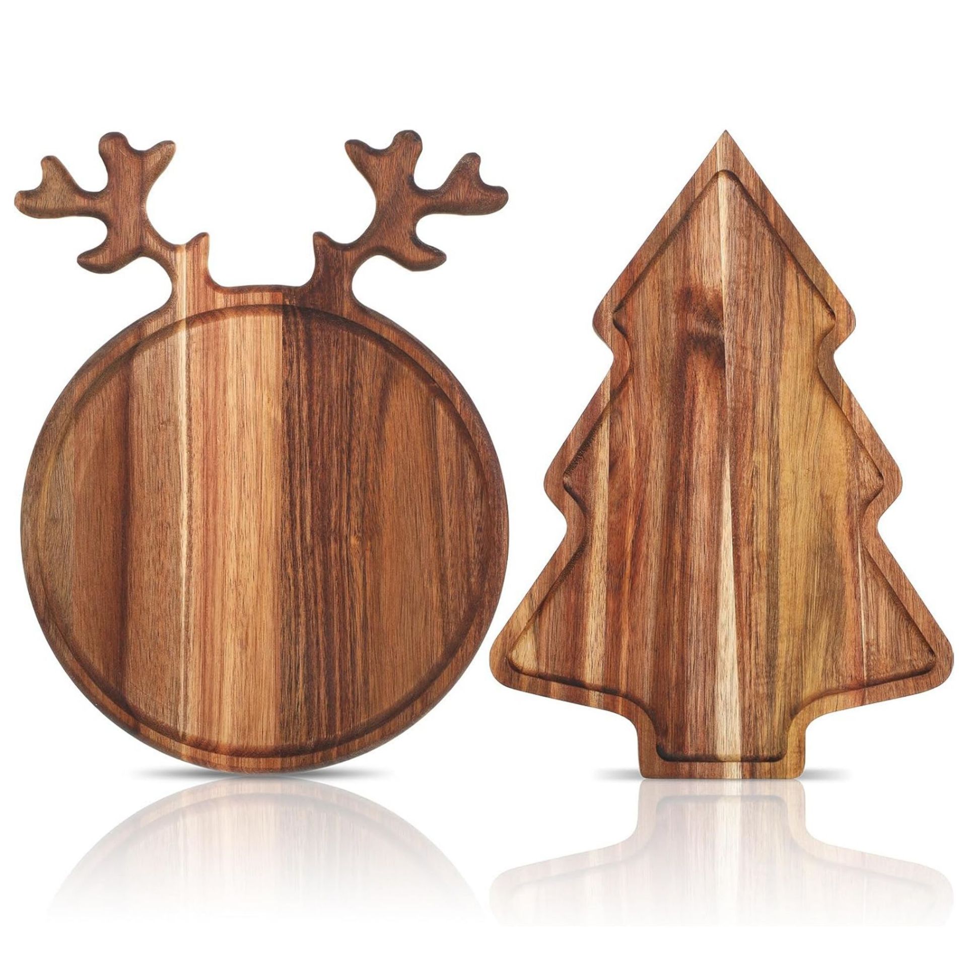 2件套圣诞芝士板圣诞树木质托盘鹿角相思木奶酪板水果零食点心盘