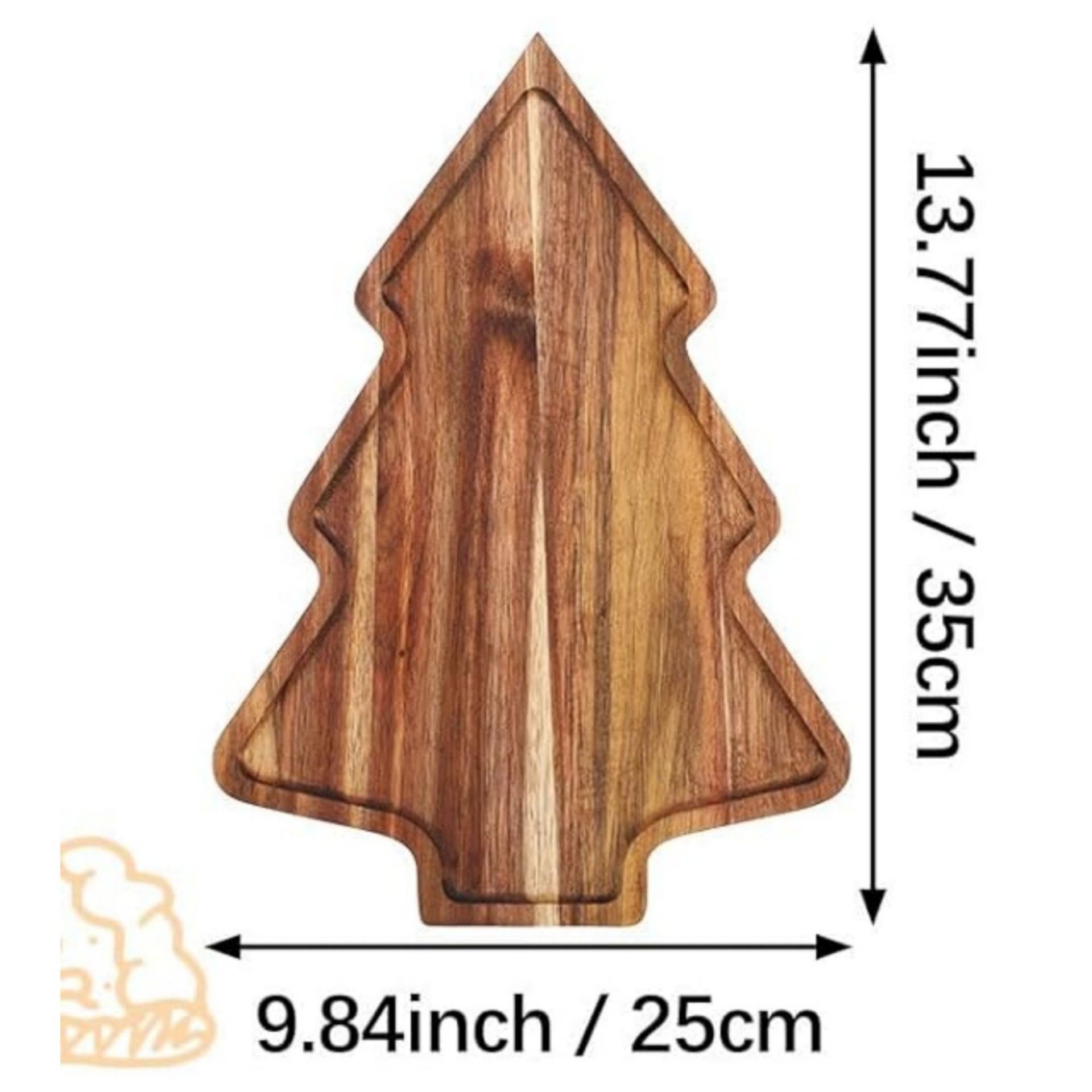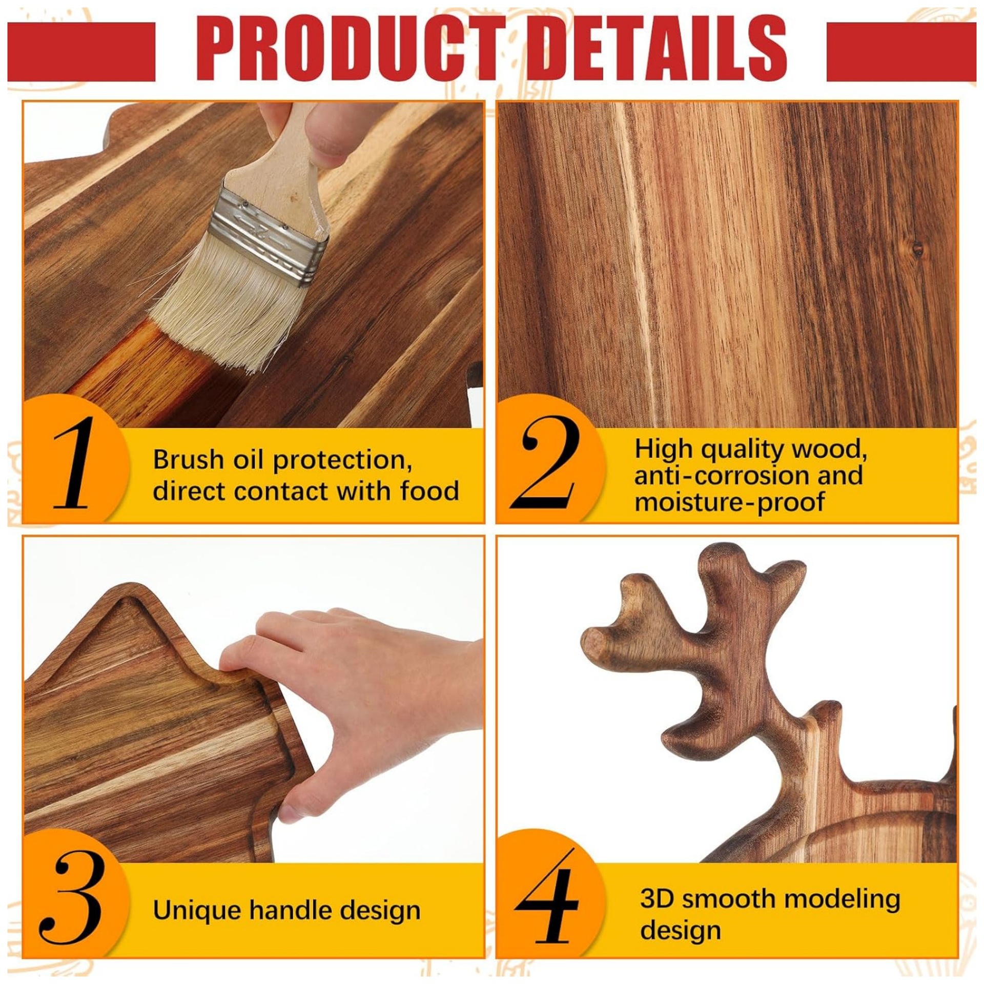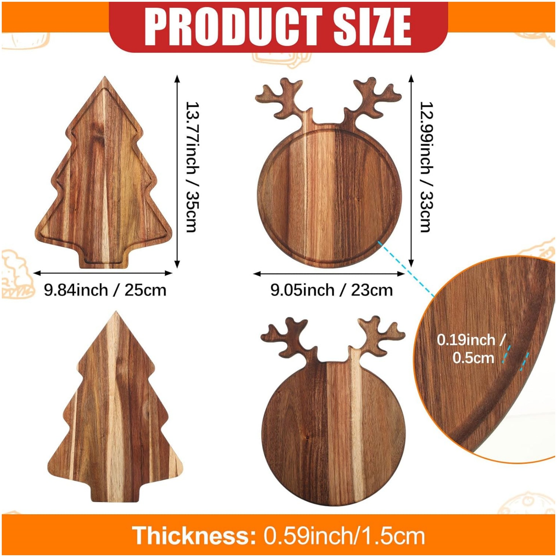 2件套圣诞芝士板圣诞树木质托盘鹿角相思木奶酪板水果零食点心盘
