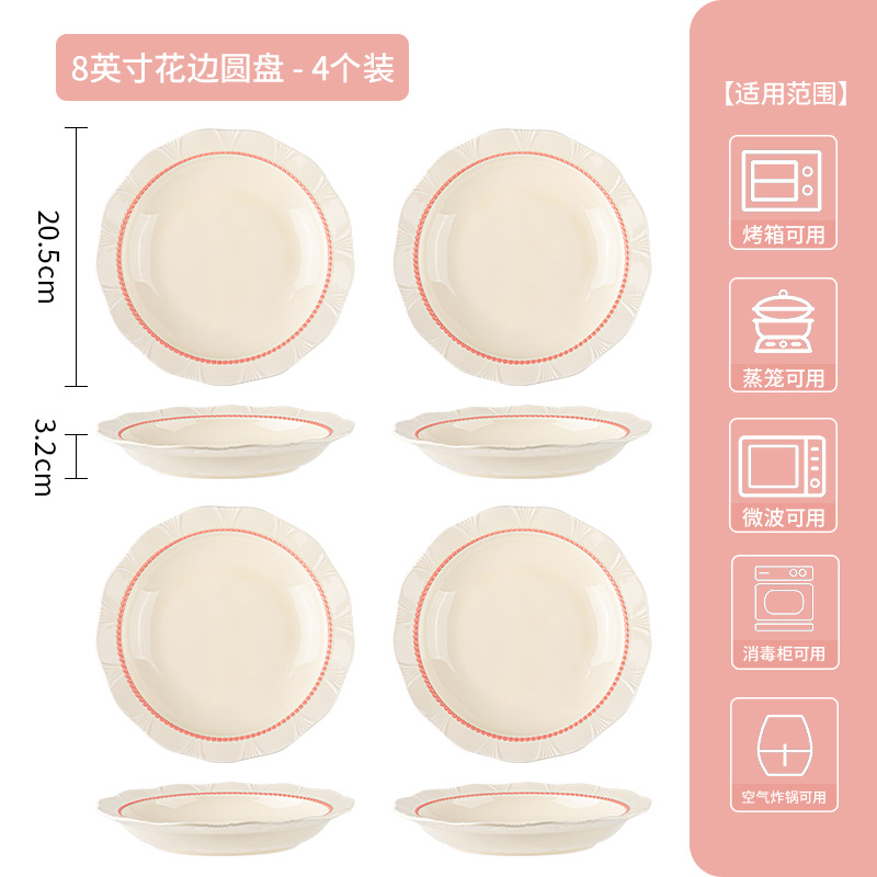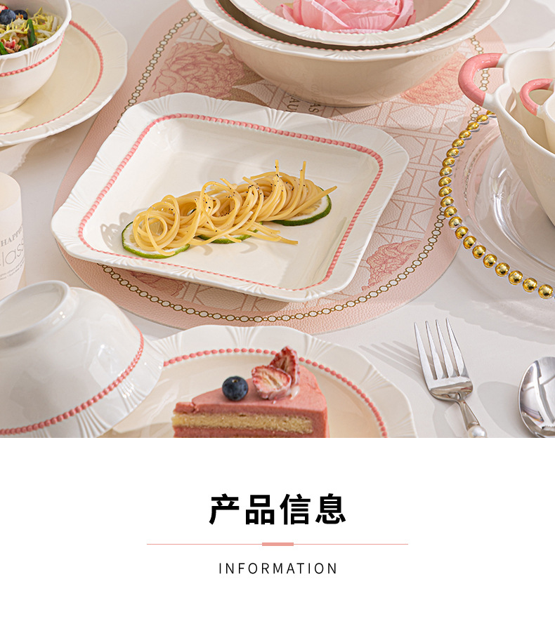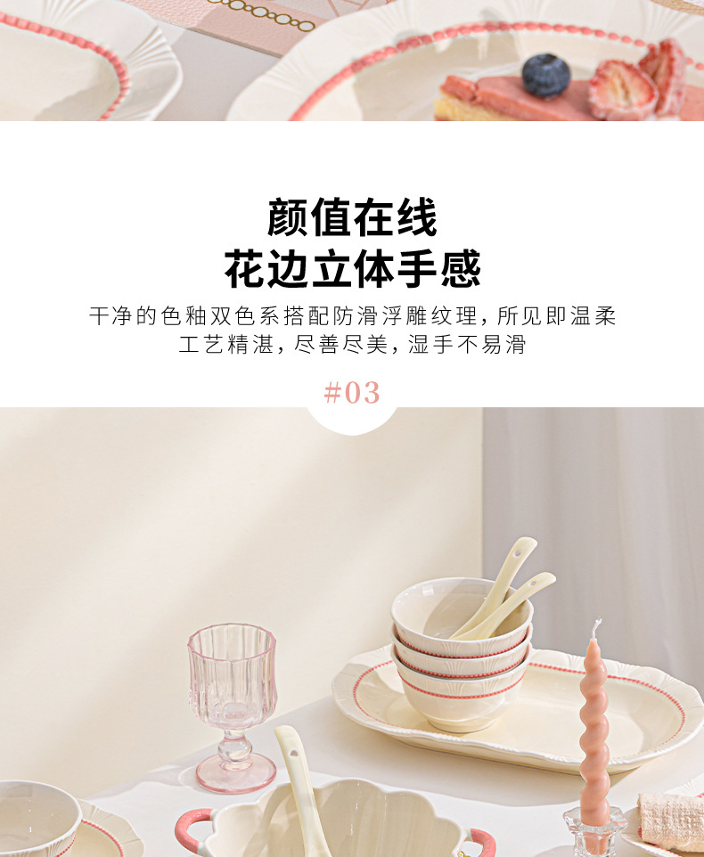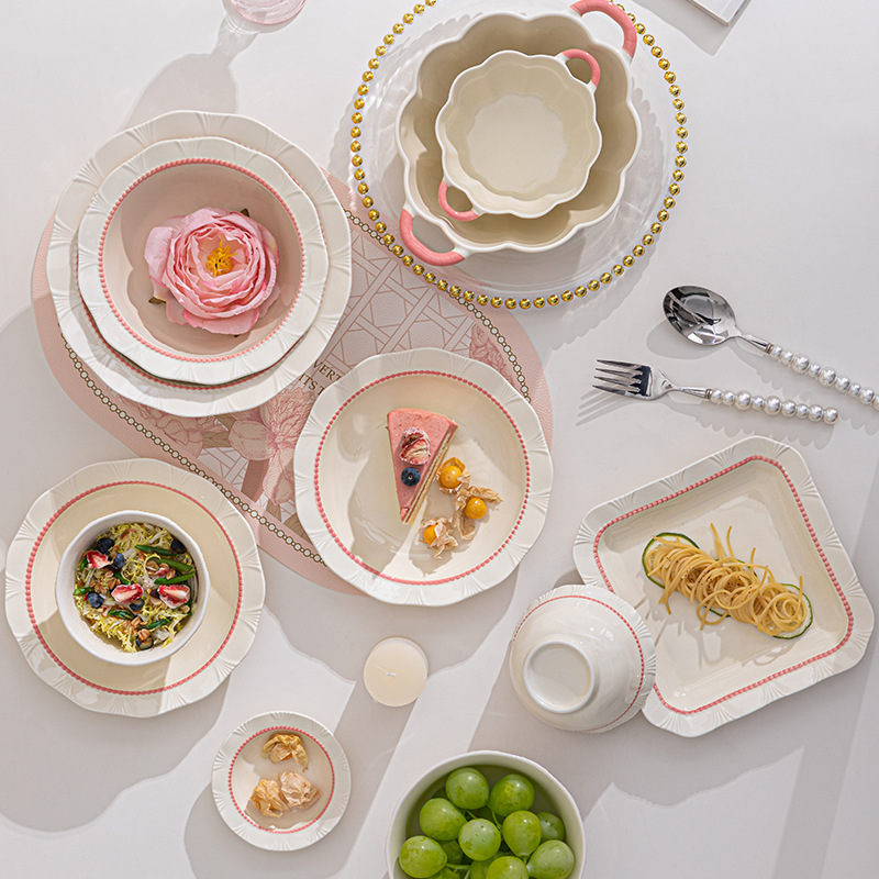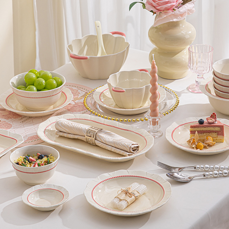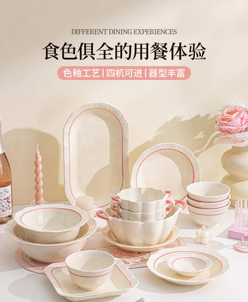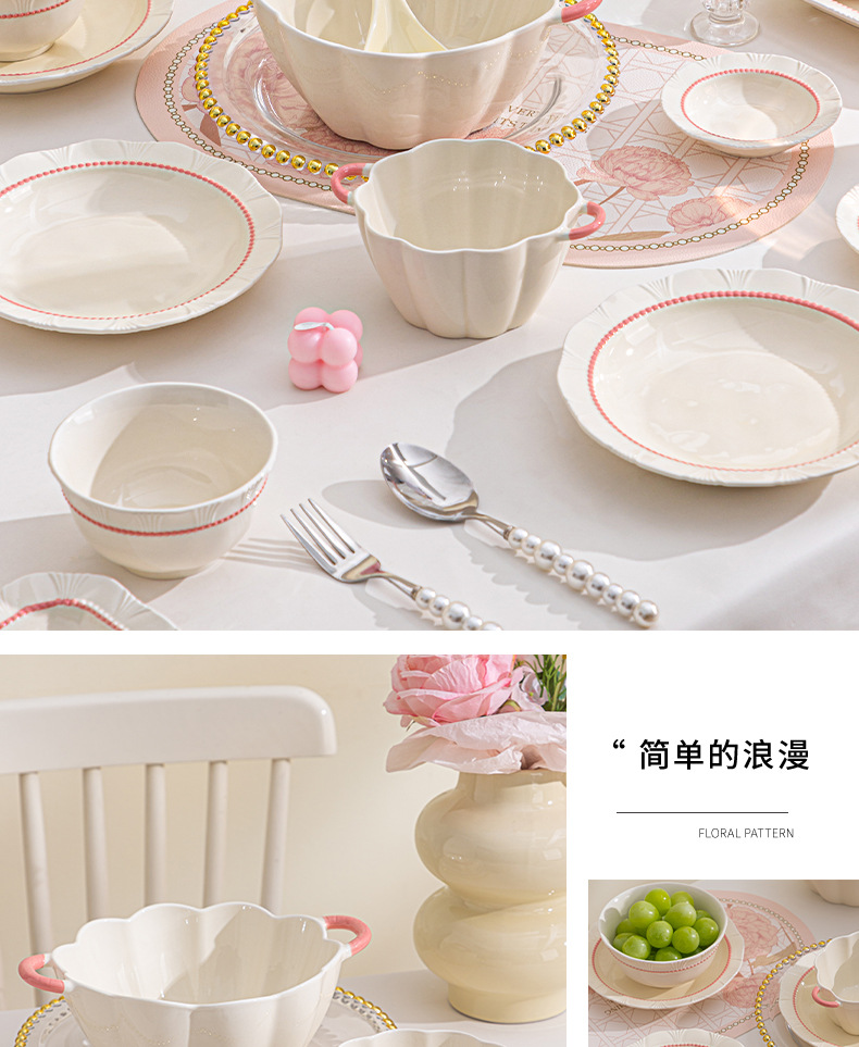 法式奶油风碗碟套装家用餐具套装高颜值釉下彩陶瓷碗盘子汤碗鱼盘
