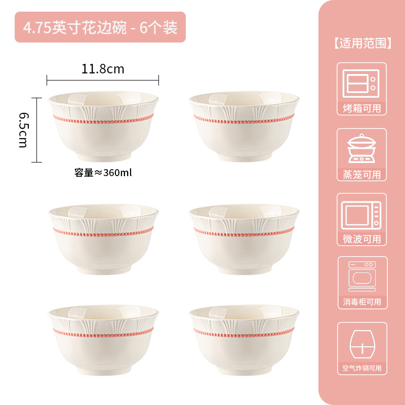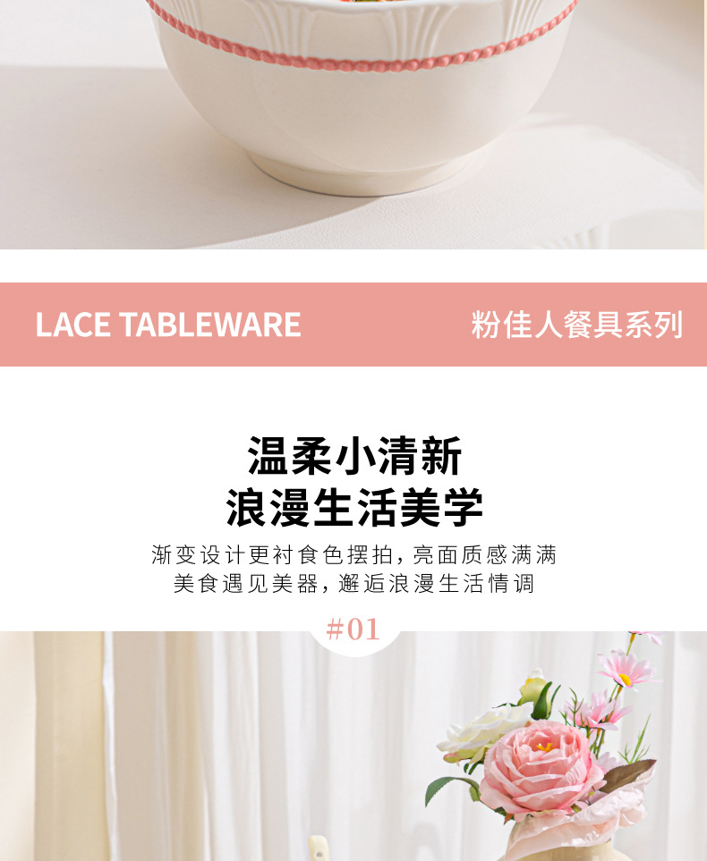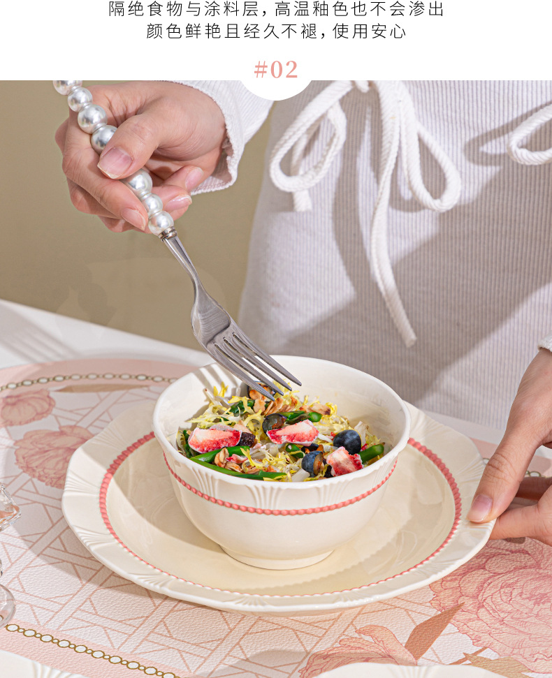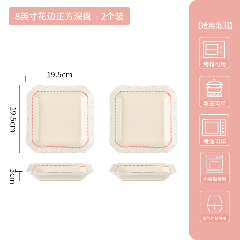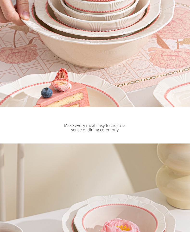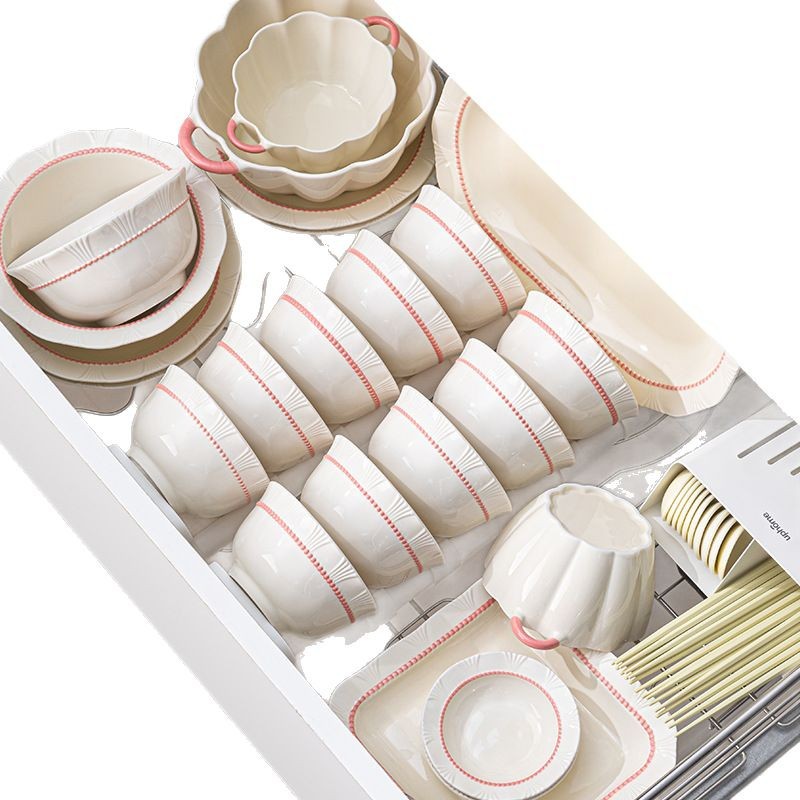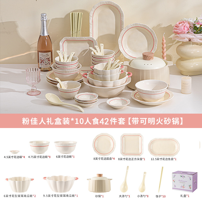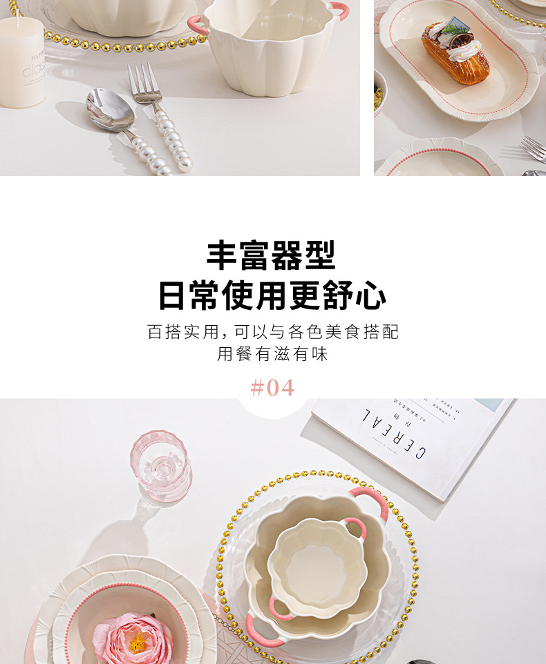 法式奶油风碗碟套装家用餐具套装高颜值釉下彩陶瓷碗盘子汤碗鱼盘