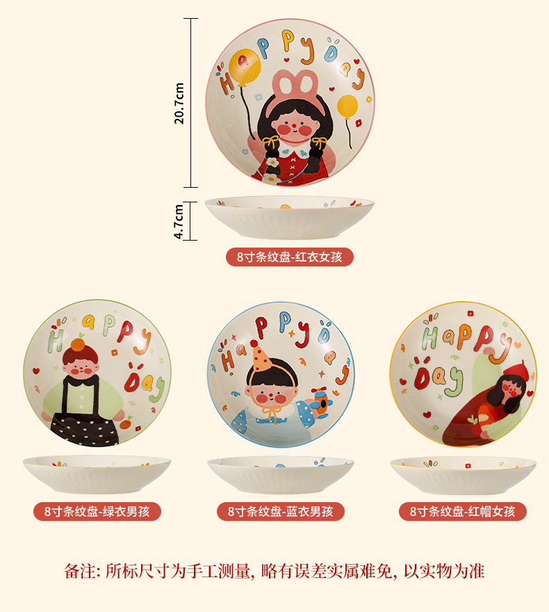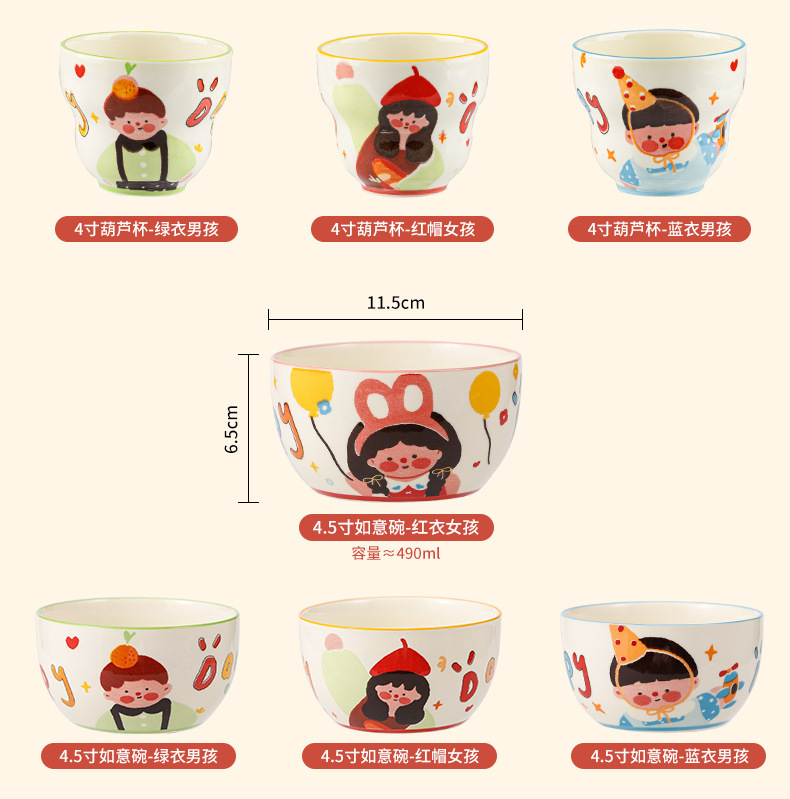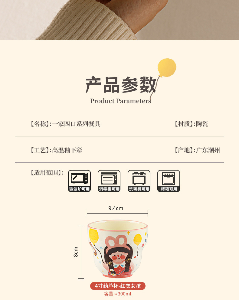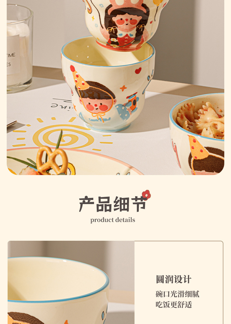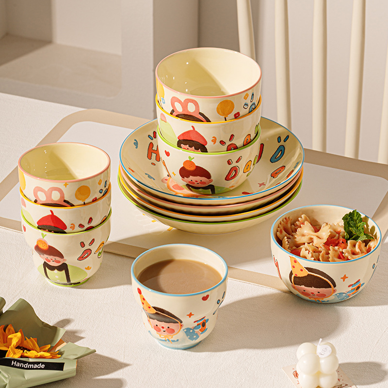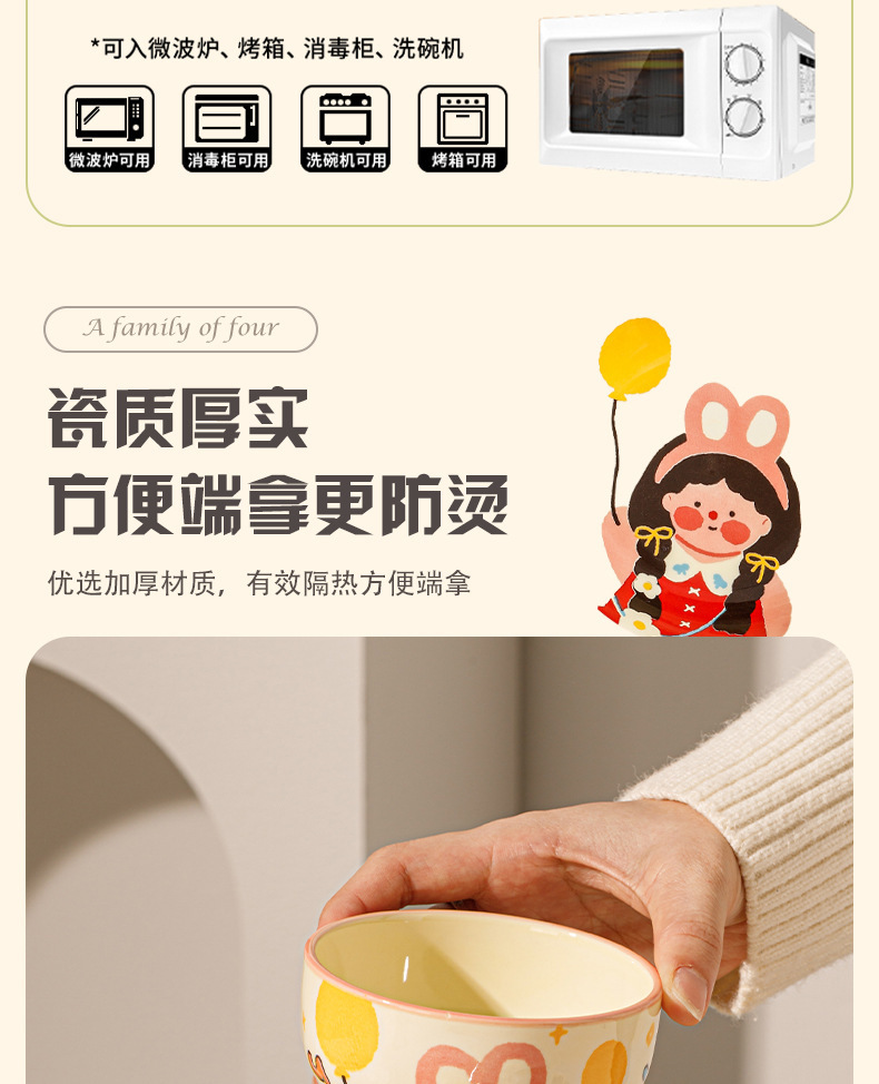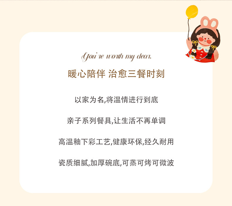 一家四口亲子餐具套装送礼家用碗盘陶瓷碗卡通米饭碗盘子碗碟套装