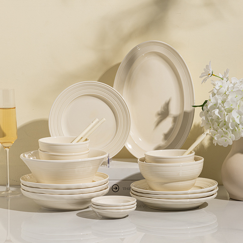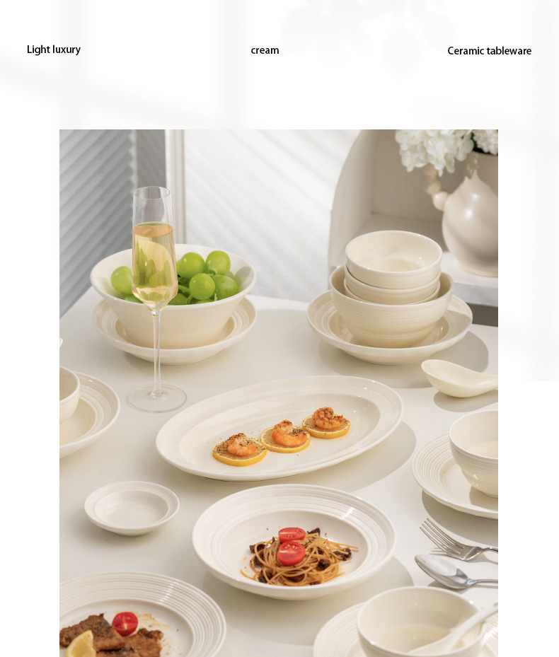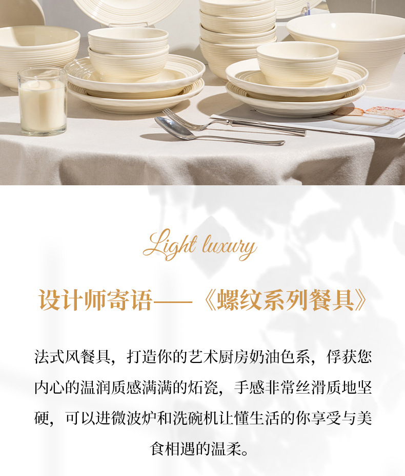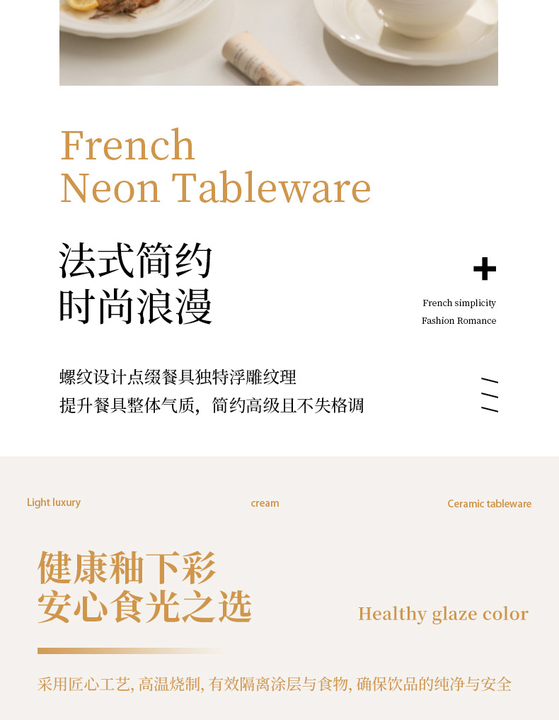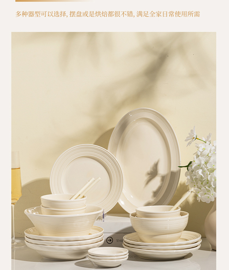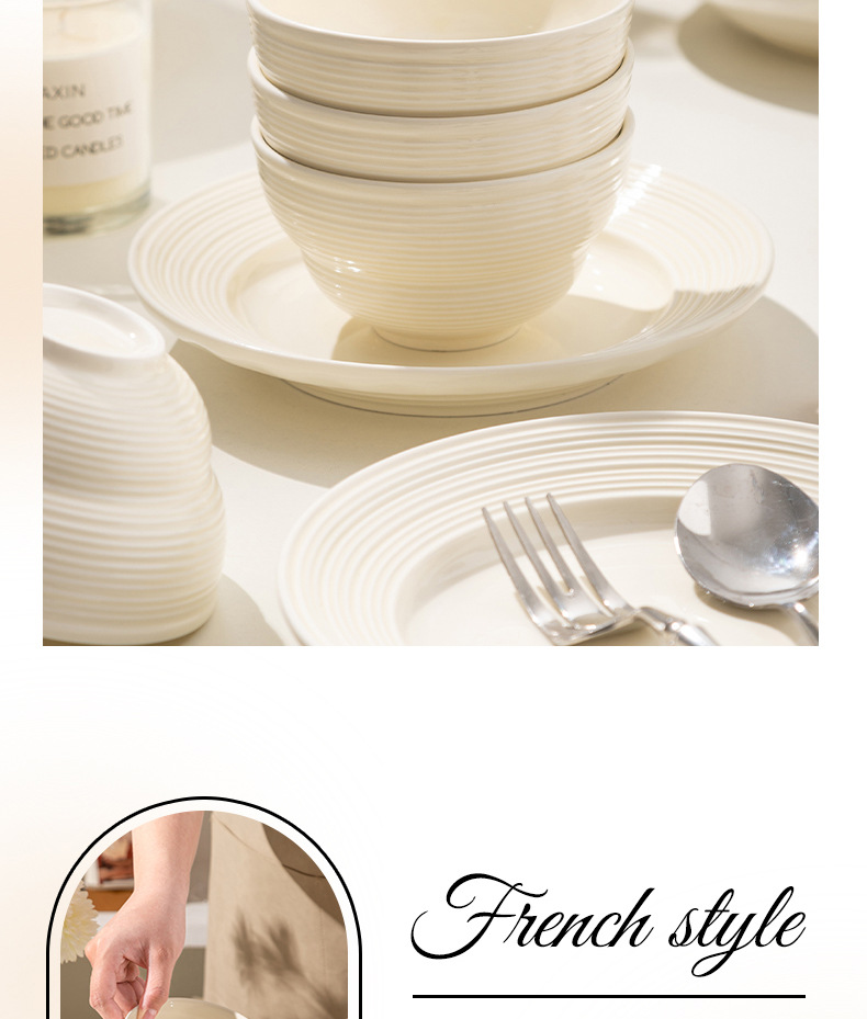 定制法式简约釉下彩陶瓷碗碟盘套装跨境套装陶瓷餐具家用米饭碗盘