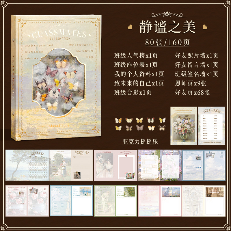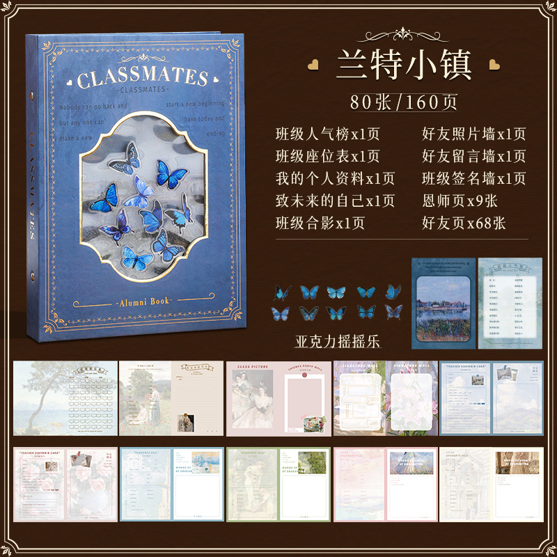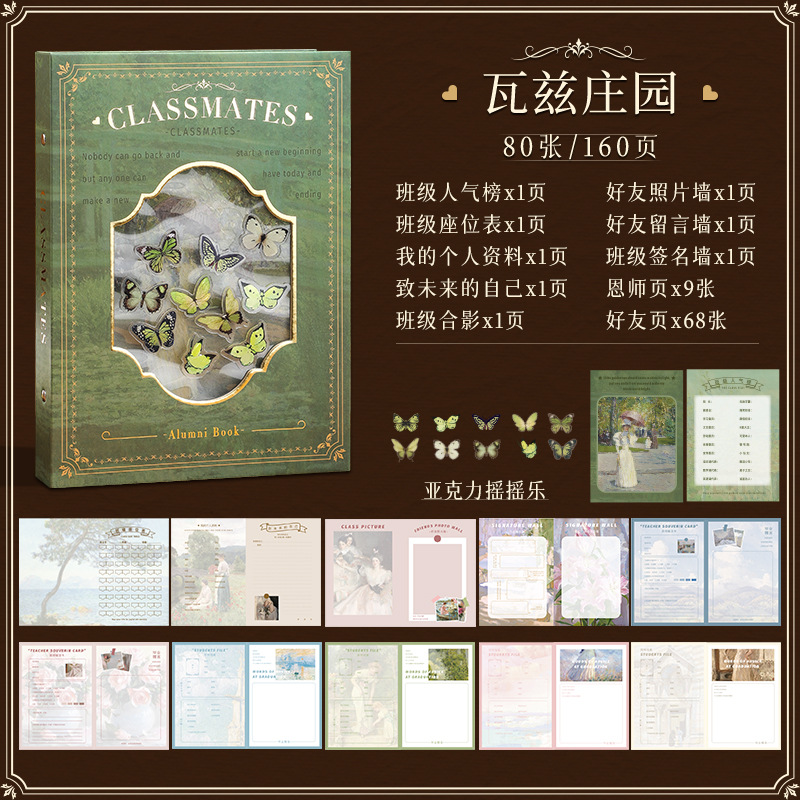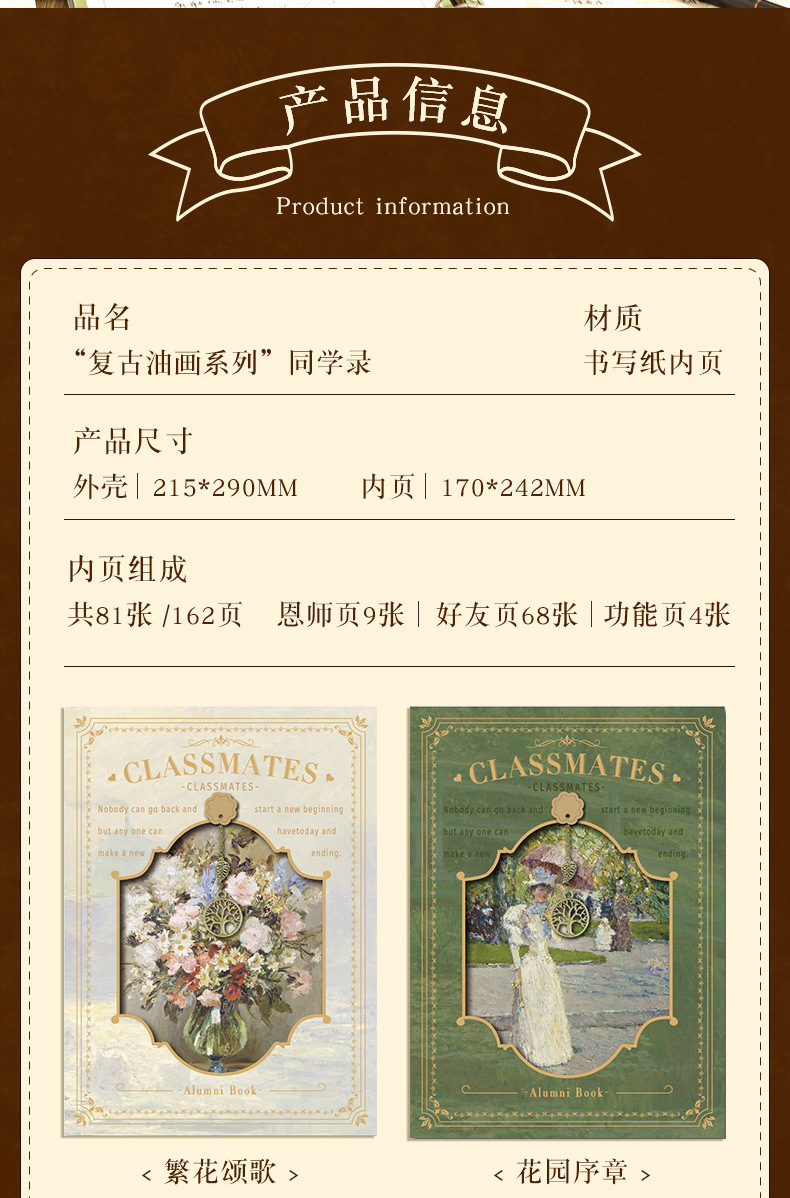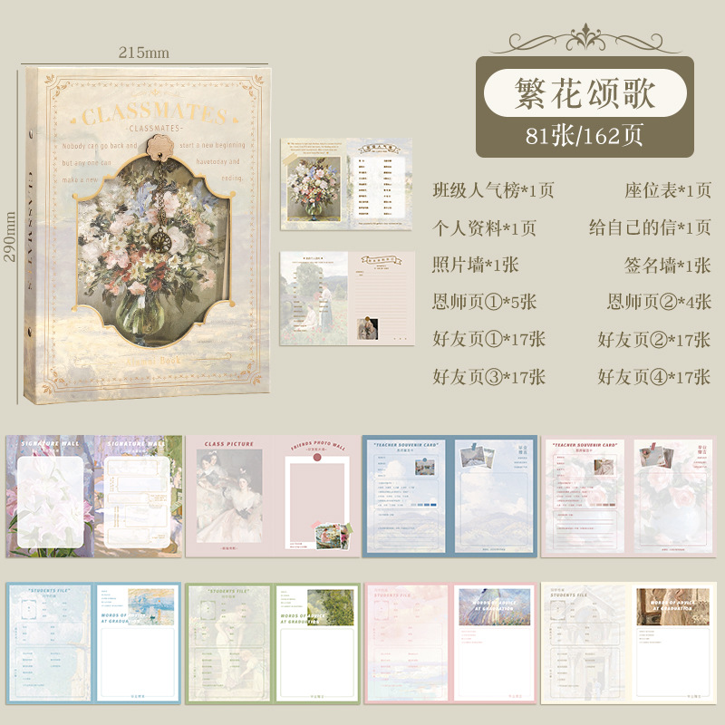 复古油画镂空毕业同学录高颜值古风初中高中同学纪念册通讯留言本