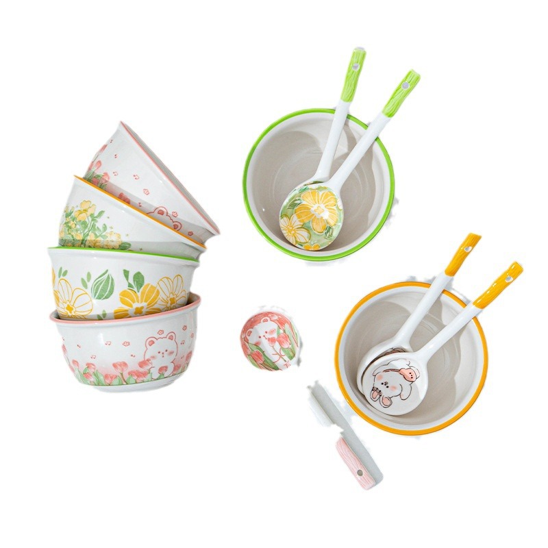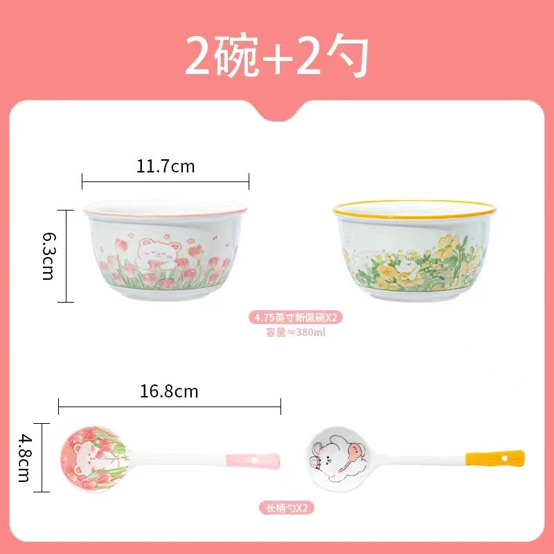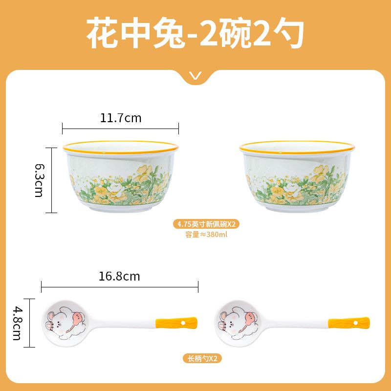 碗高颜值家用小清新甜品碗儿童饭碗饭勺组合大容量陶瓷碗米饭碗