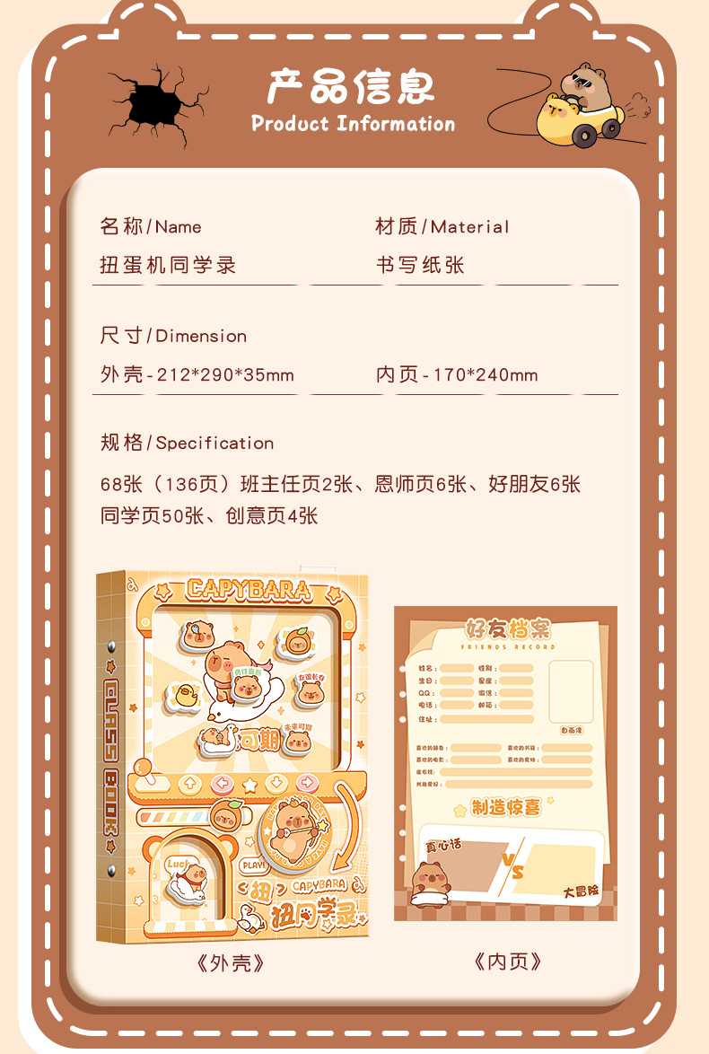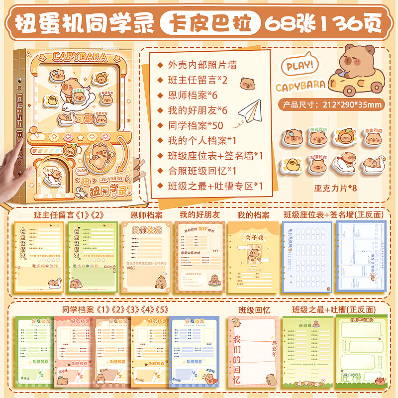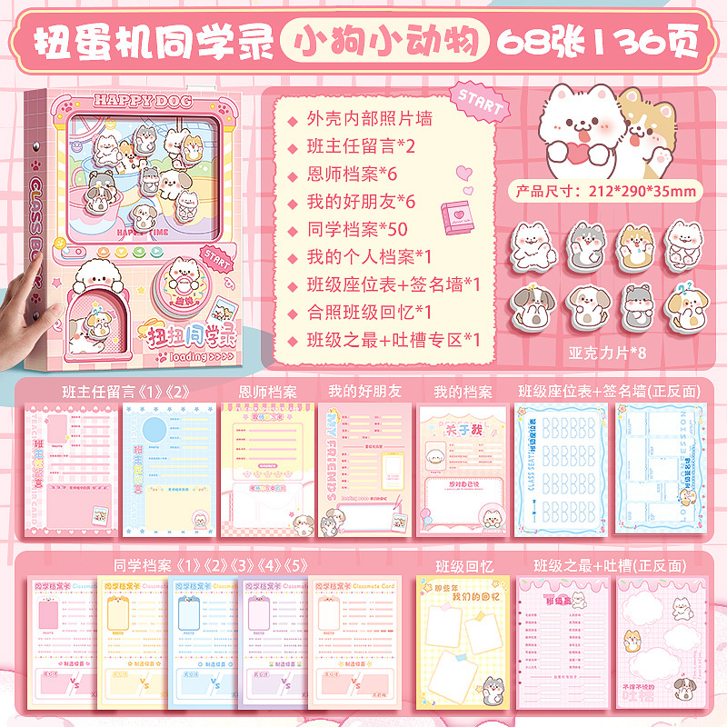 高颜值扭蛋机同学录小学生六年级毕业纪念册可拆卸留言册活页本子