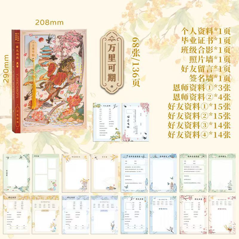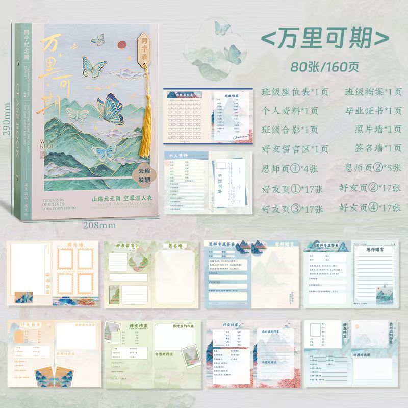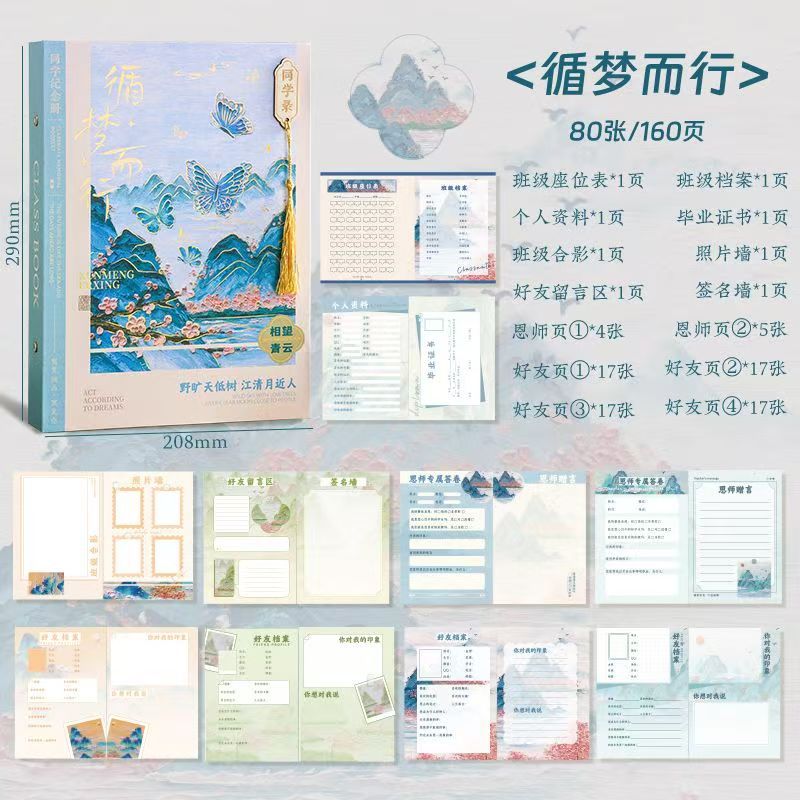 2025新款不撞款高颜值中国风同学录毕业成长纪念册留言本活页本