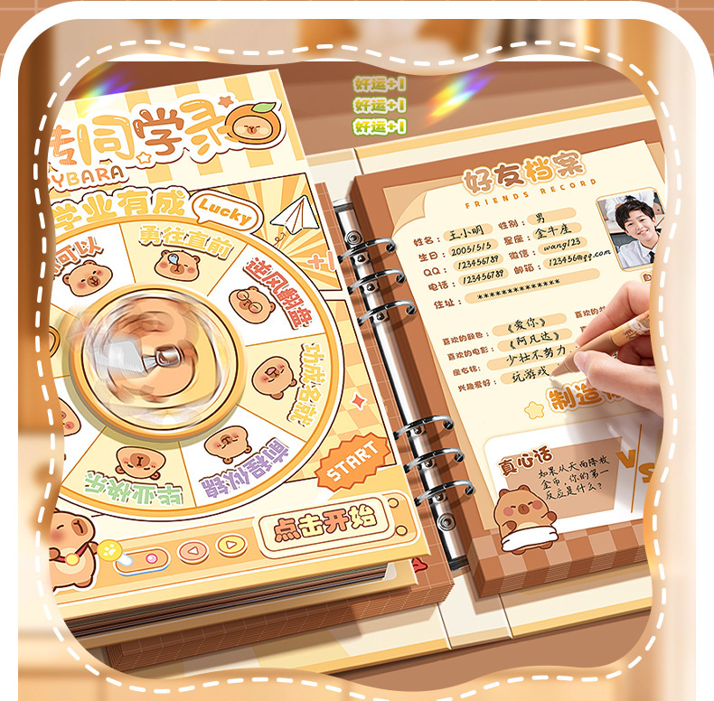 咔巴熊毕业季转转同学录卡通转盘DIY活页本学生硬壳可拆卸纪念册
