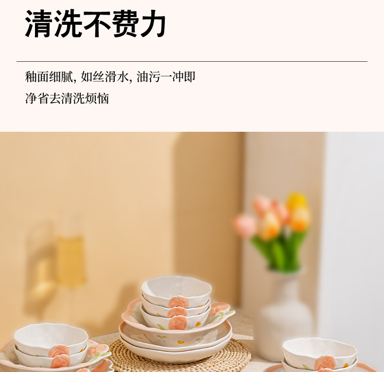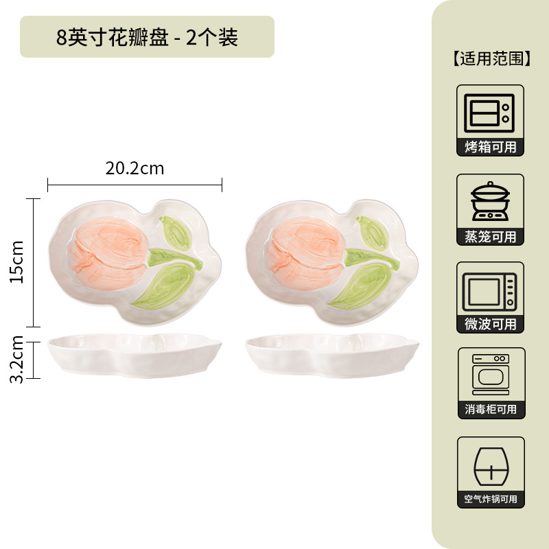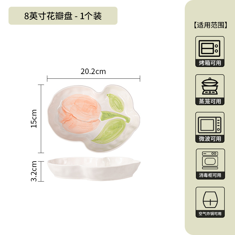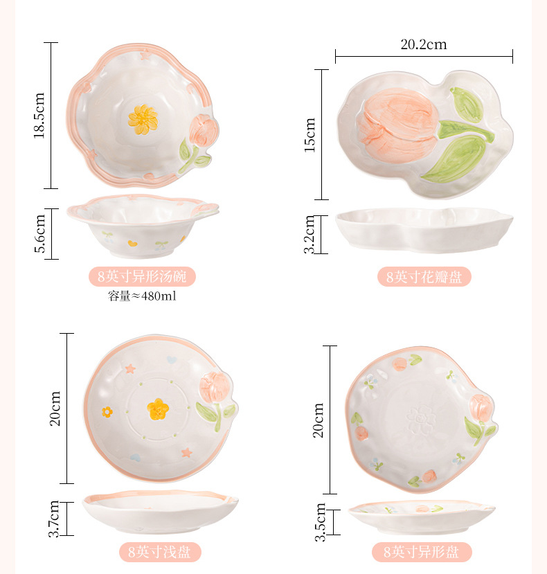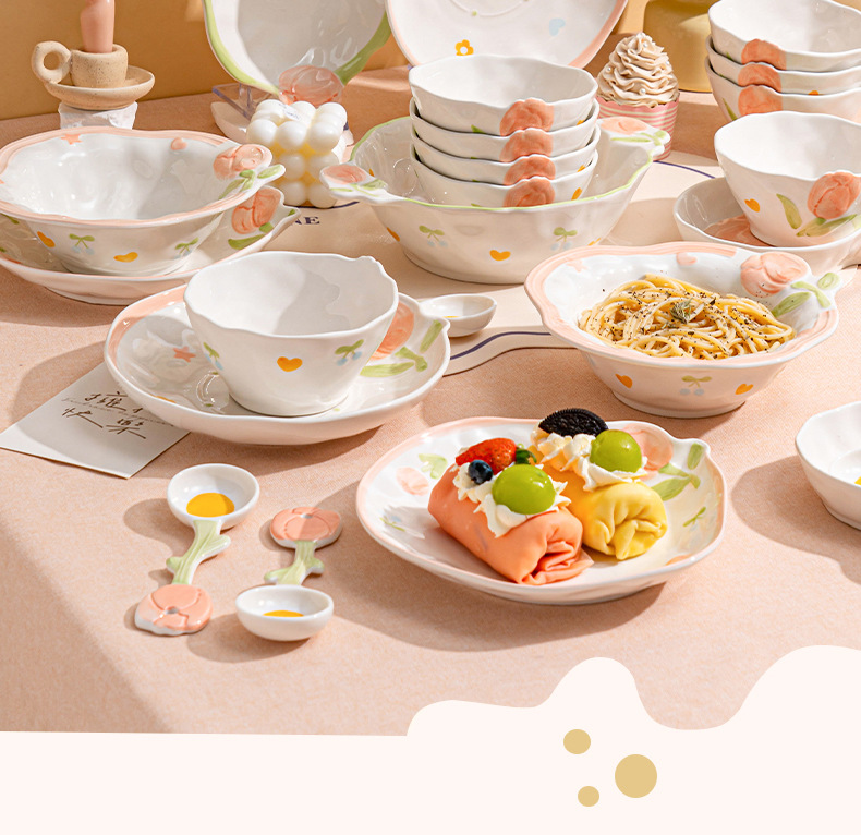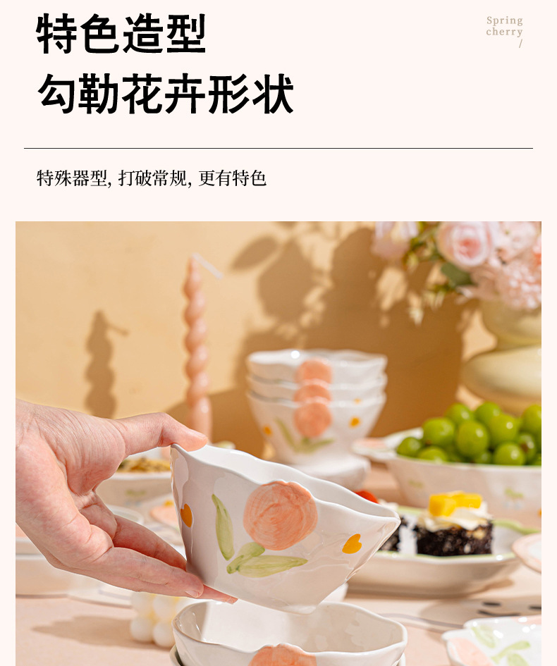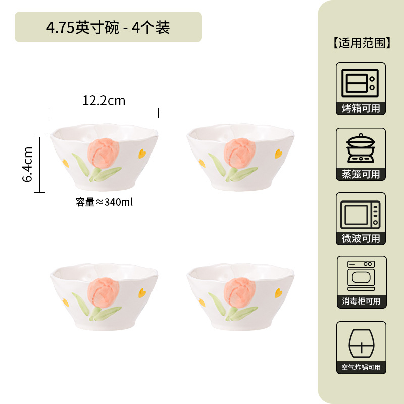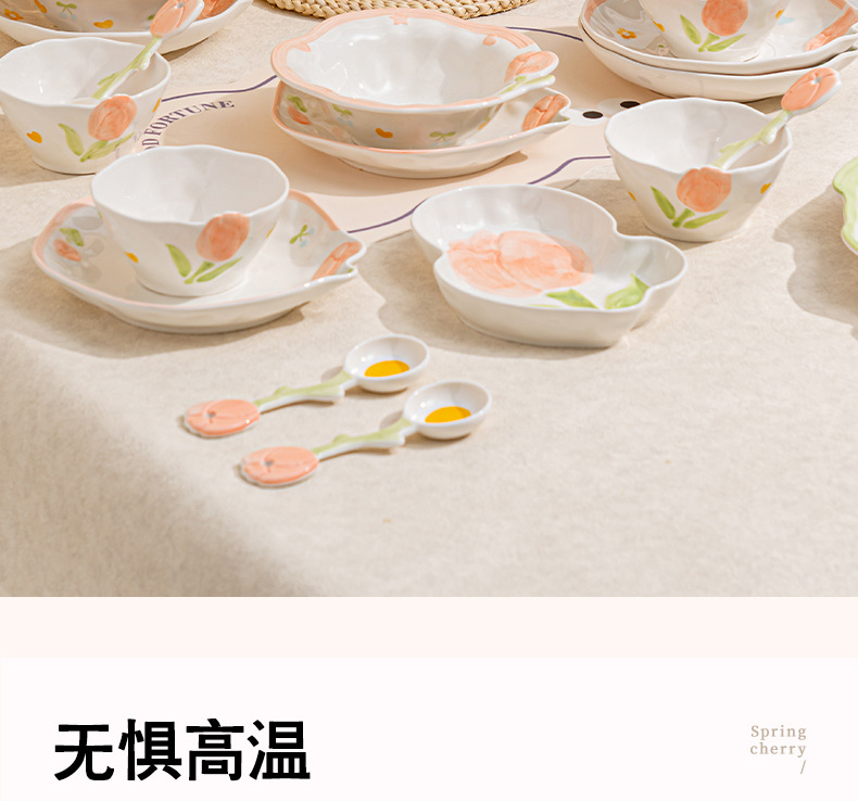 清新碗碟套装家用釉下彩陶瓷碗盘浮雕郁金香乔迁新居送礼陶瓷餐具