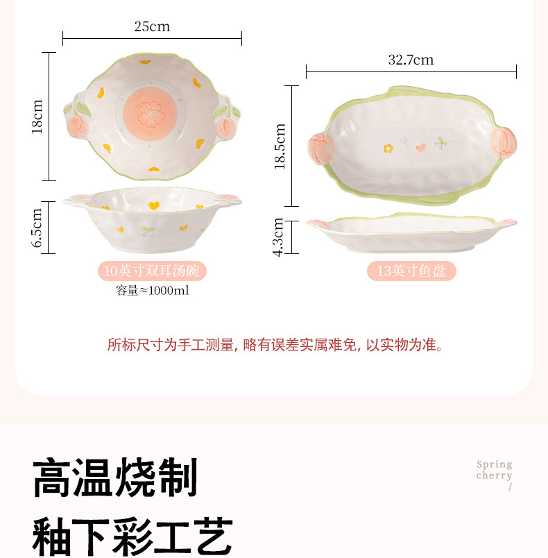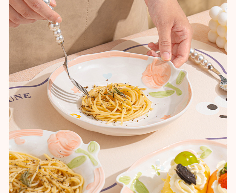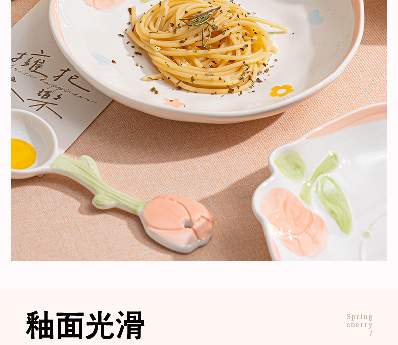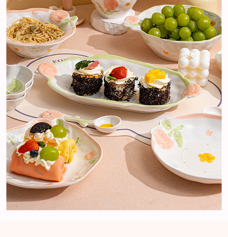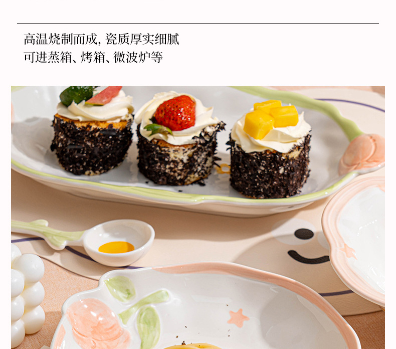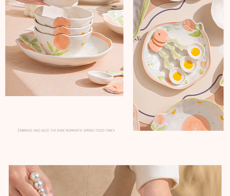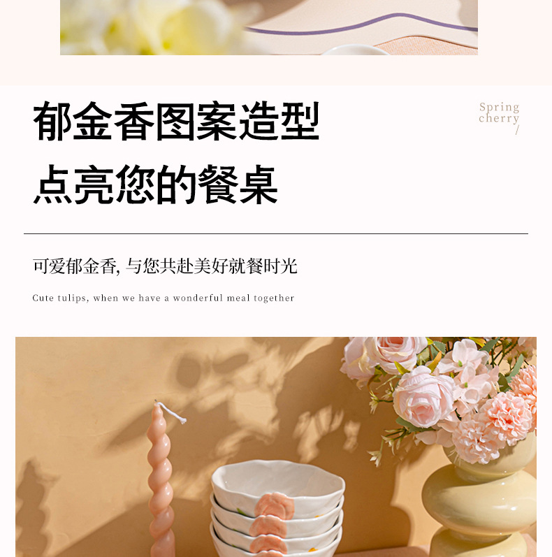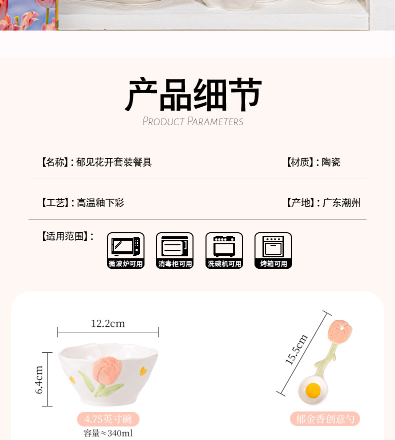清新碗碟套装家用釉下彩陶瓷碗盘浮雕郁金香乔迁新居送礼陶瓷餐具