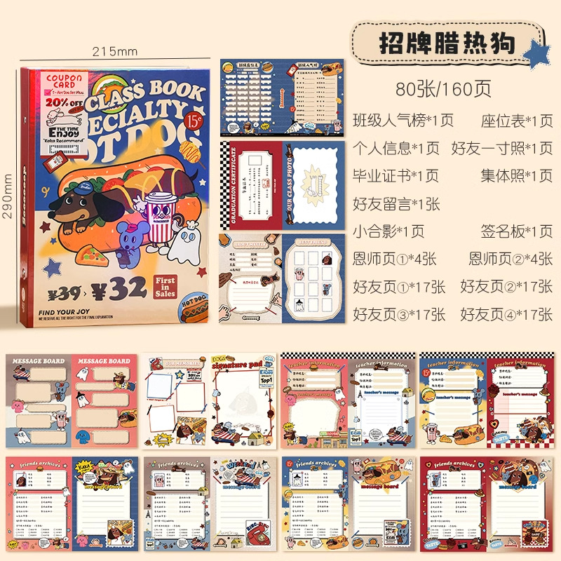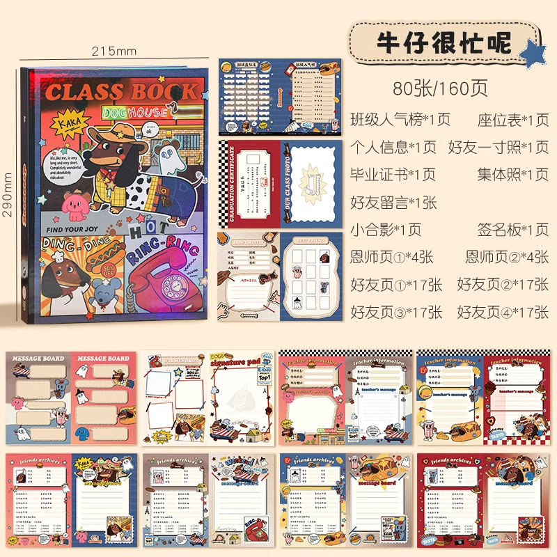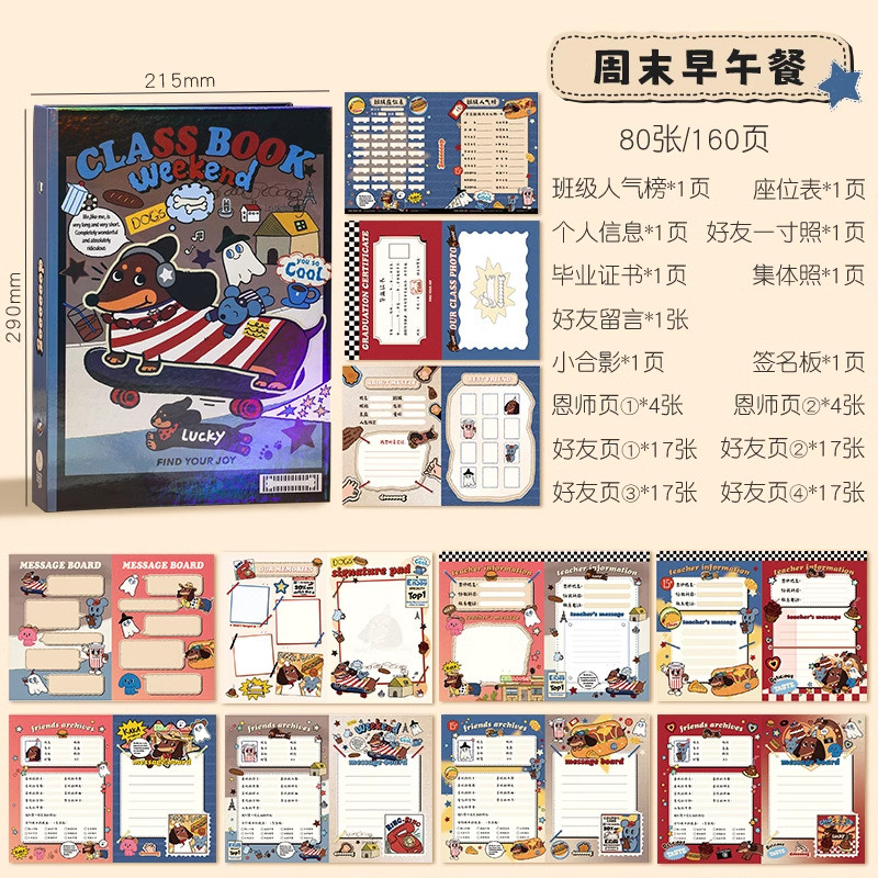 腊肠狗同学录六年级高颜值毕业纪念册初中小众抽象留言活页本批发