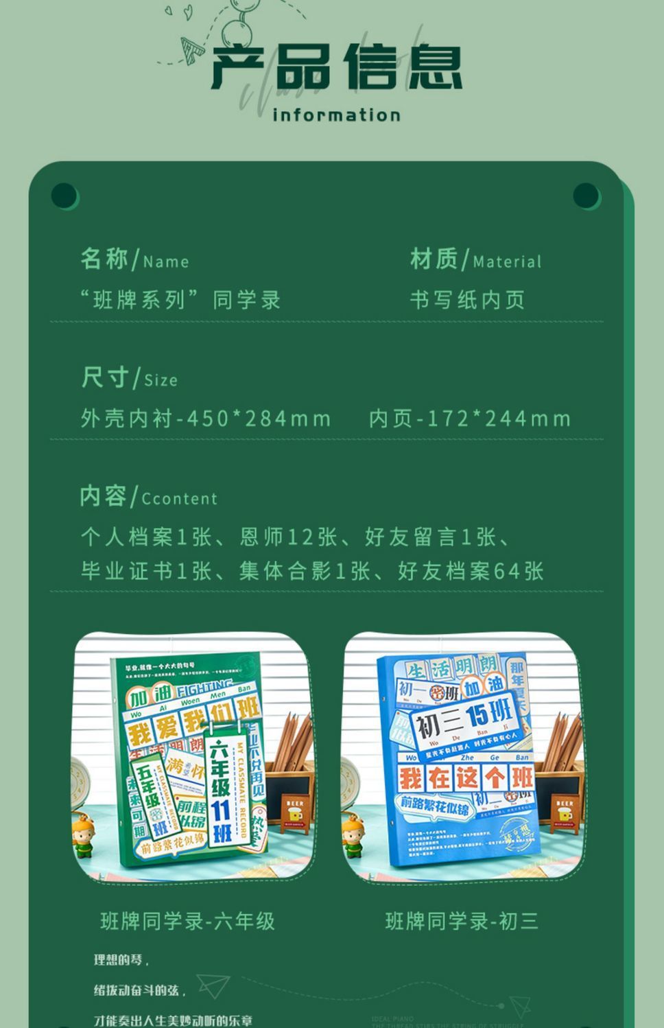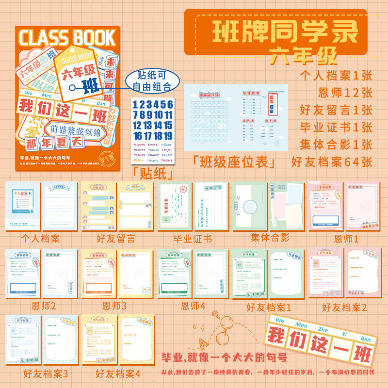 班牌毕业同学录小学生六年级简约ins风创意DIY复古纪念册留言本
