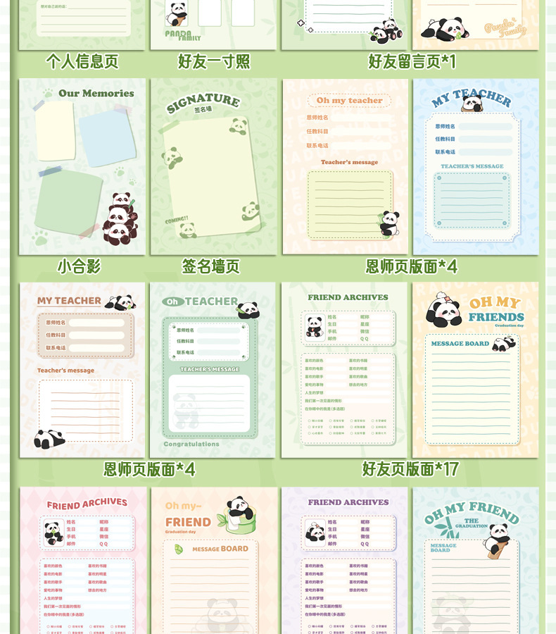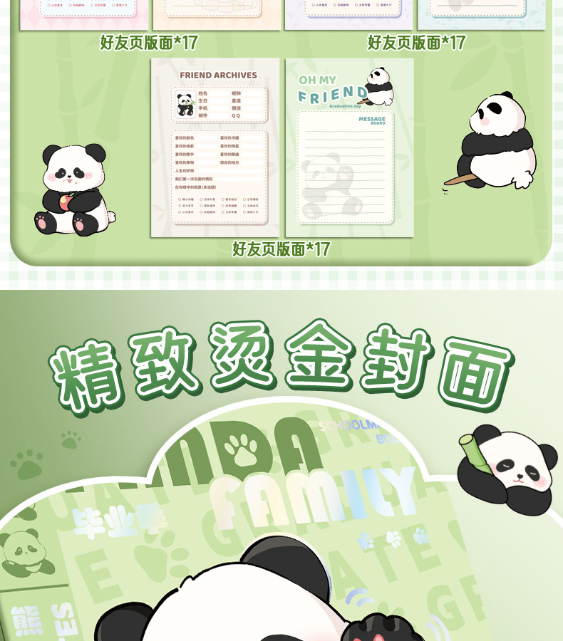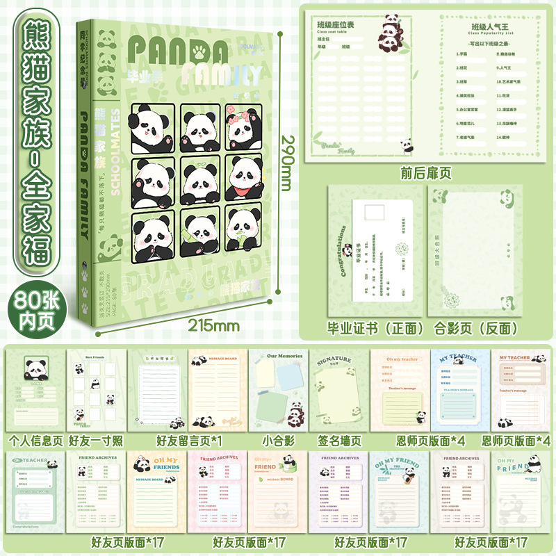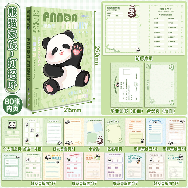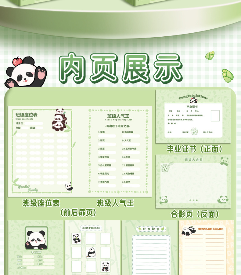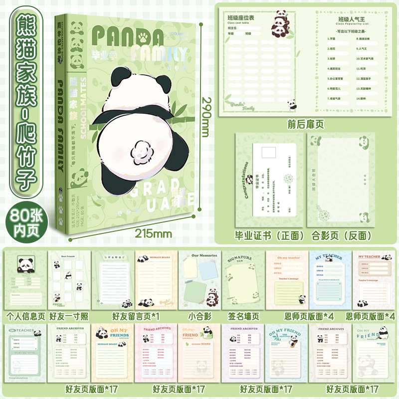 熊猫同学录小学生六年级毕业纪念册留言本高级感男孩女生活页本