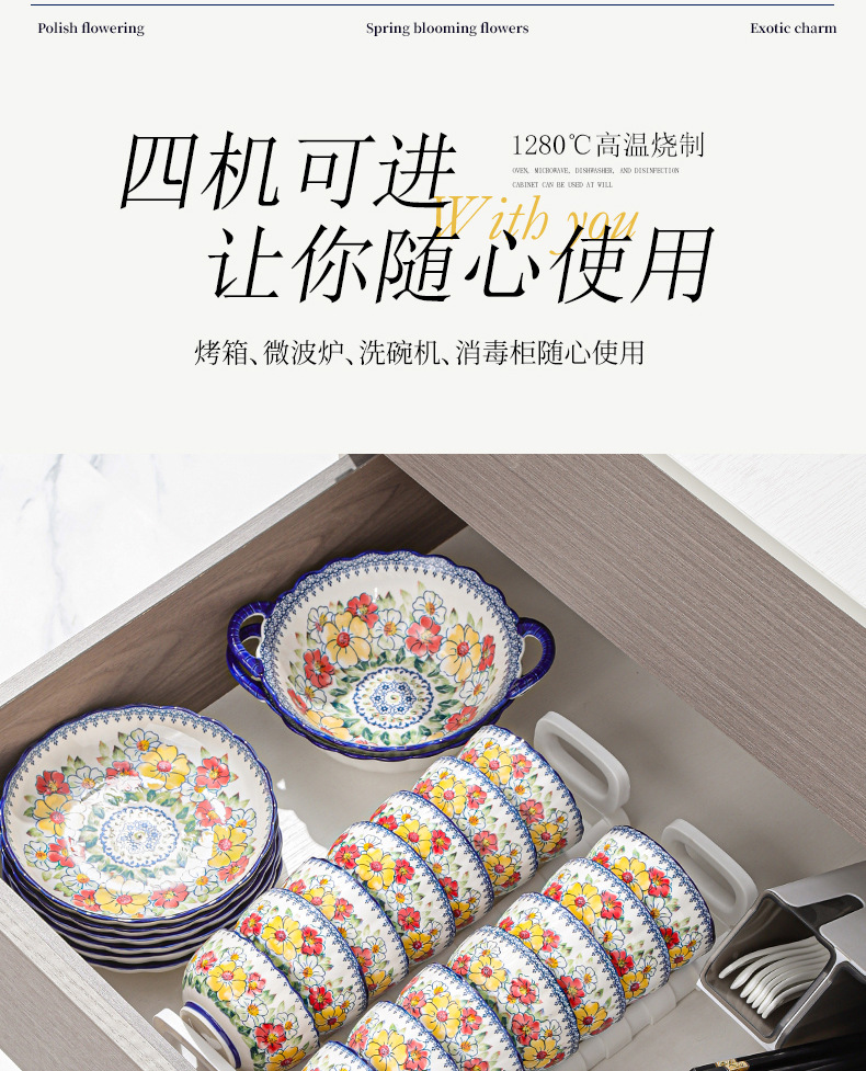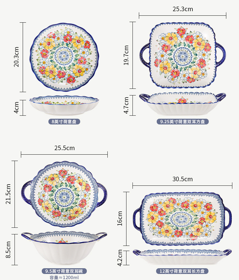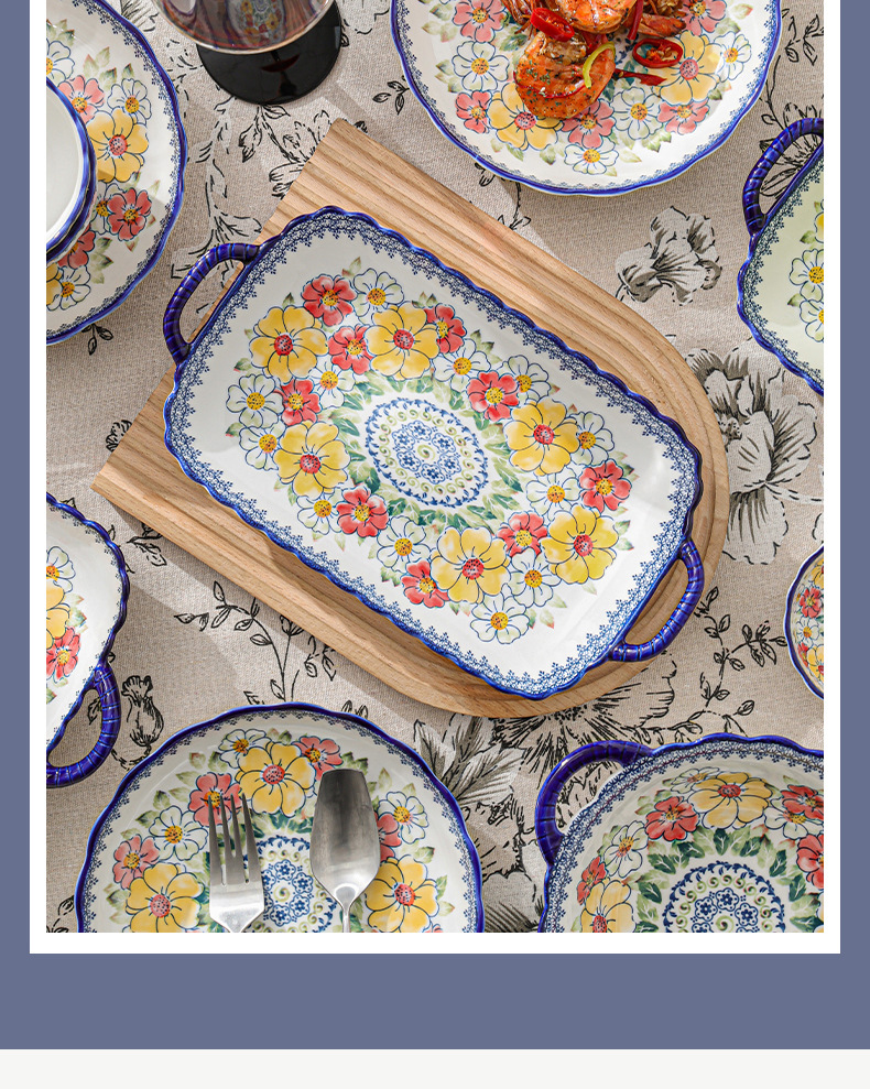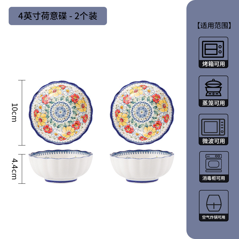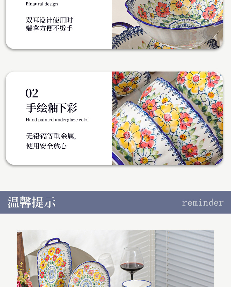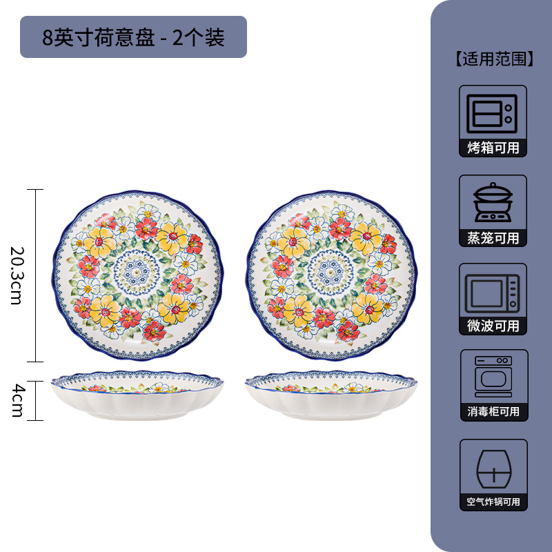 新款波西米亚碗碟套装家用批发跨境陶瓷餐具双耳汤碗盘子陶瓷碗