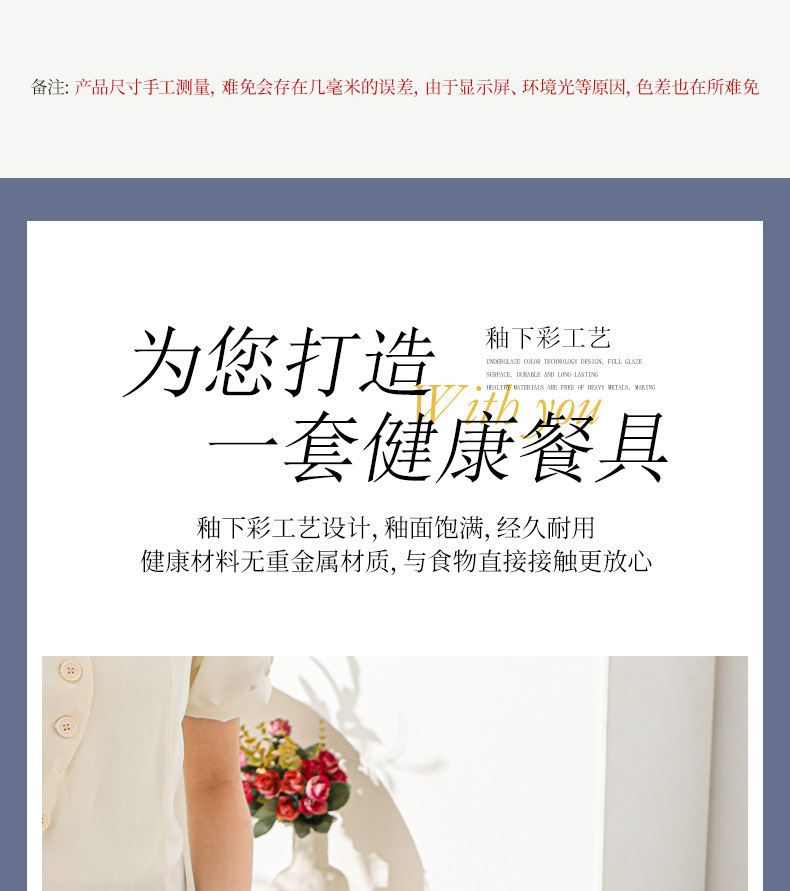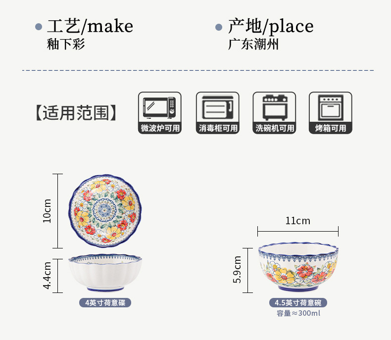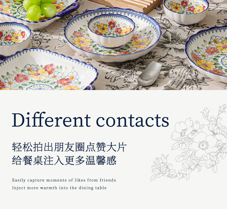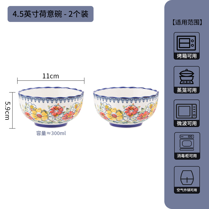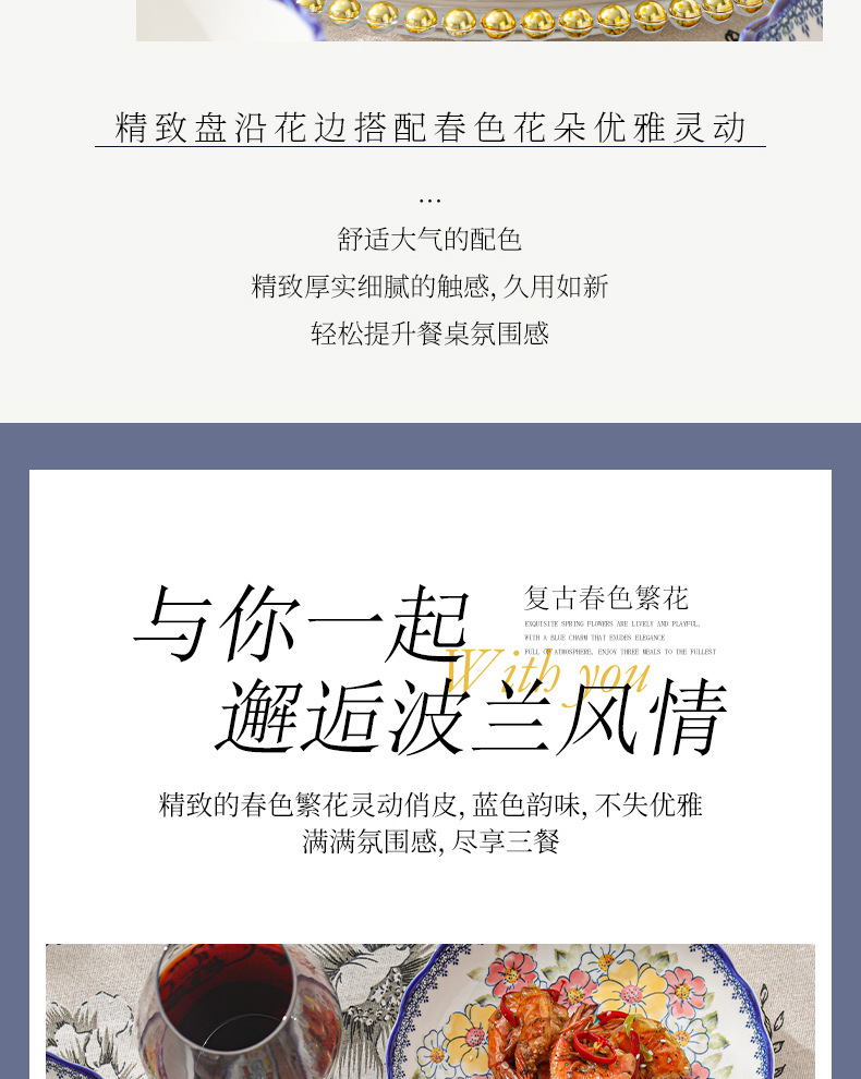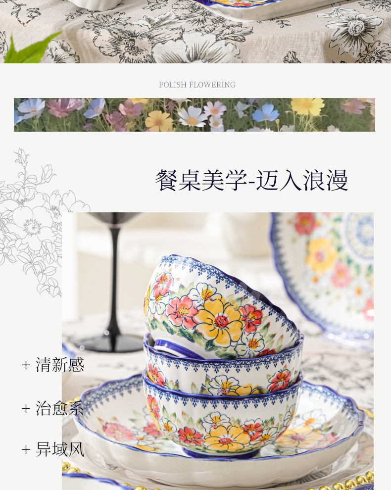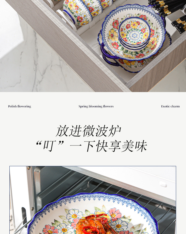 新款波西米亚碗碟套装家用批发跨境陶瓷餐具双耳汤碗盘子陶瓷碗