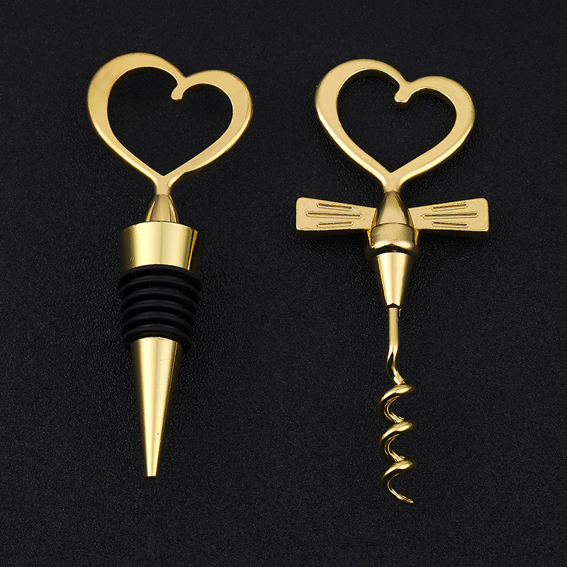 跨境创意爱心红酒具套保鲜密封装婚庆节日生日派对酒塞开瓶器礼品