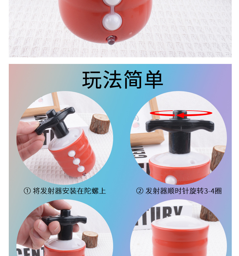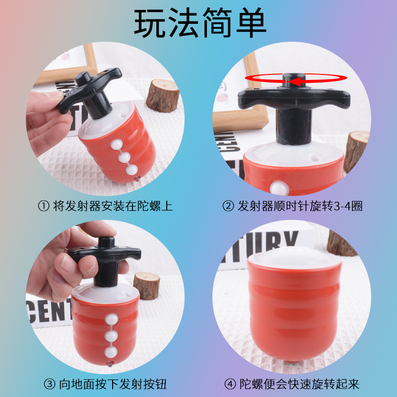 地摊批发仿木陀螺玩具七彩电动音乐闪光陀螺发射器儿童发光玩具